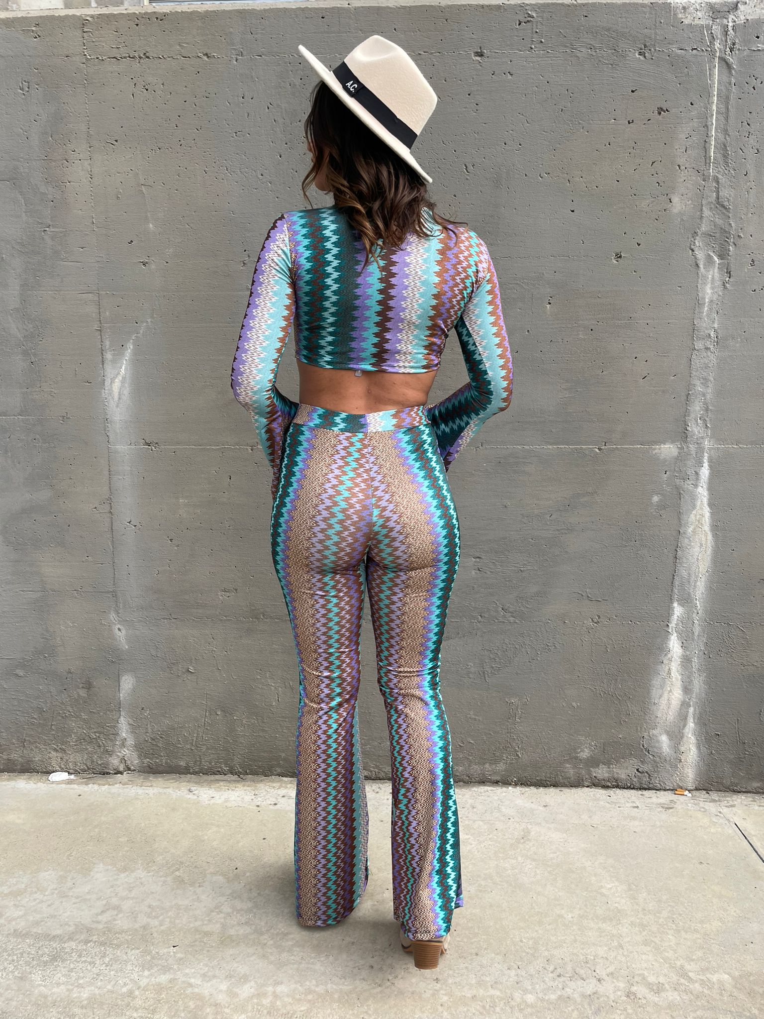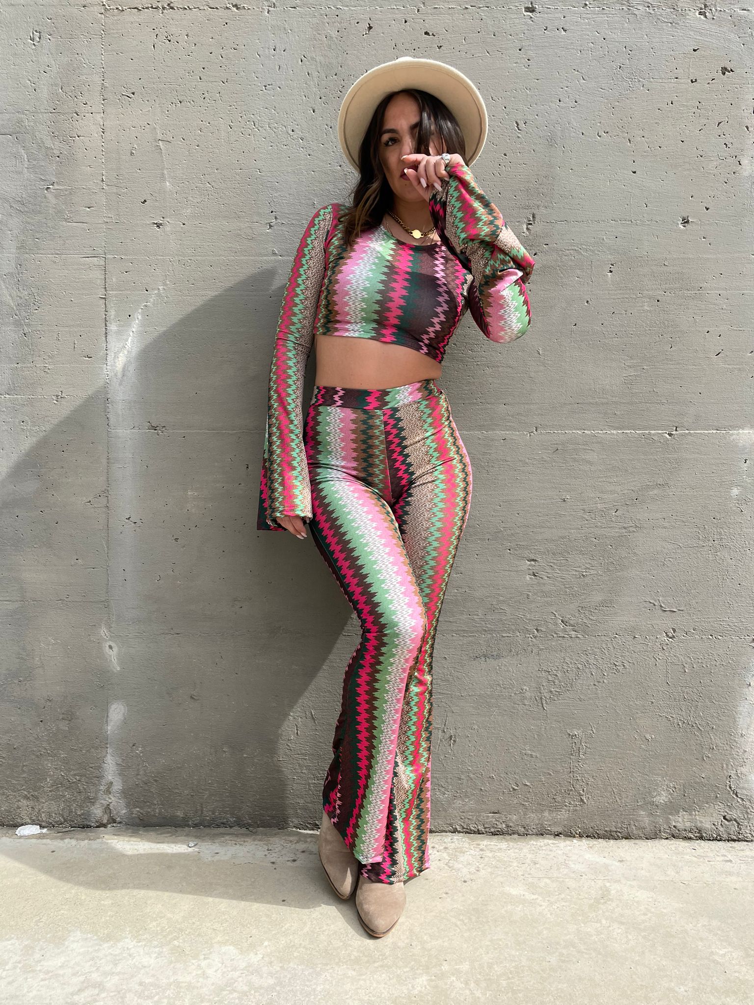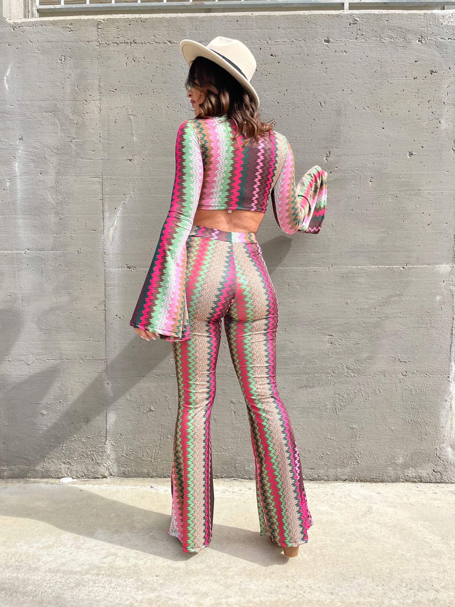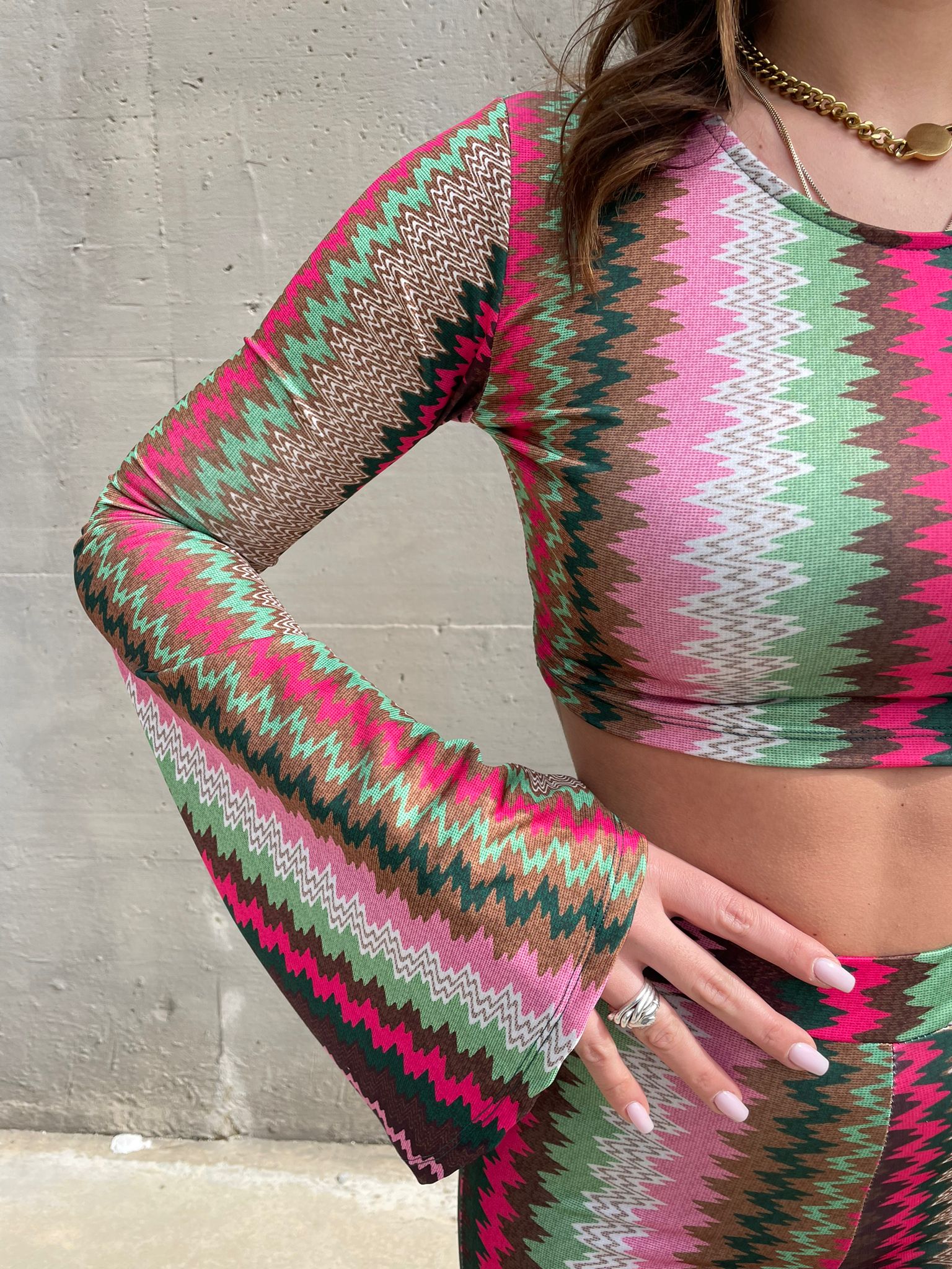 - Maglia con maniche a campana e bottoncino dietro al collo