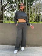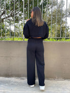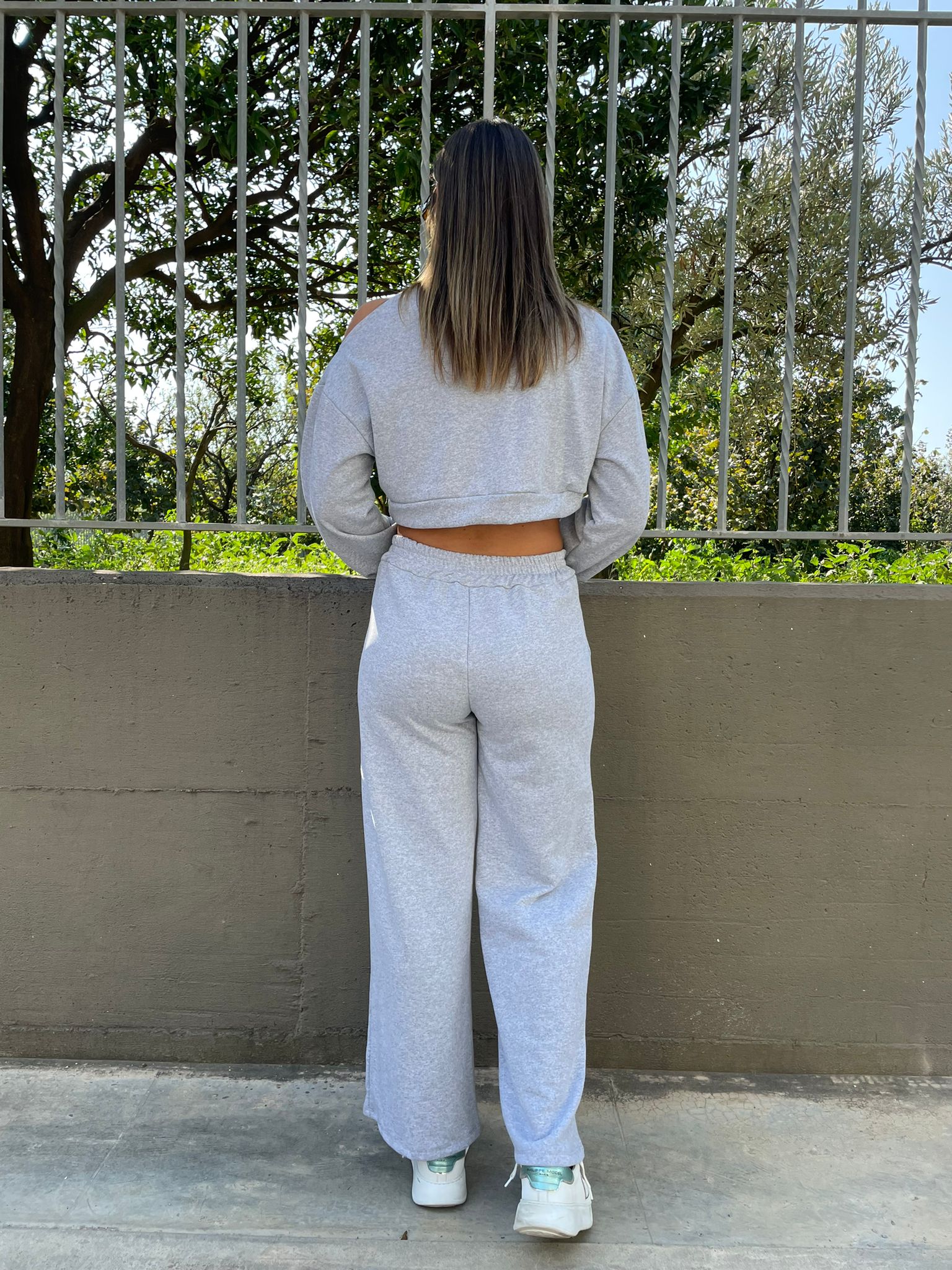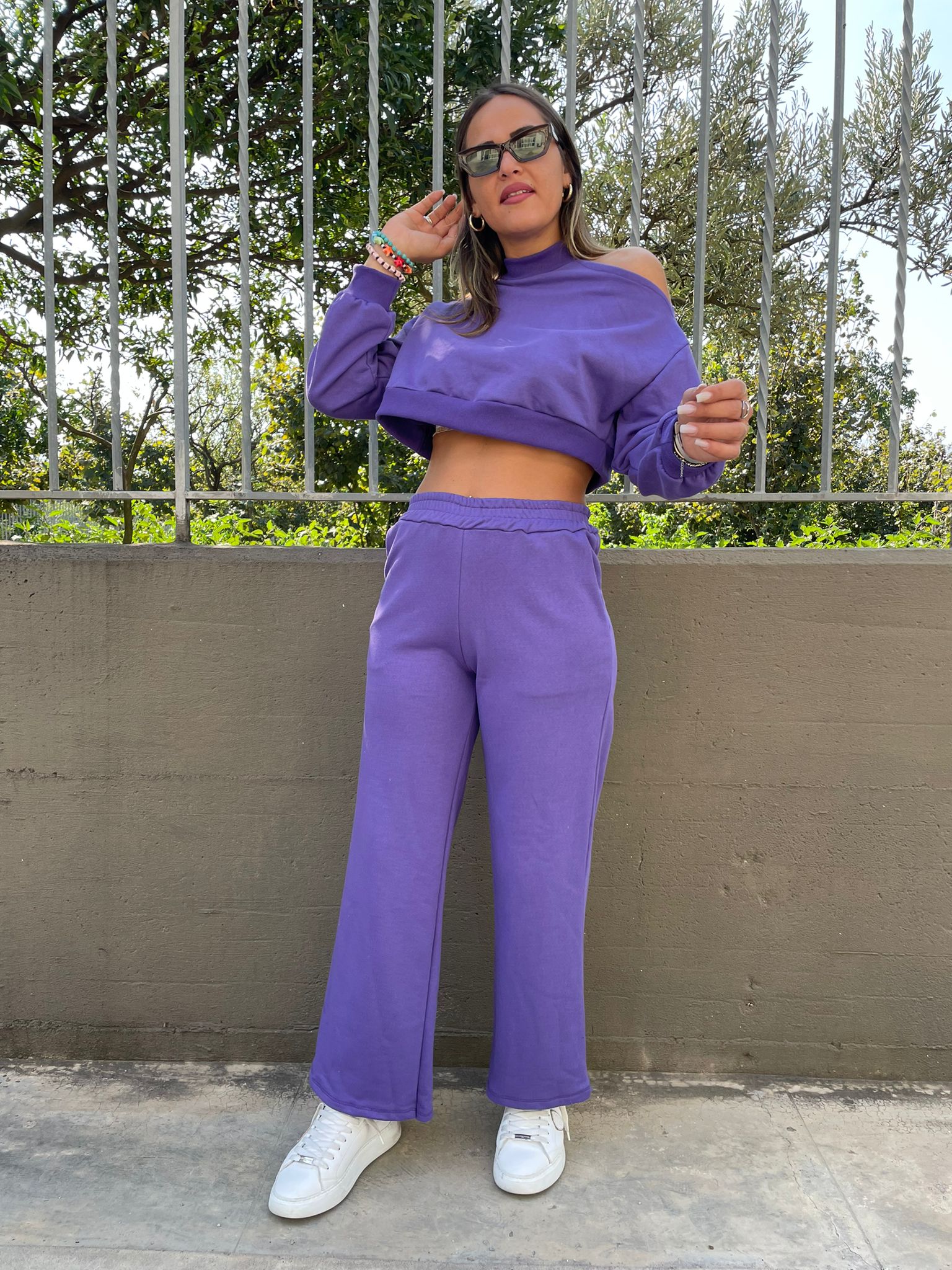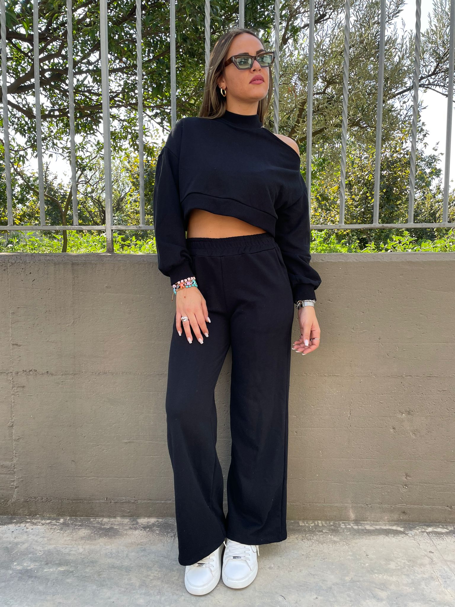 Coordinato tuta 2 pezzi con felpa crop e pantalone palazzo