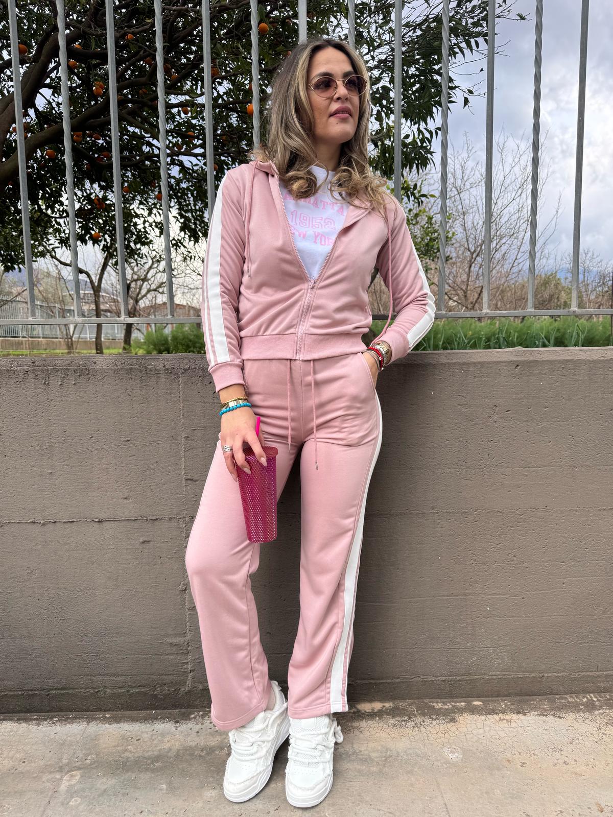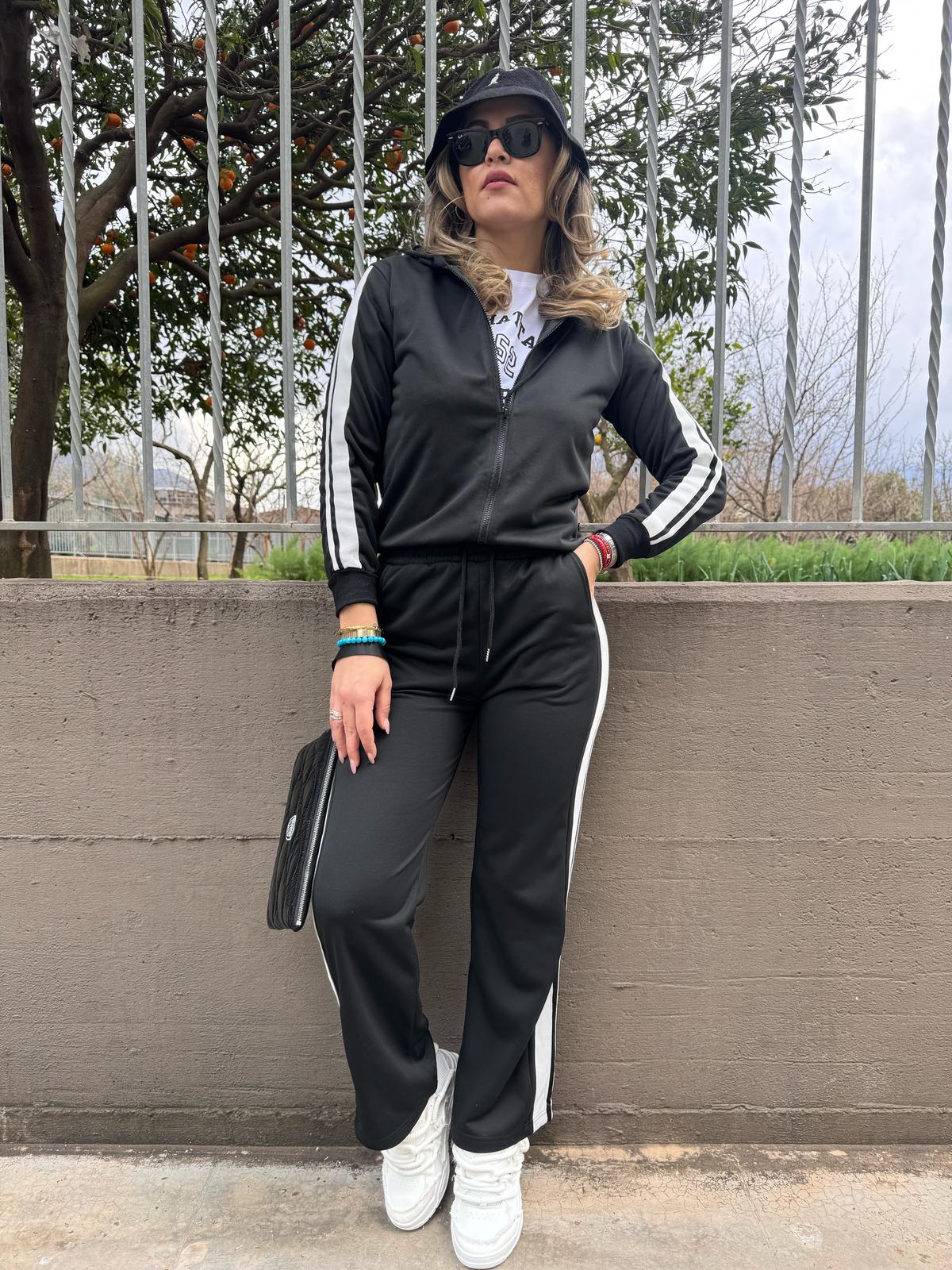 Coordinato tuta 2 pezzi con felpa e pantalone con banda laterale