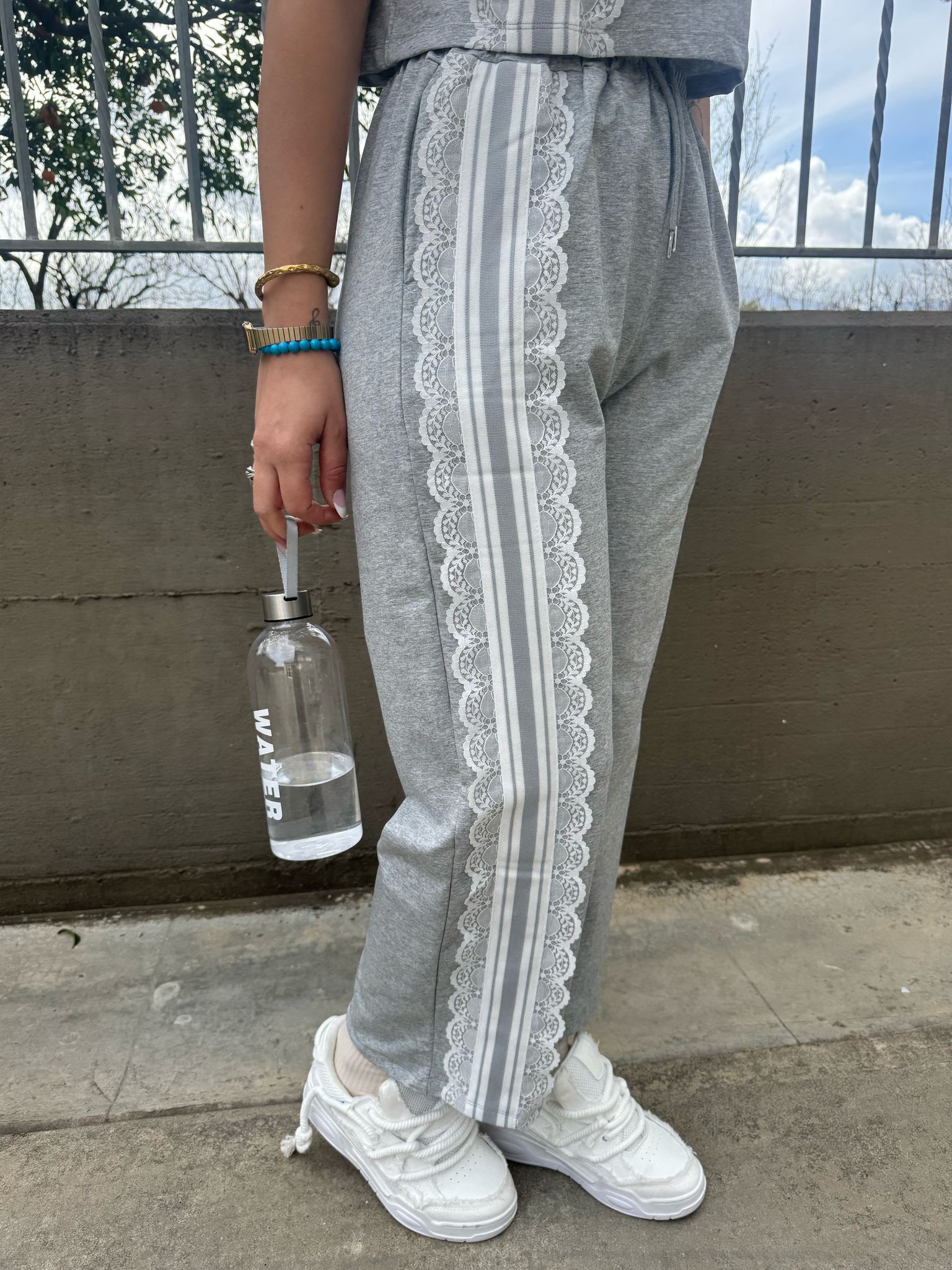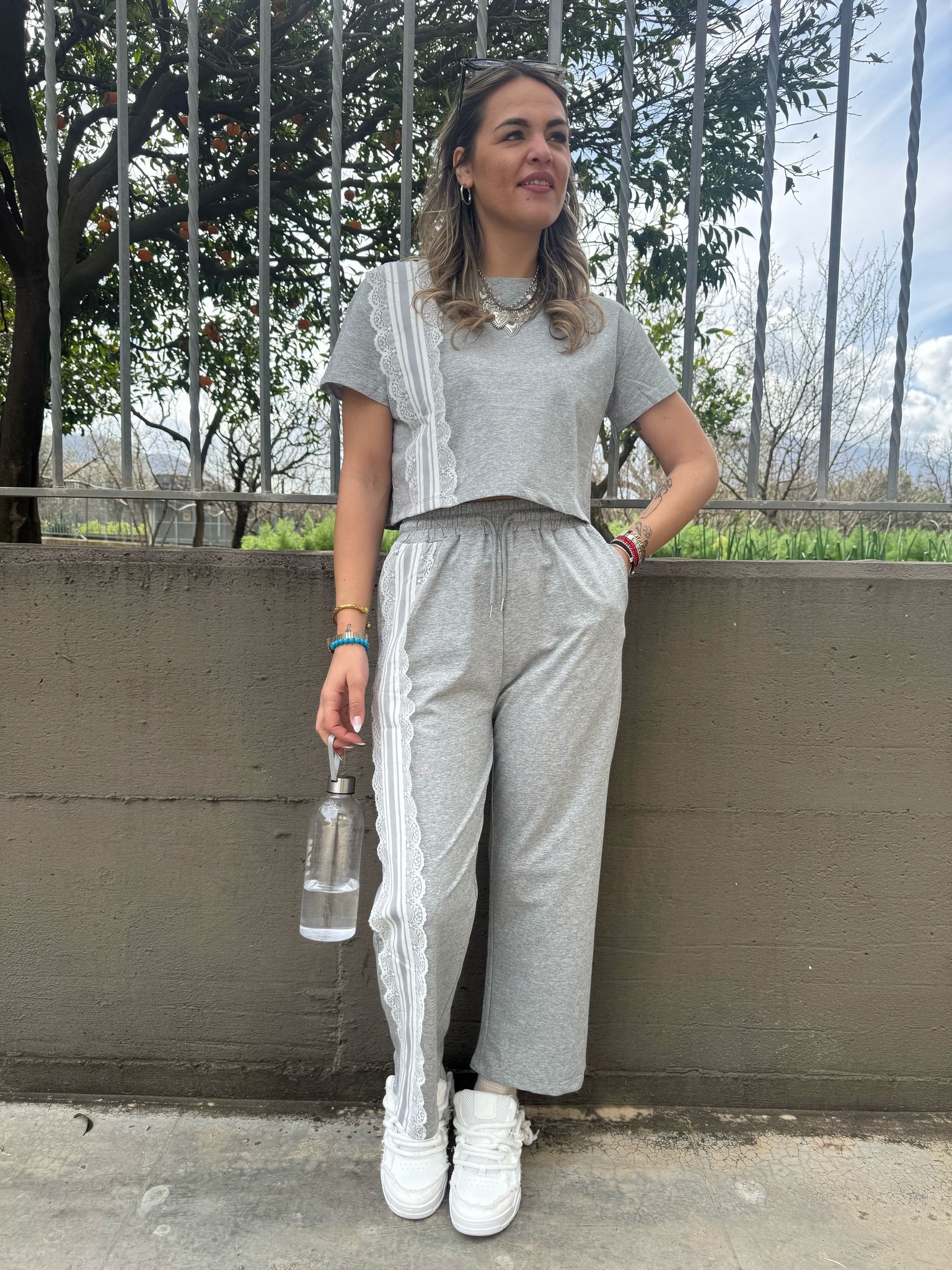 Coordinato tuta 2 pezzi con inserti in merletto