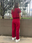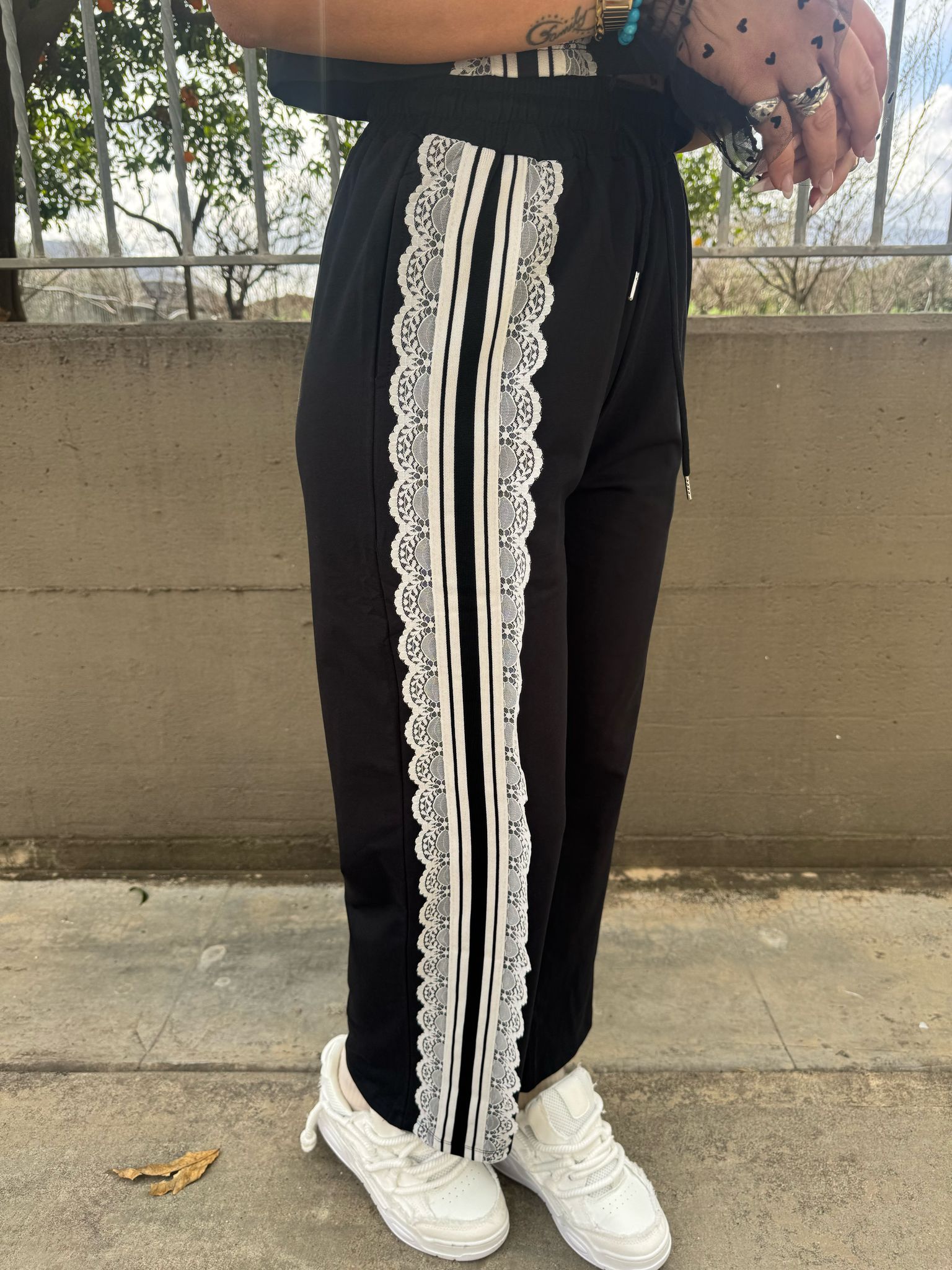 - Pantalone con elastico in vita e merletto