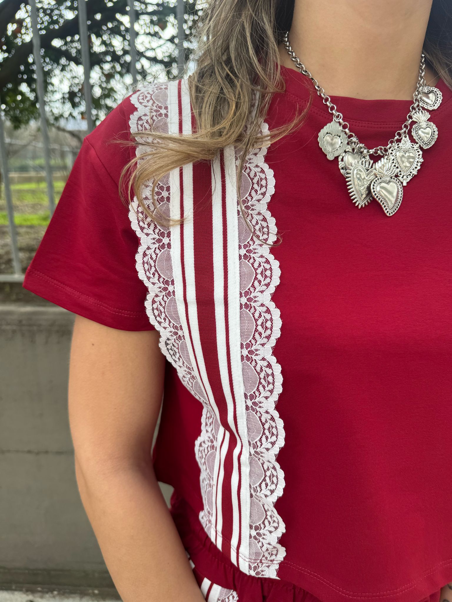 - Maglia crop con merletto