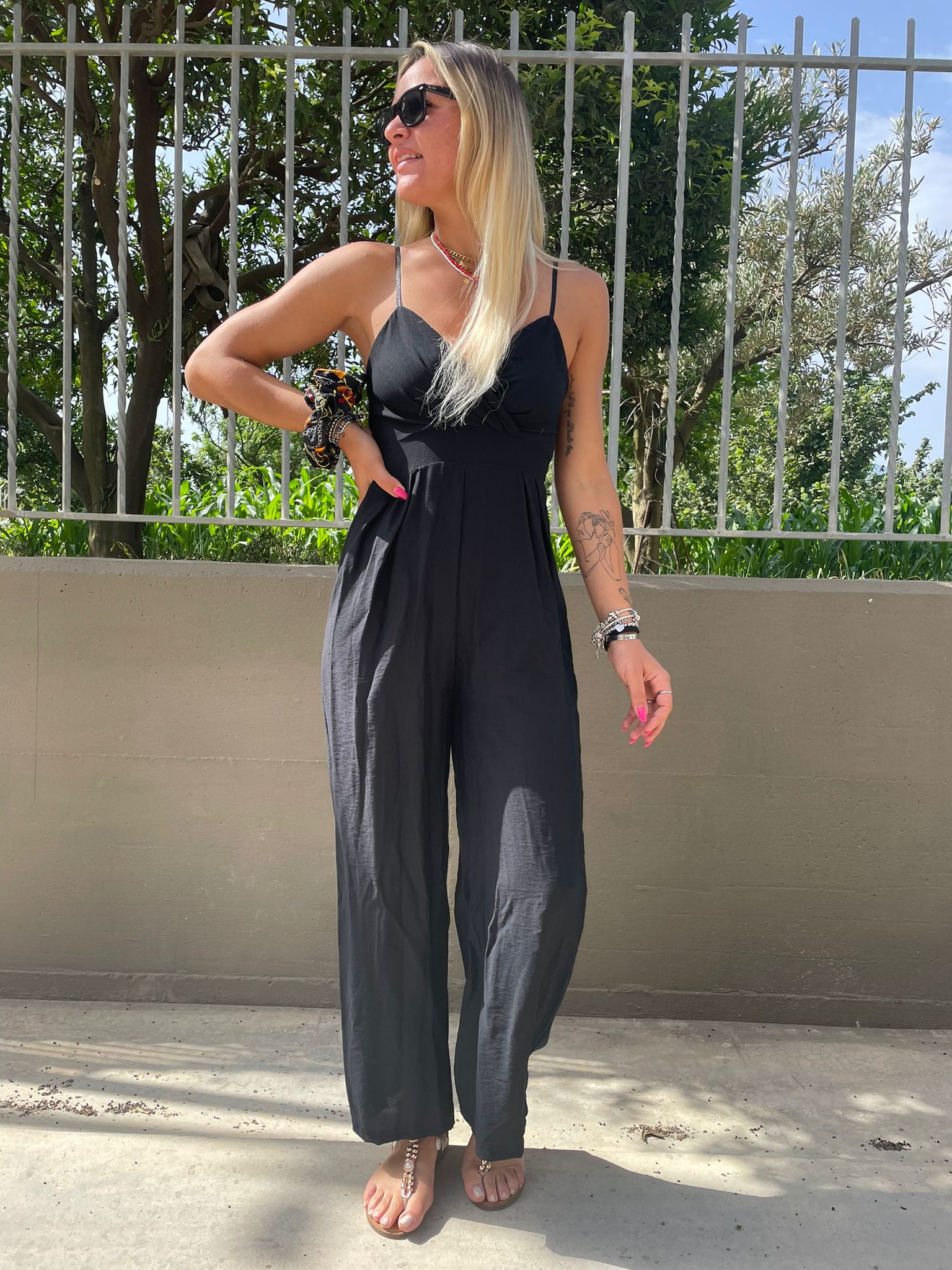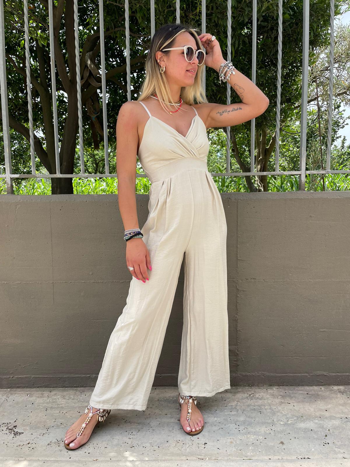 Tuta lunga effetto lino tinta unita