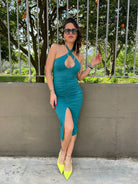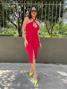 - Vestito drappeggiato tinta unita