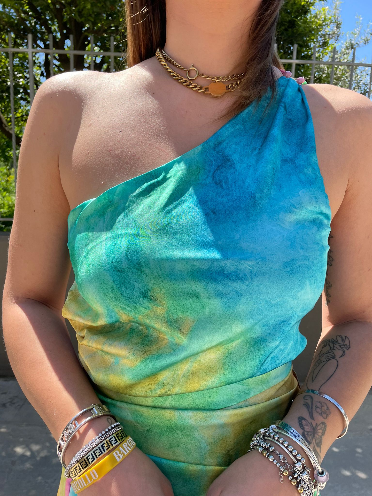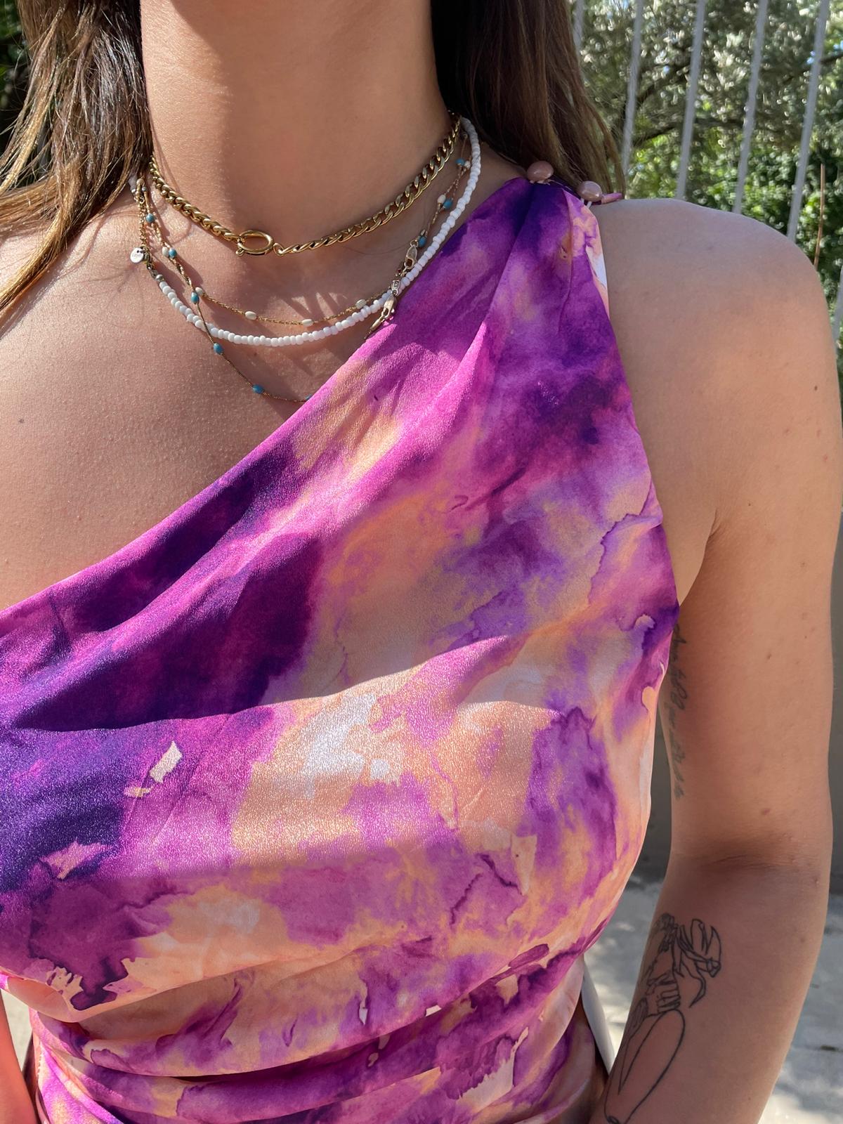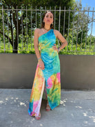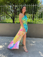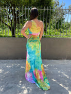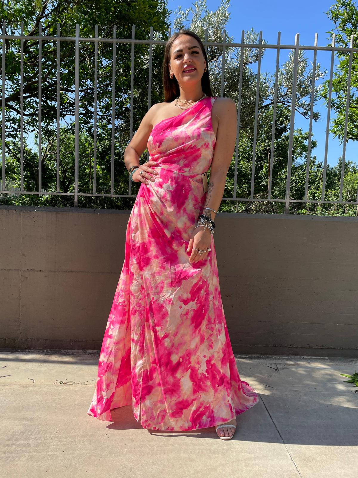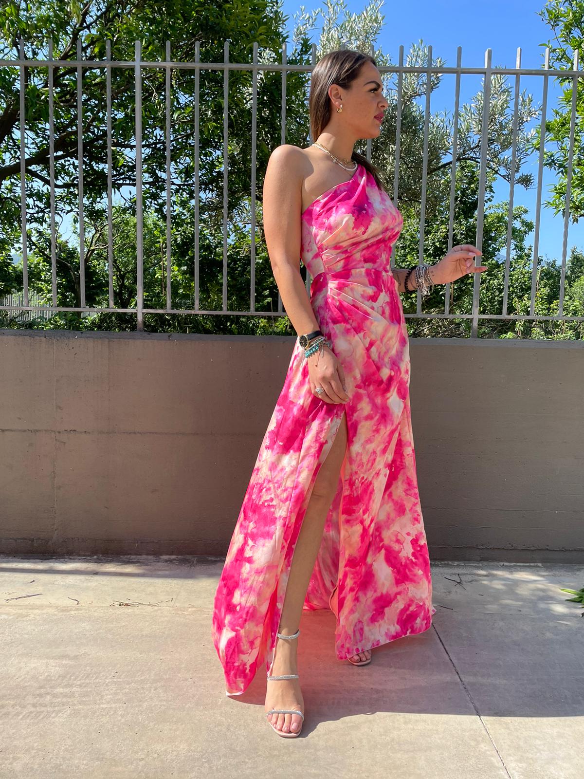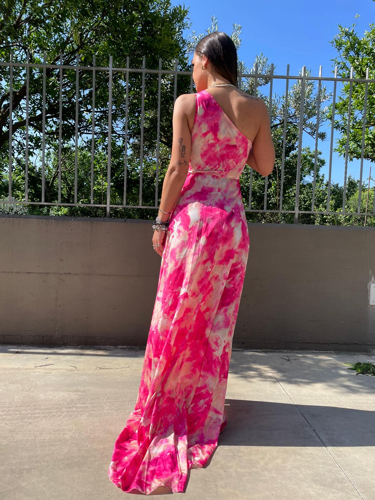 Vestito lungo rainbow mono spalla