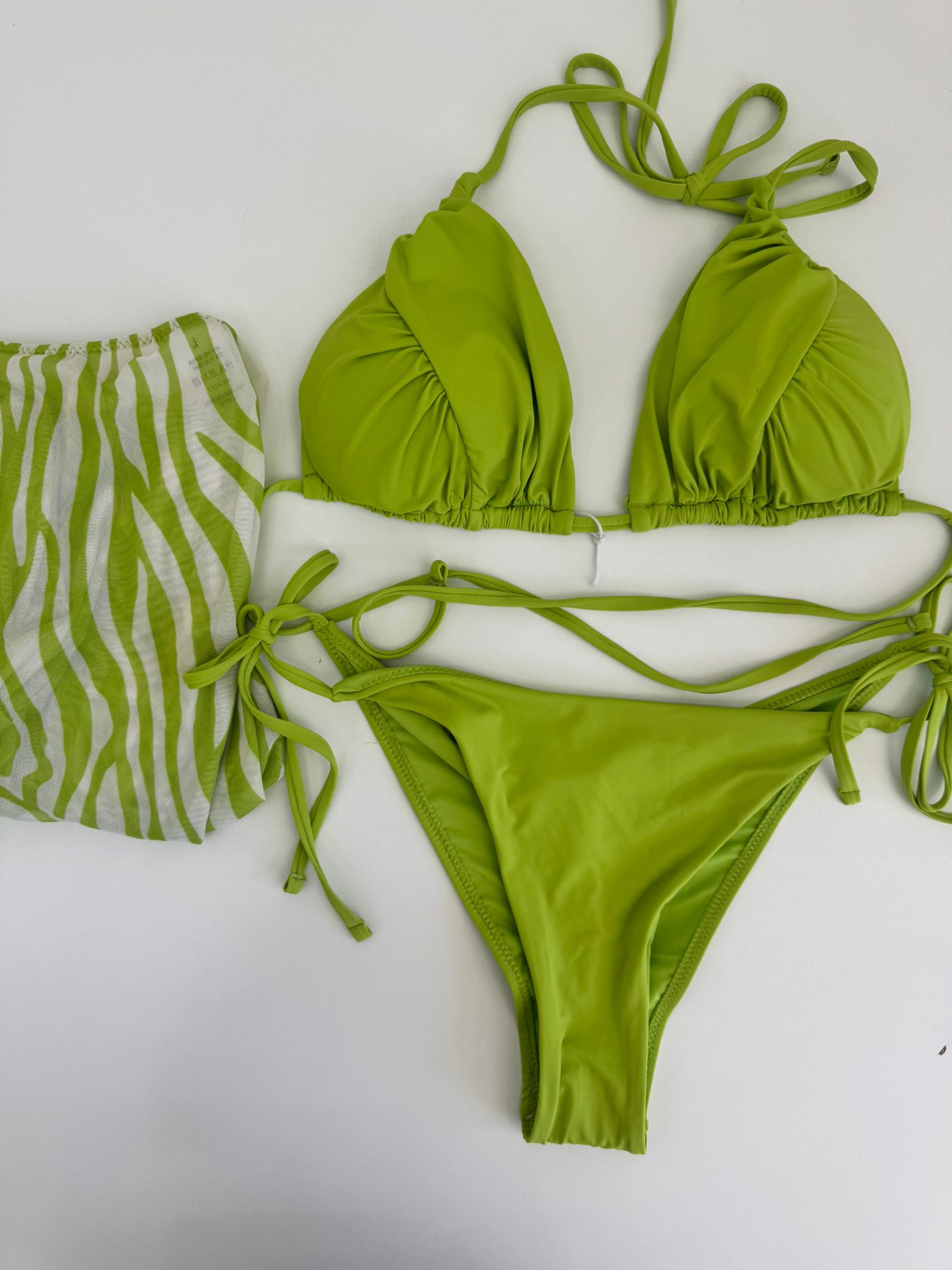 Costume 3 pezzi con pareo velato fantasia striata