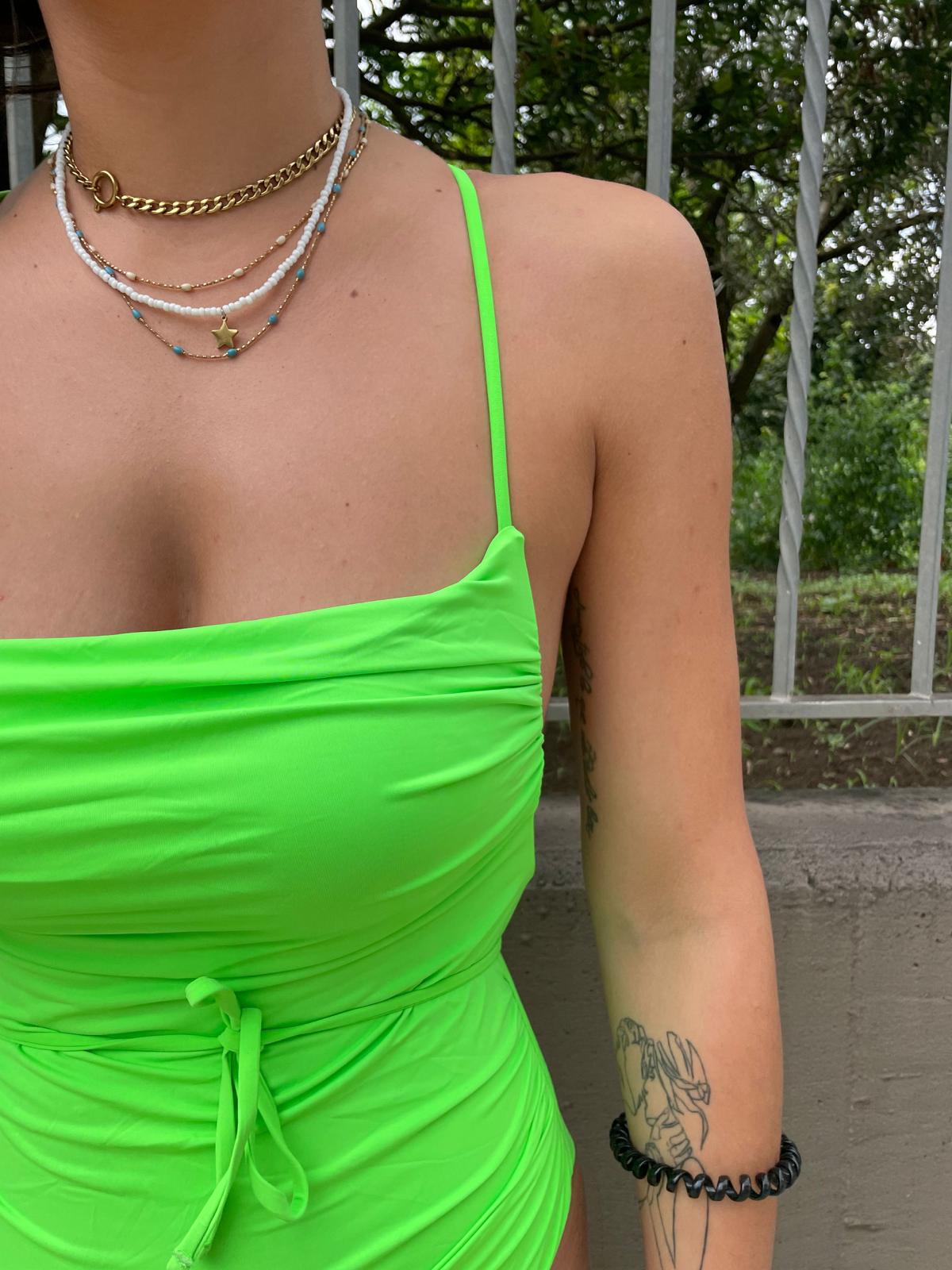 - La modella è una taglia 44, 4^ di seno e indossa la taglia "L"