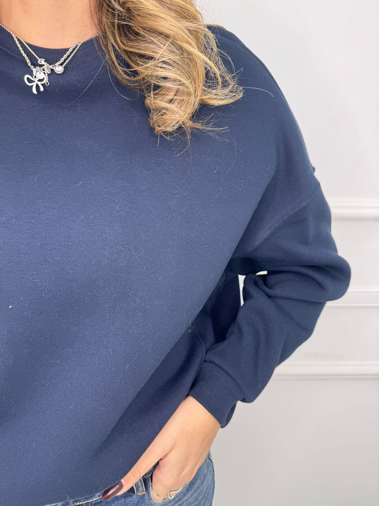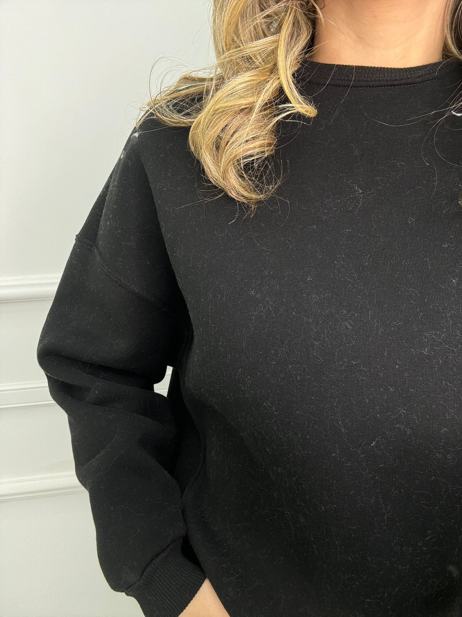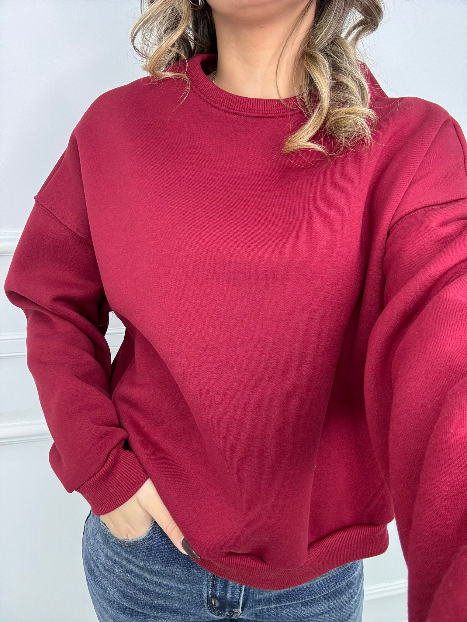 Felpa giro collo tinta unita