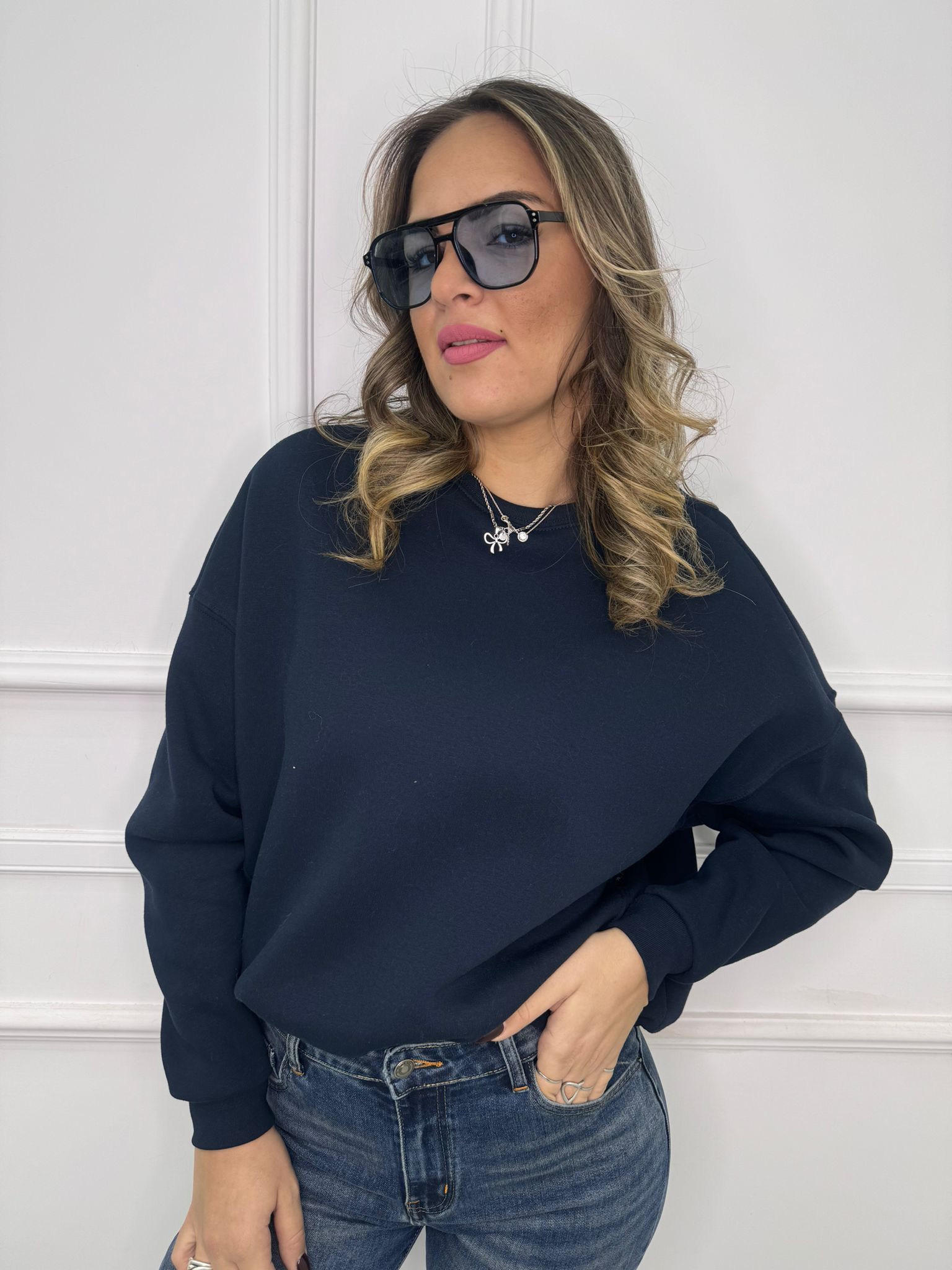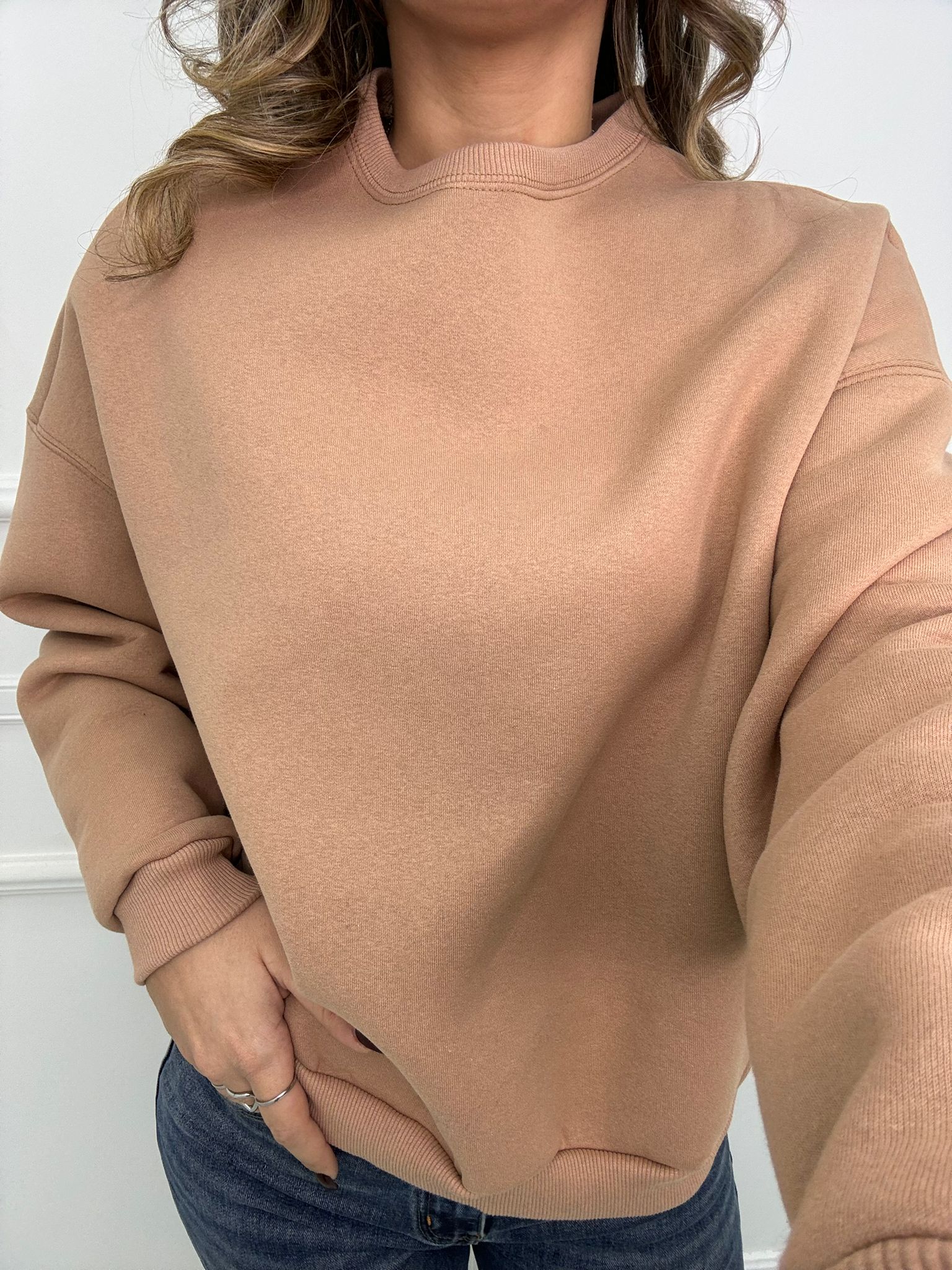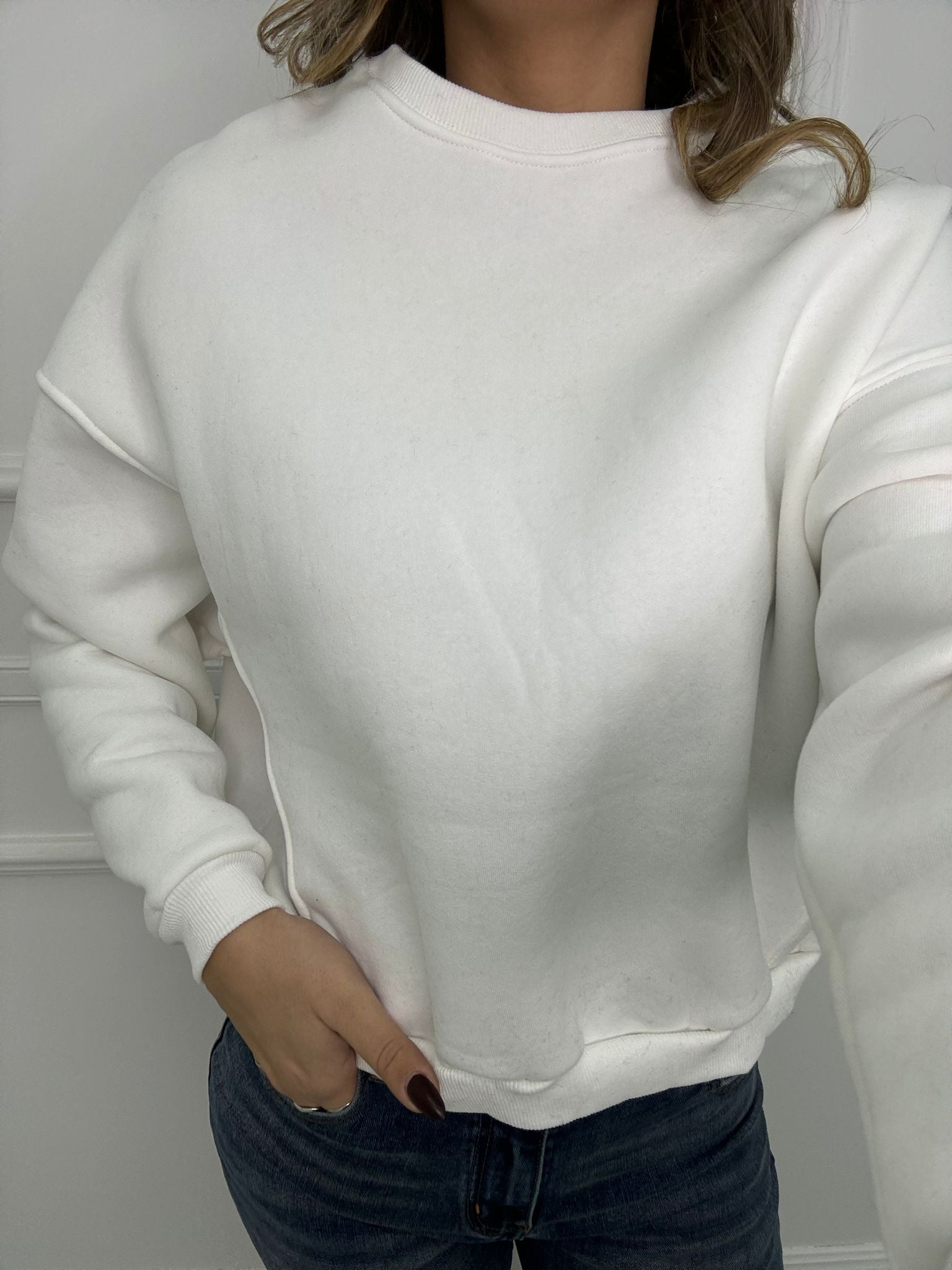 Felpa giro collo tinta unita