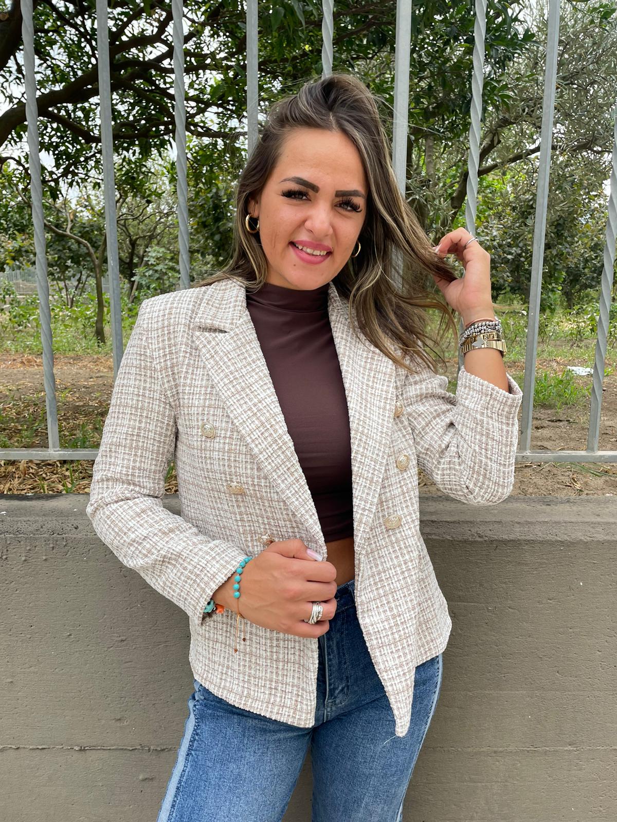 - La modella è una taglia 44, alta 1,79m e indossa la taglia "M"
