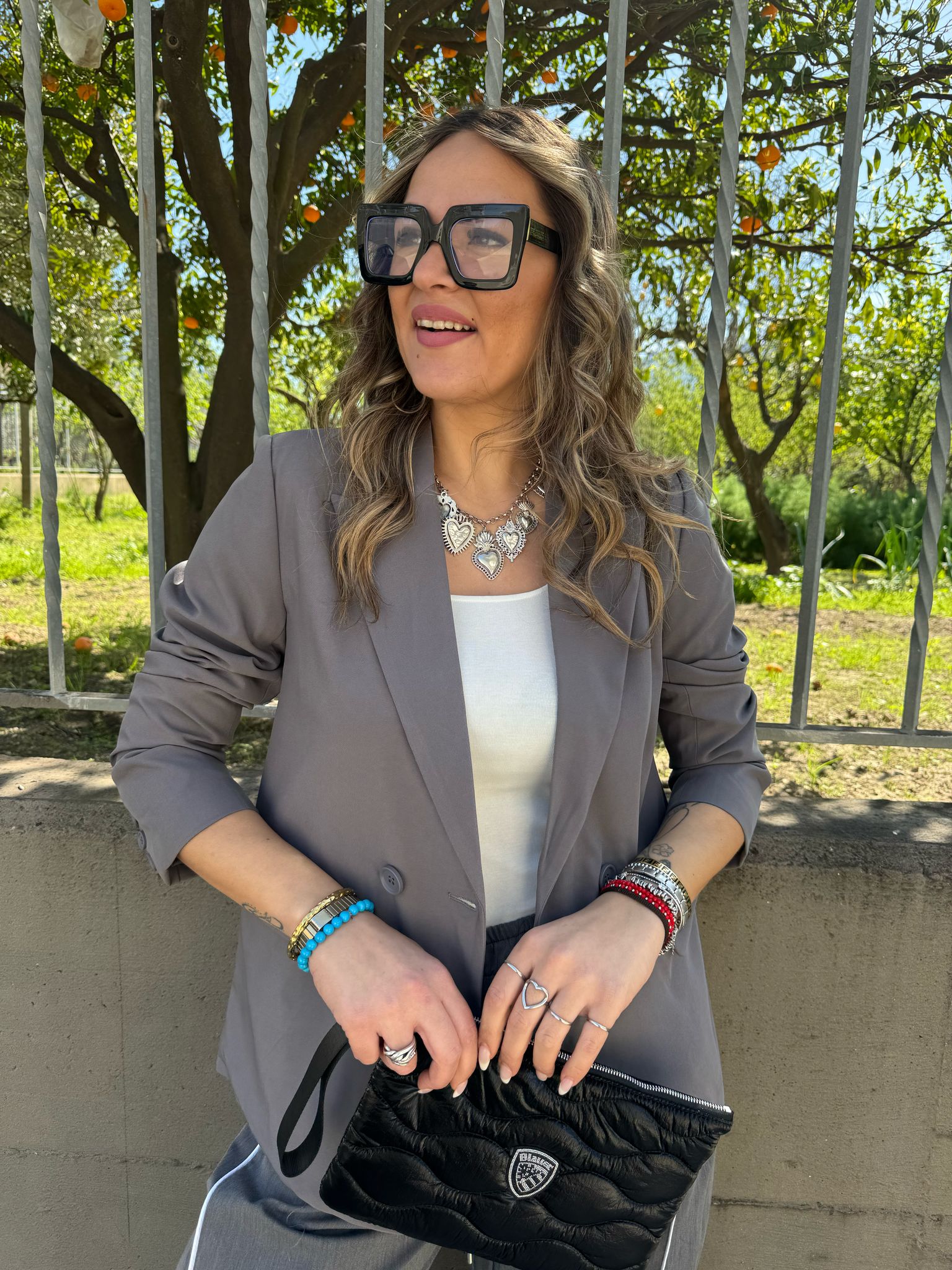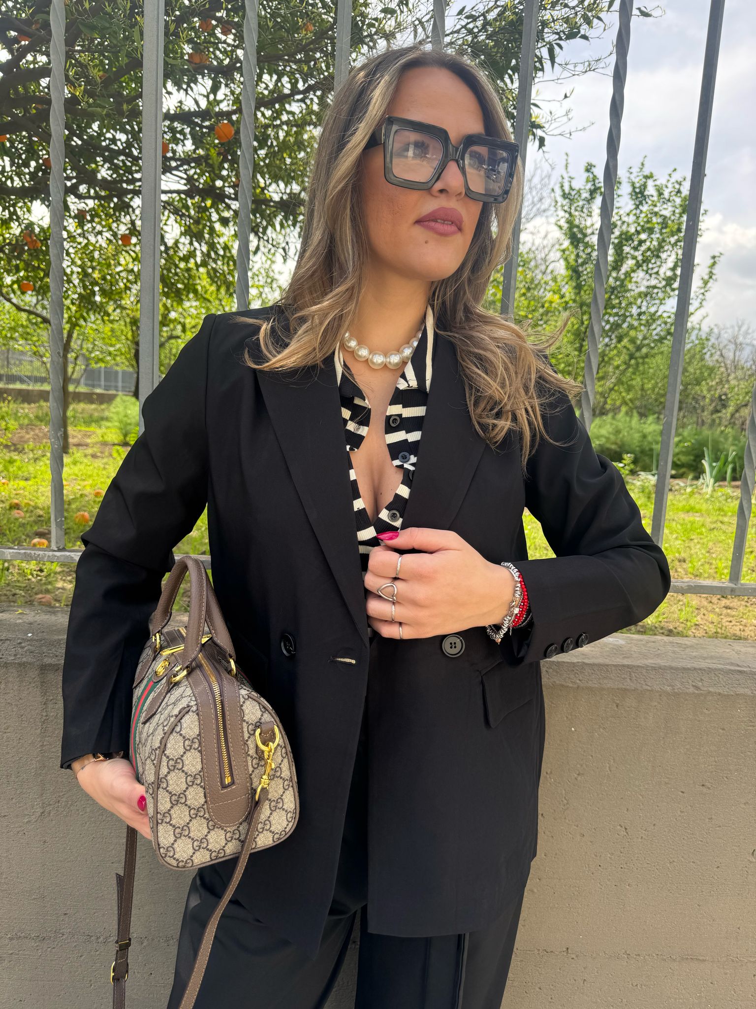 - La modella è una taglia 44, alta 1,79m e indossa la taglia "L"