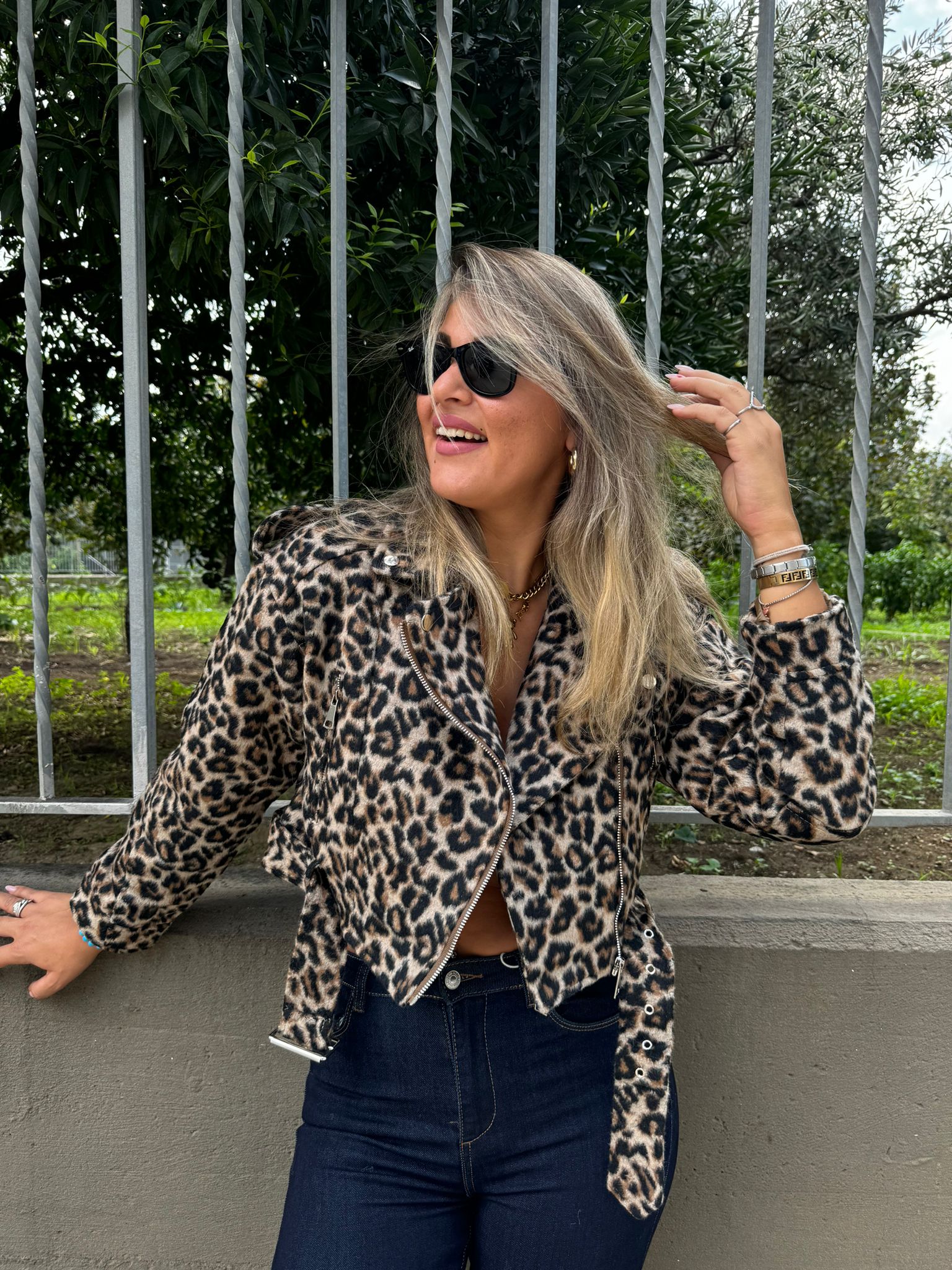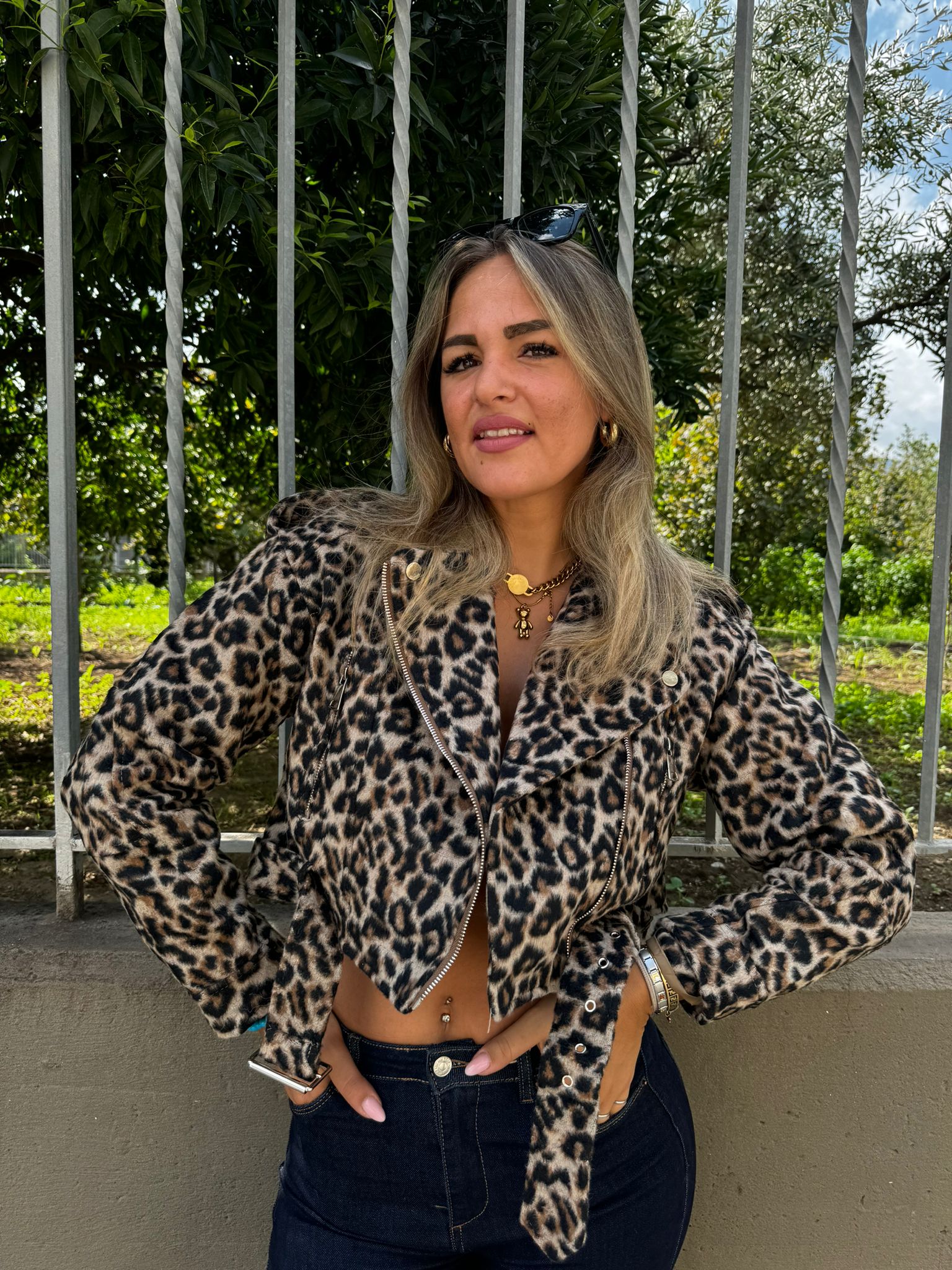 Giubbino crop animalier foderato