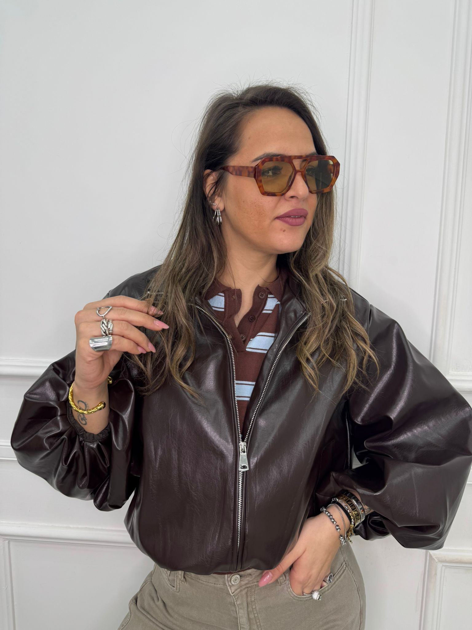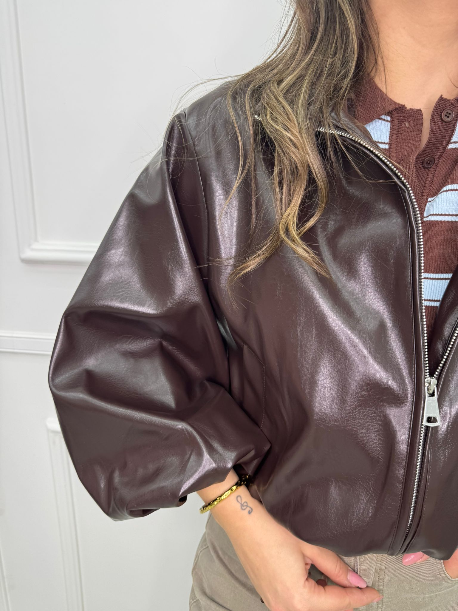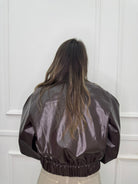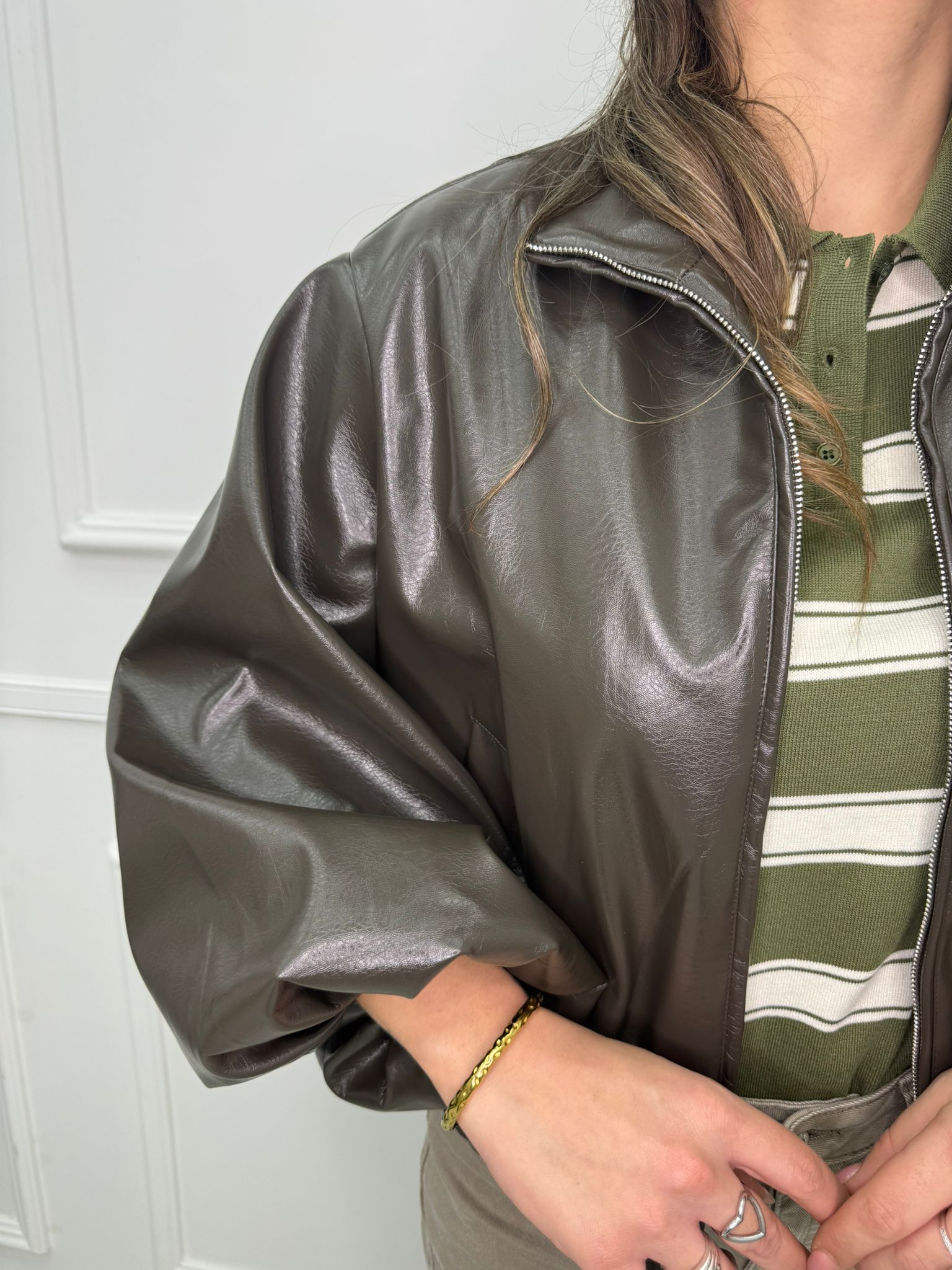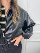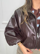 Giubbino eco pelle over con maniche a palloncino
