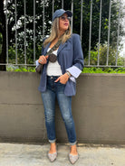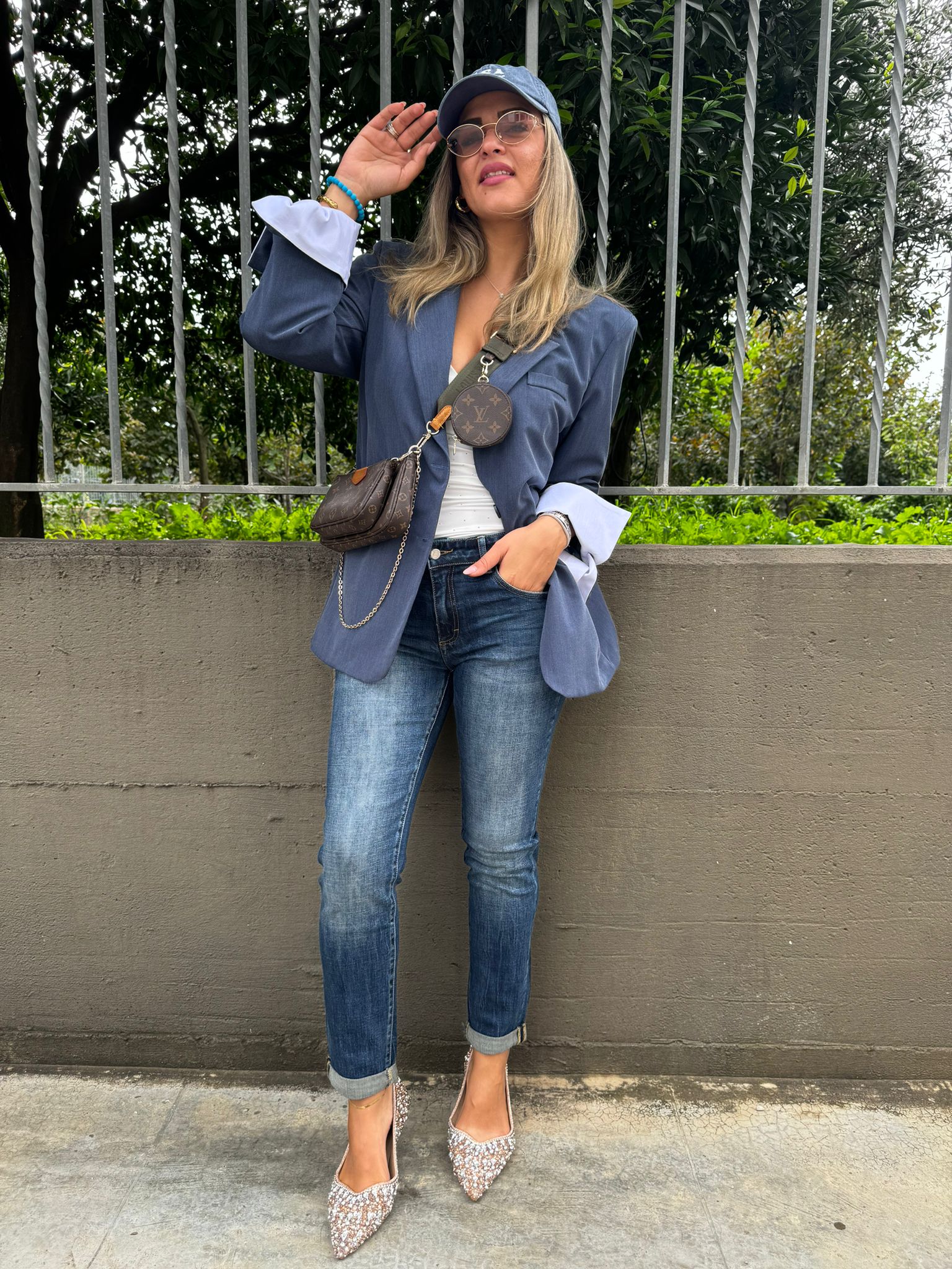 - La modella è una taglia 44, alta 1,79m e indossa la taglia "M"