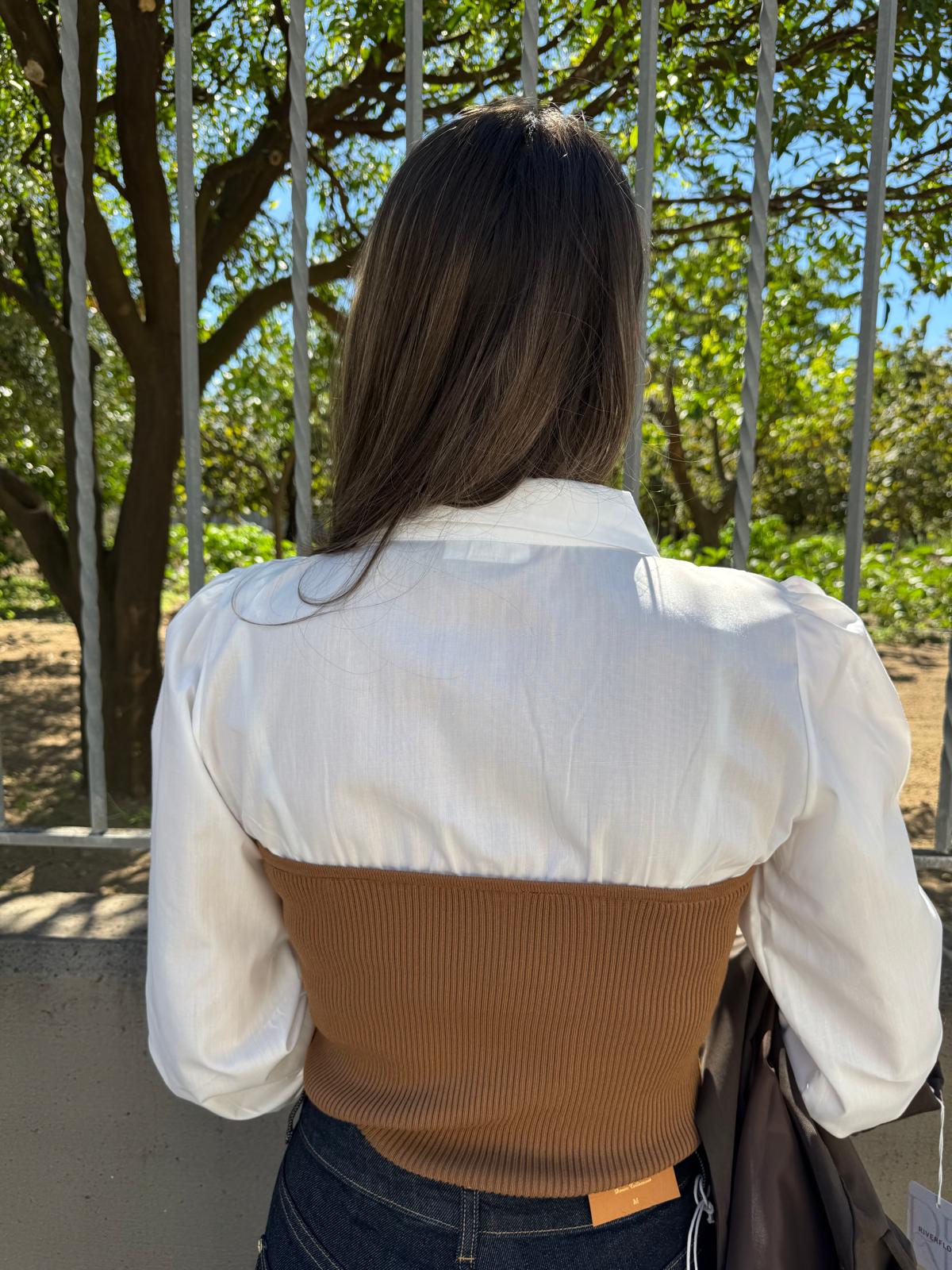 Maglia a costine con finta camicia