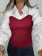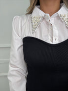- Finta camicia sotto con perle