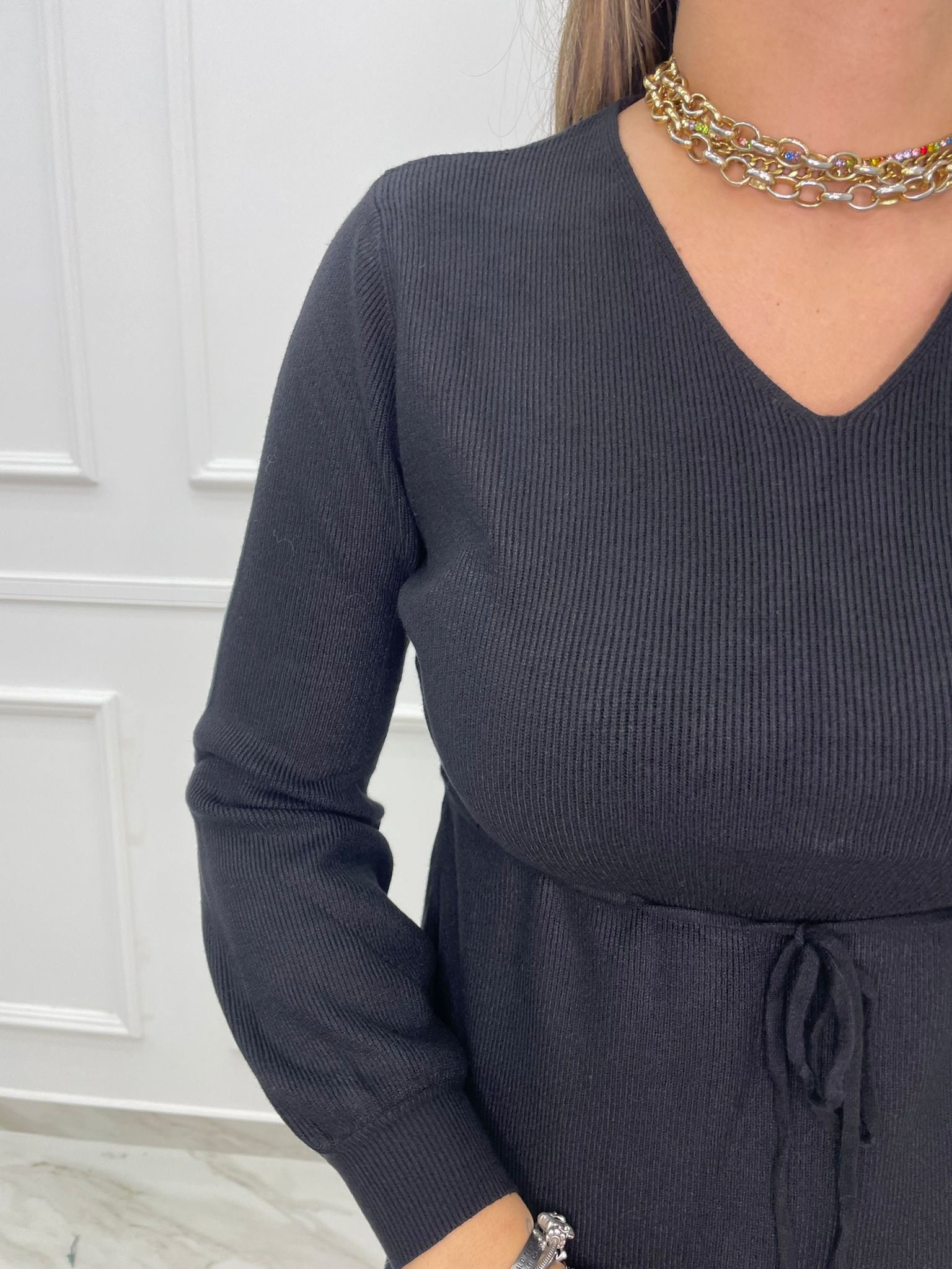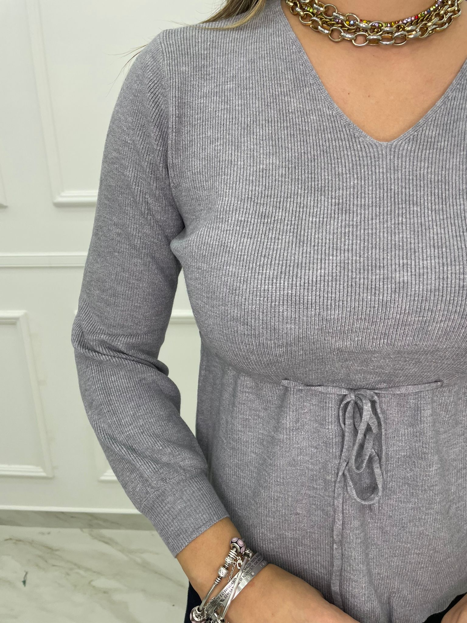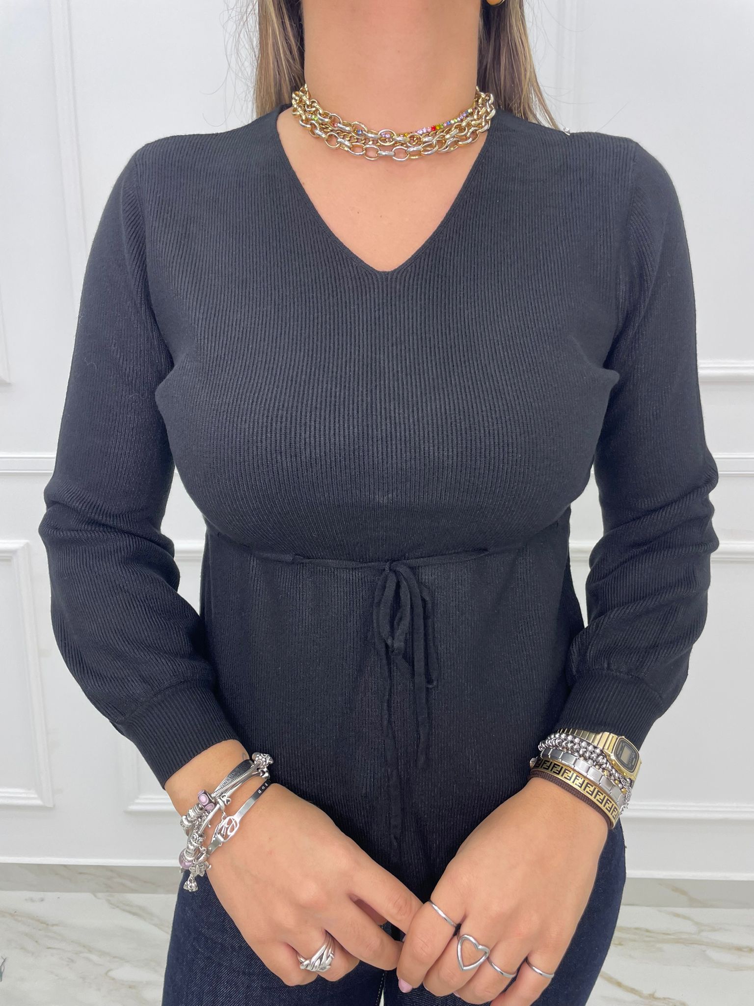 Maglia a costine con laccetto in vita
