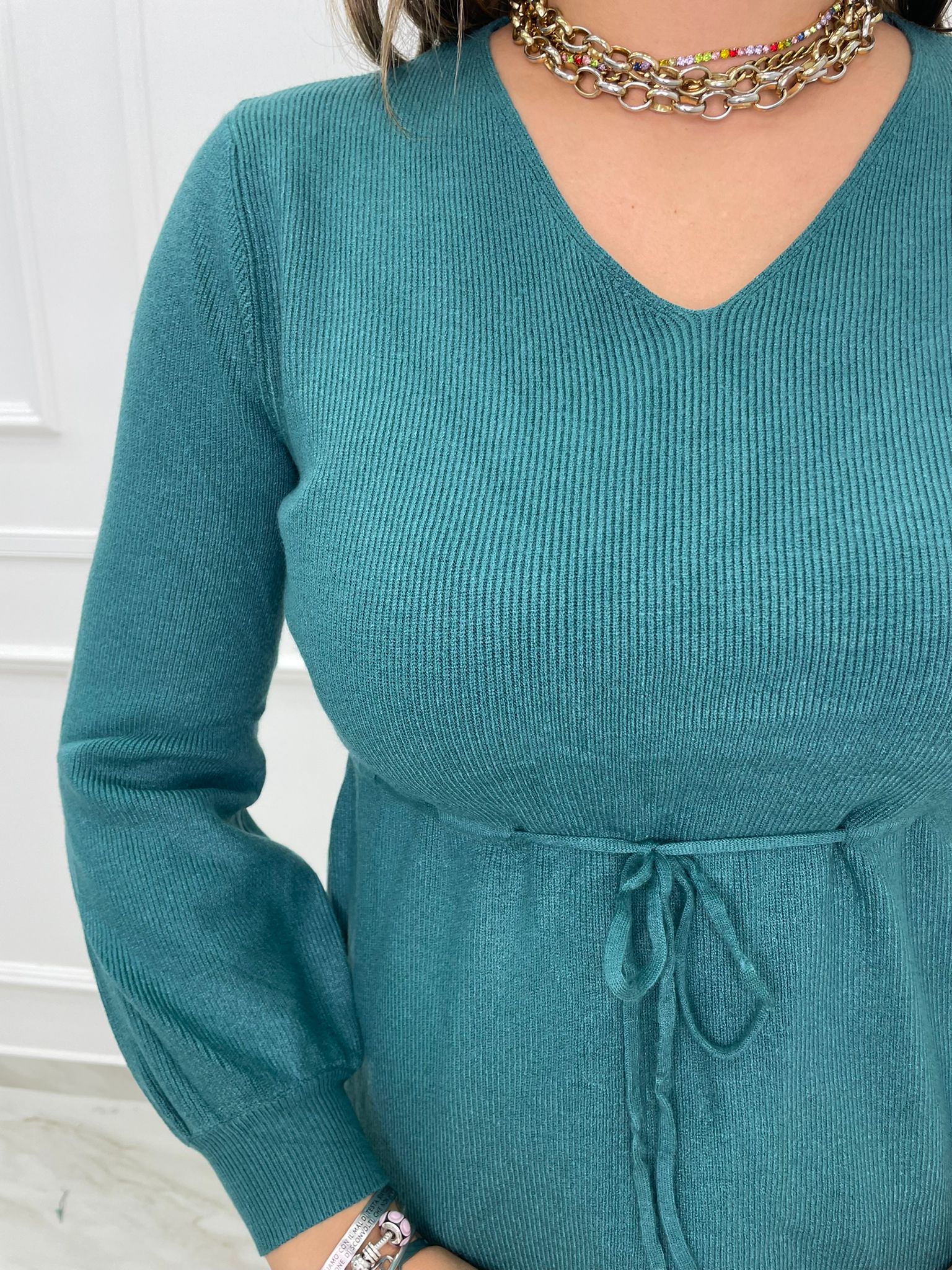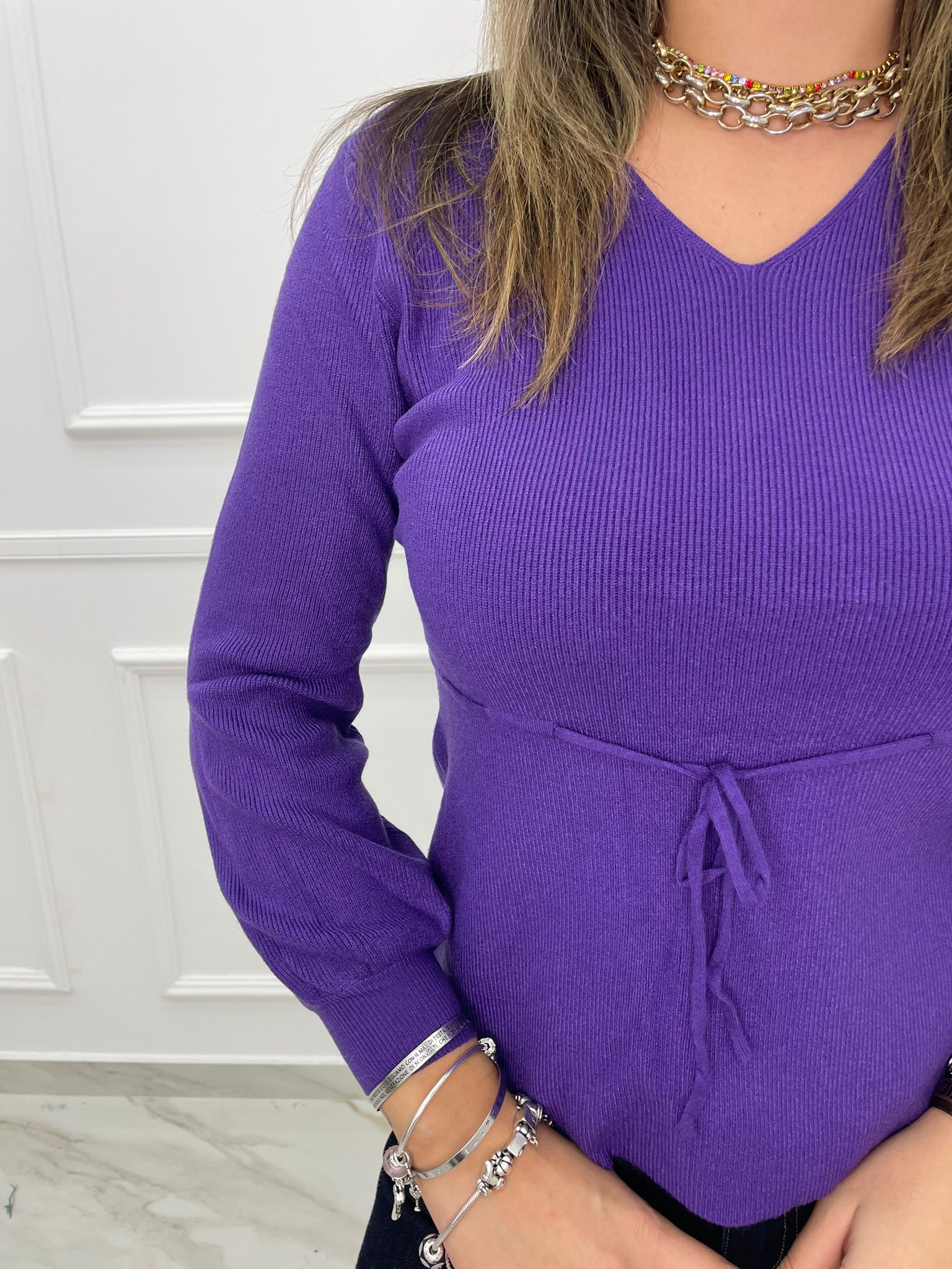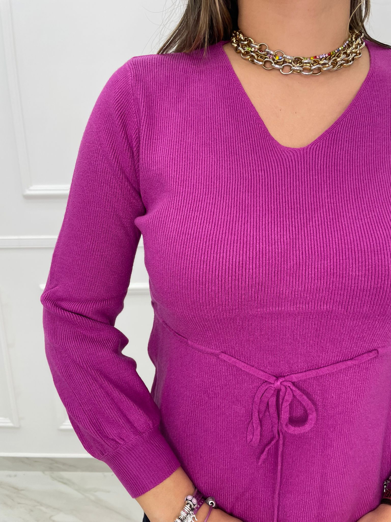 Maglia a costine con laccetto in vita