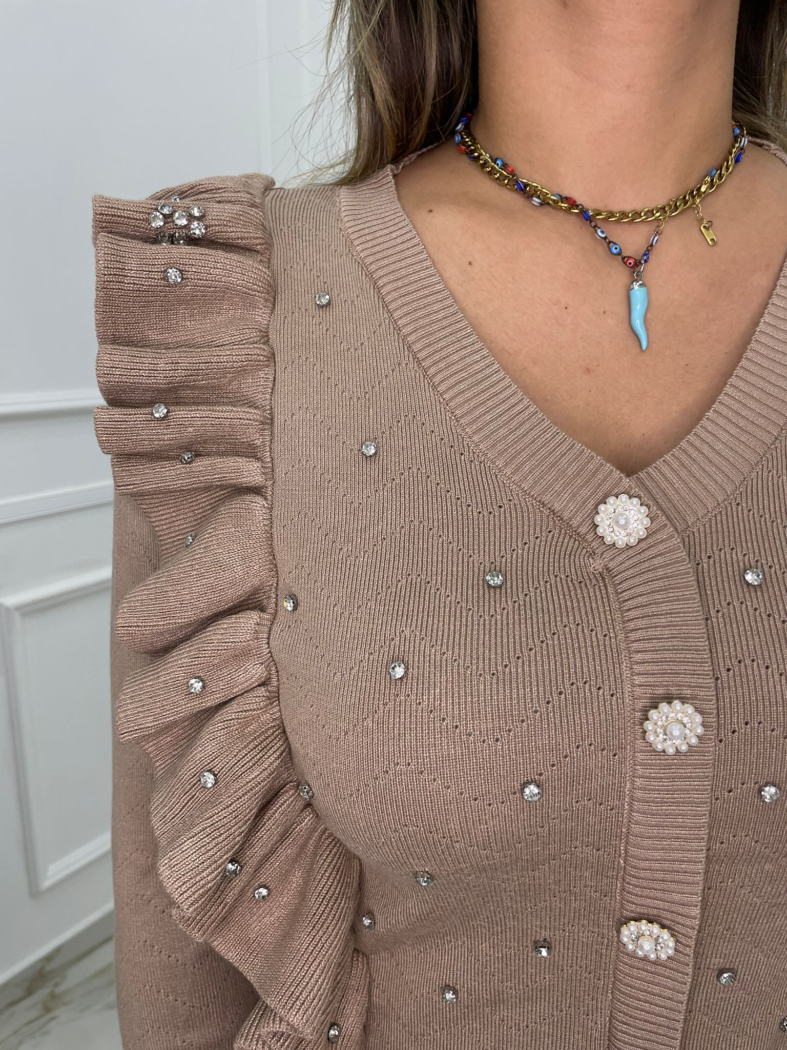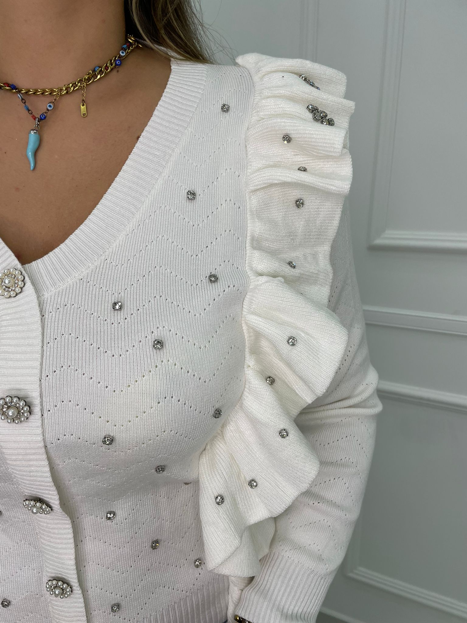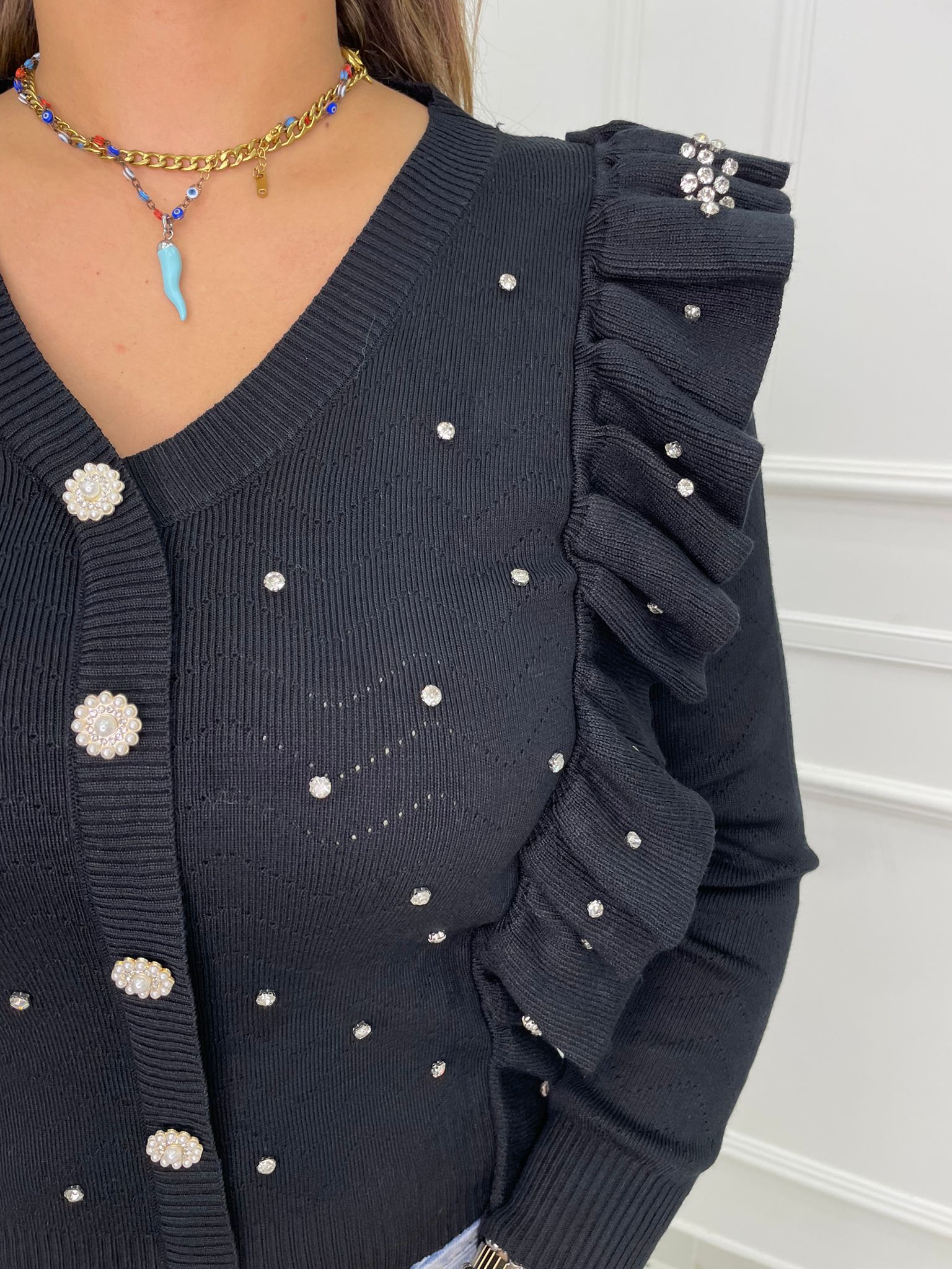 Maglia finto cardigan con rouches