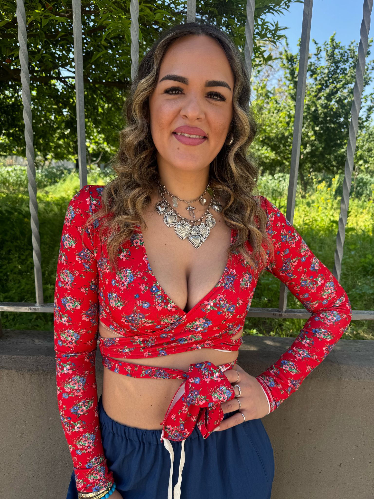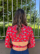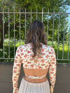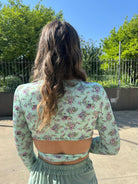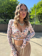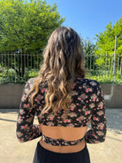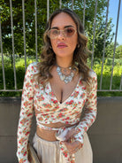 Maglia in lycra crop floreale con nodo