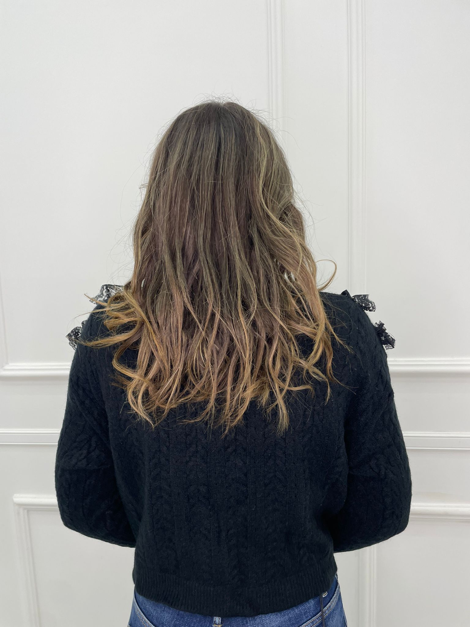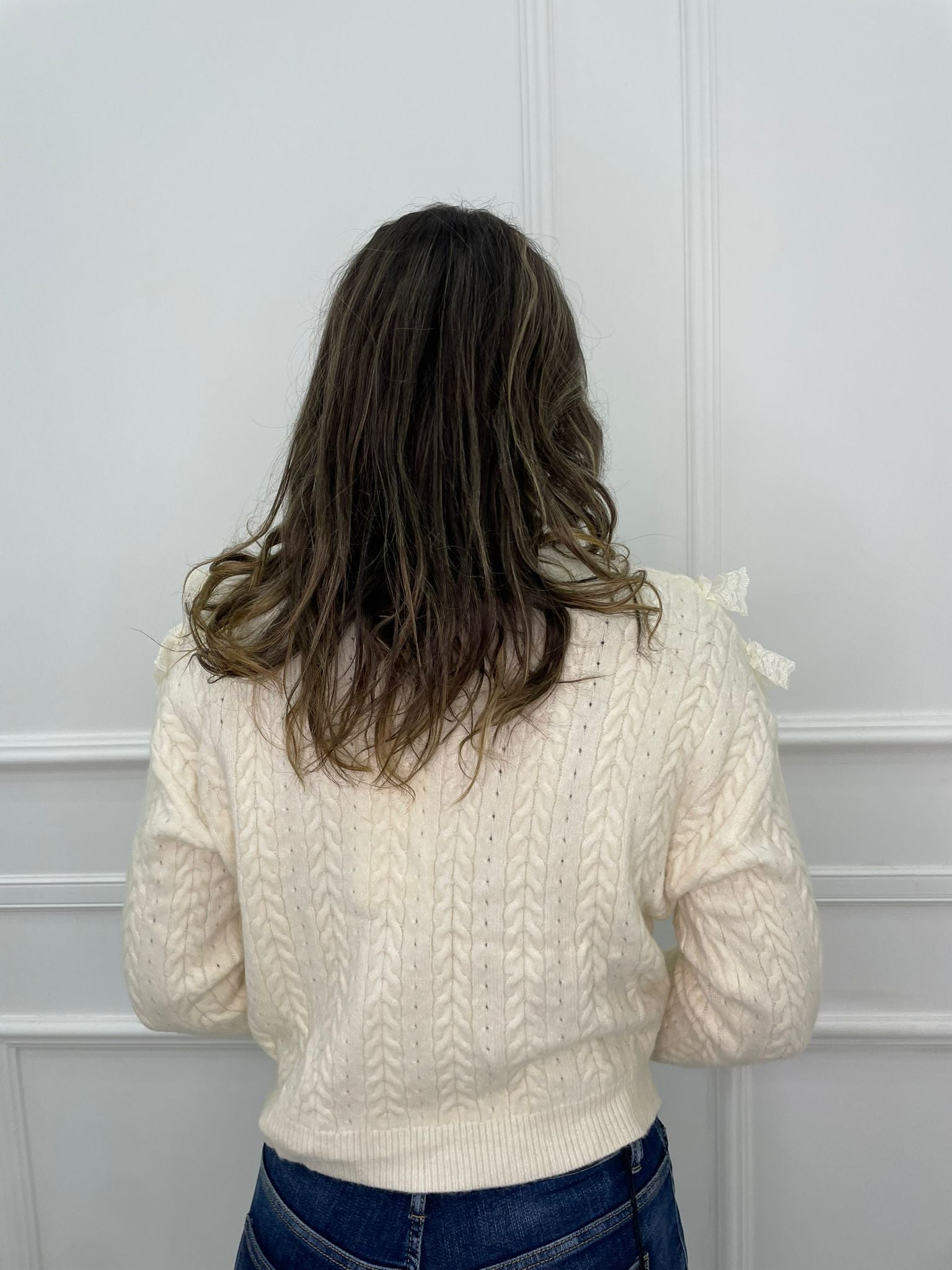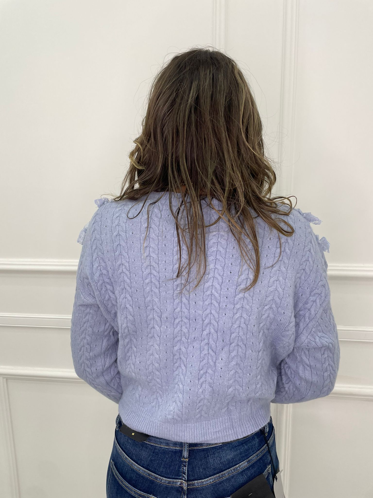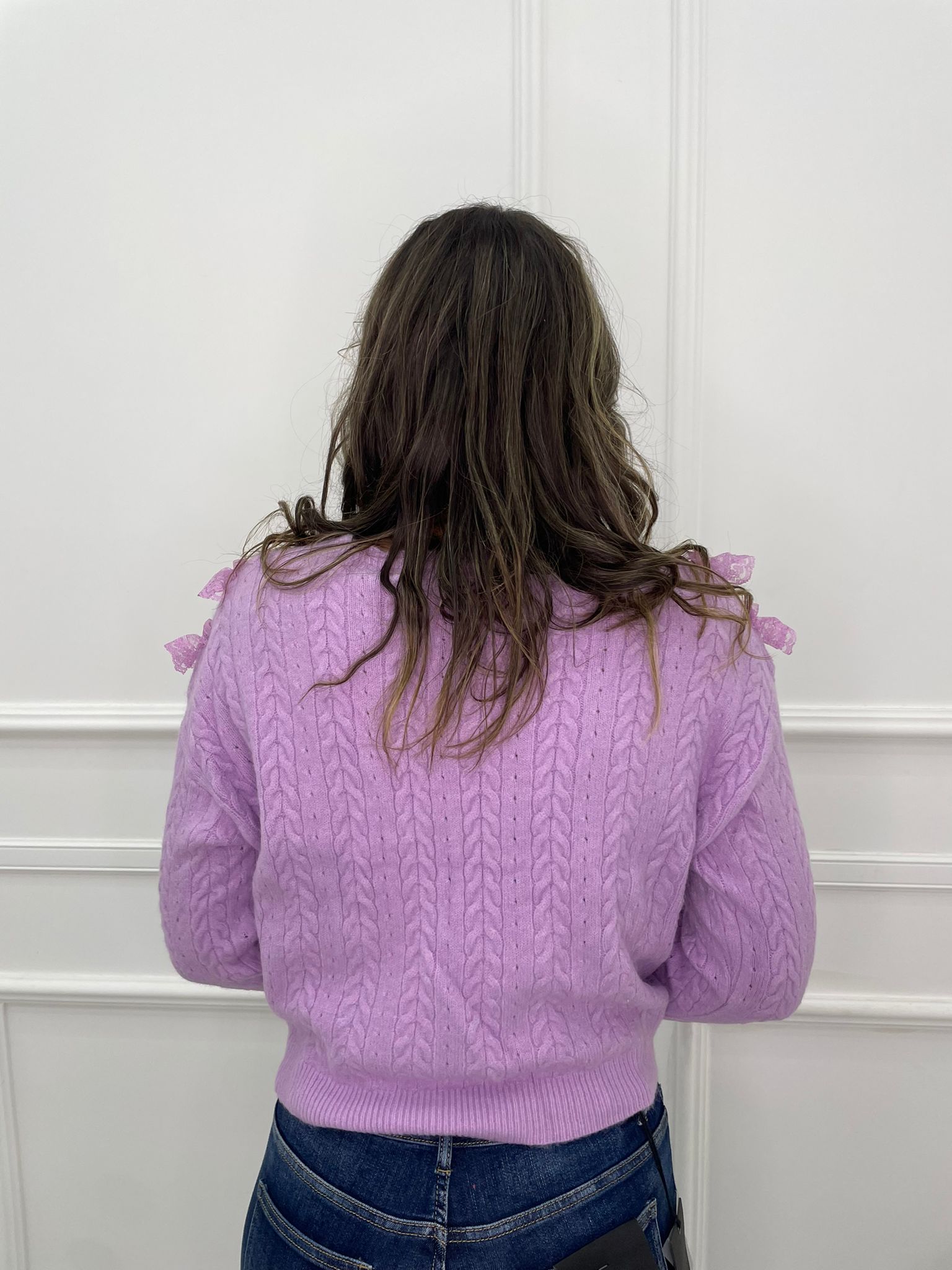 Maglia scollo a V con rouches in merletto