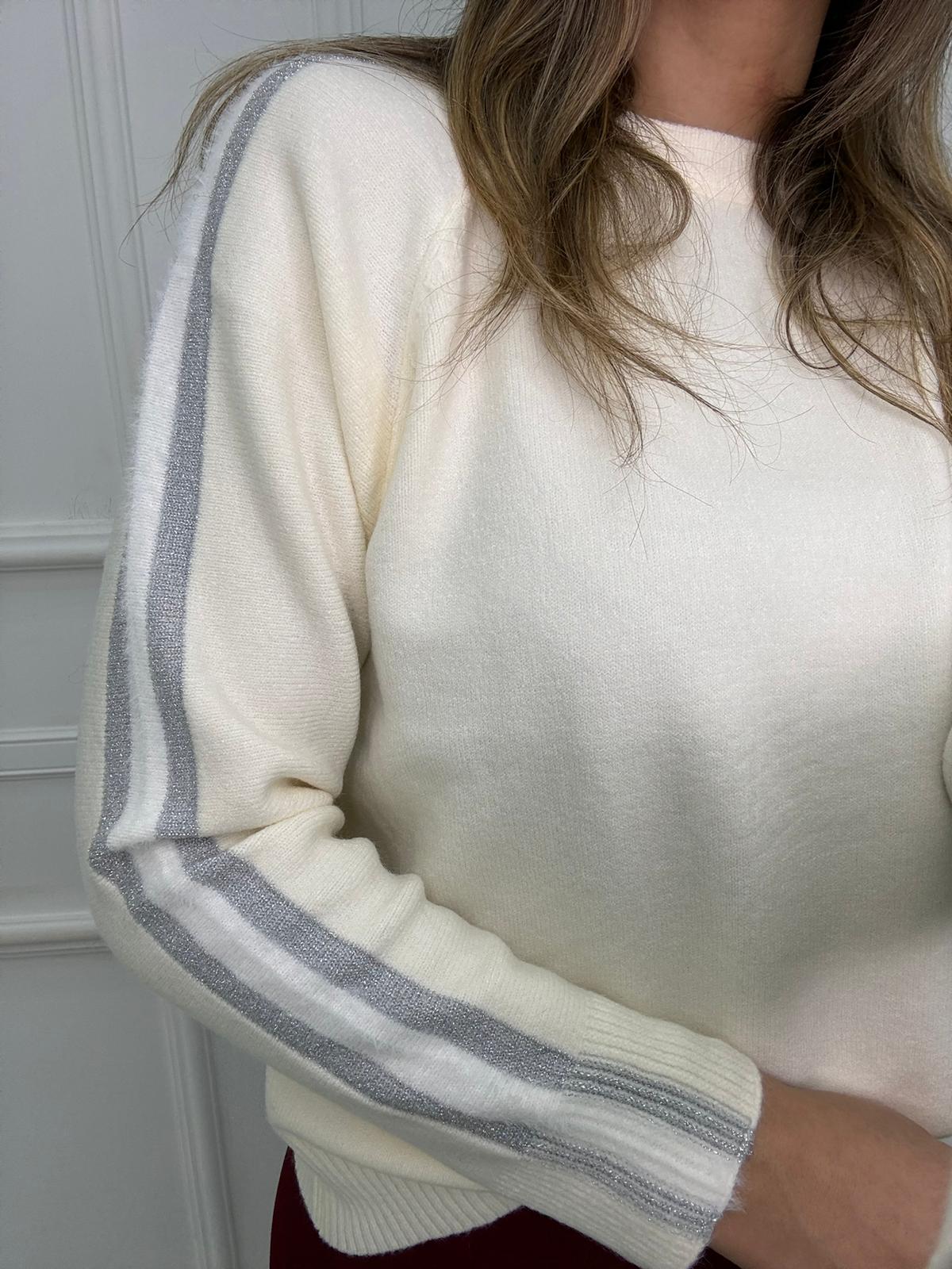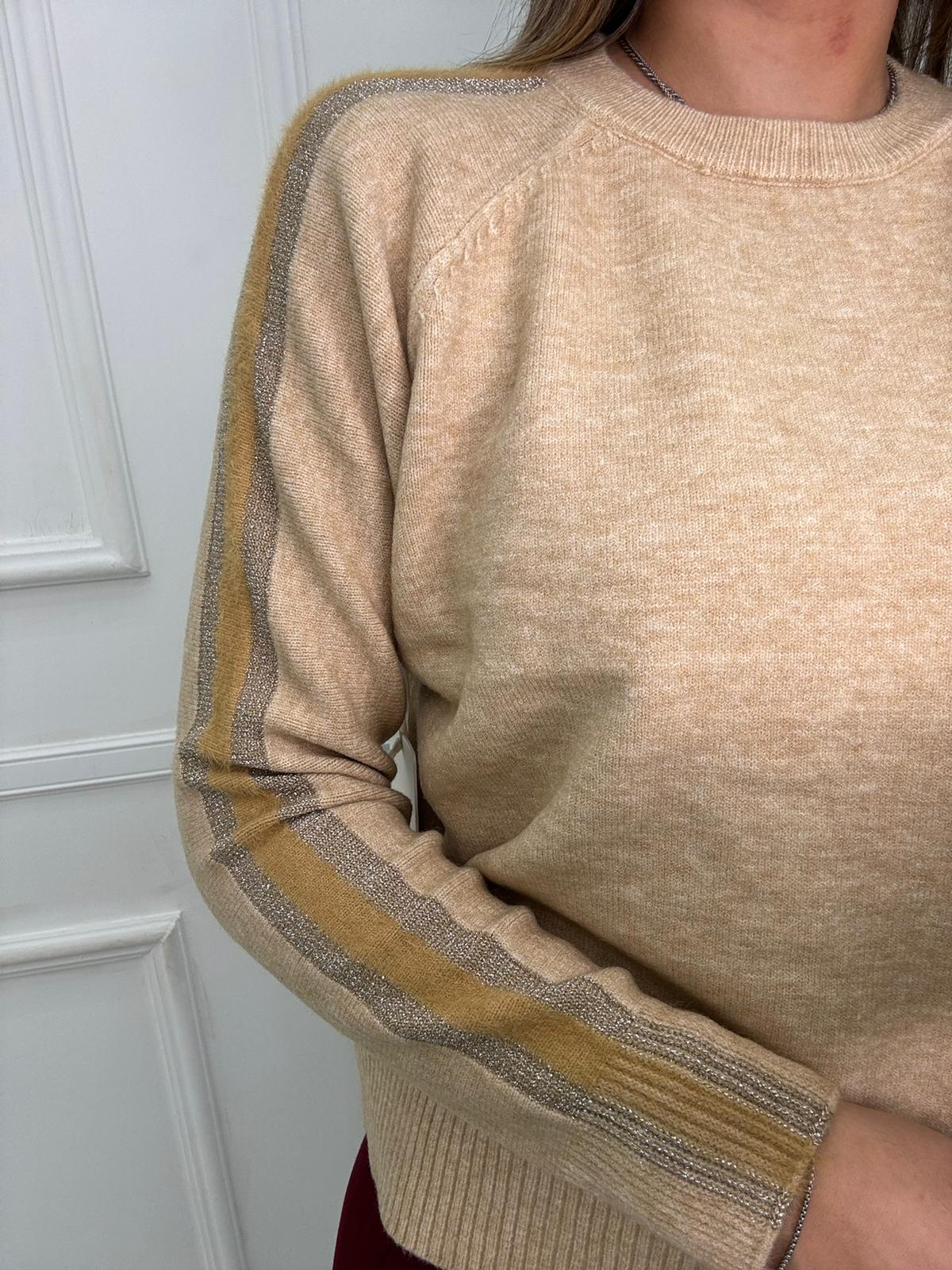 Maglione over con riga laminata alle maniche