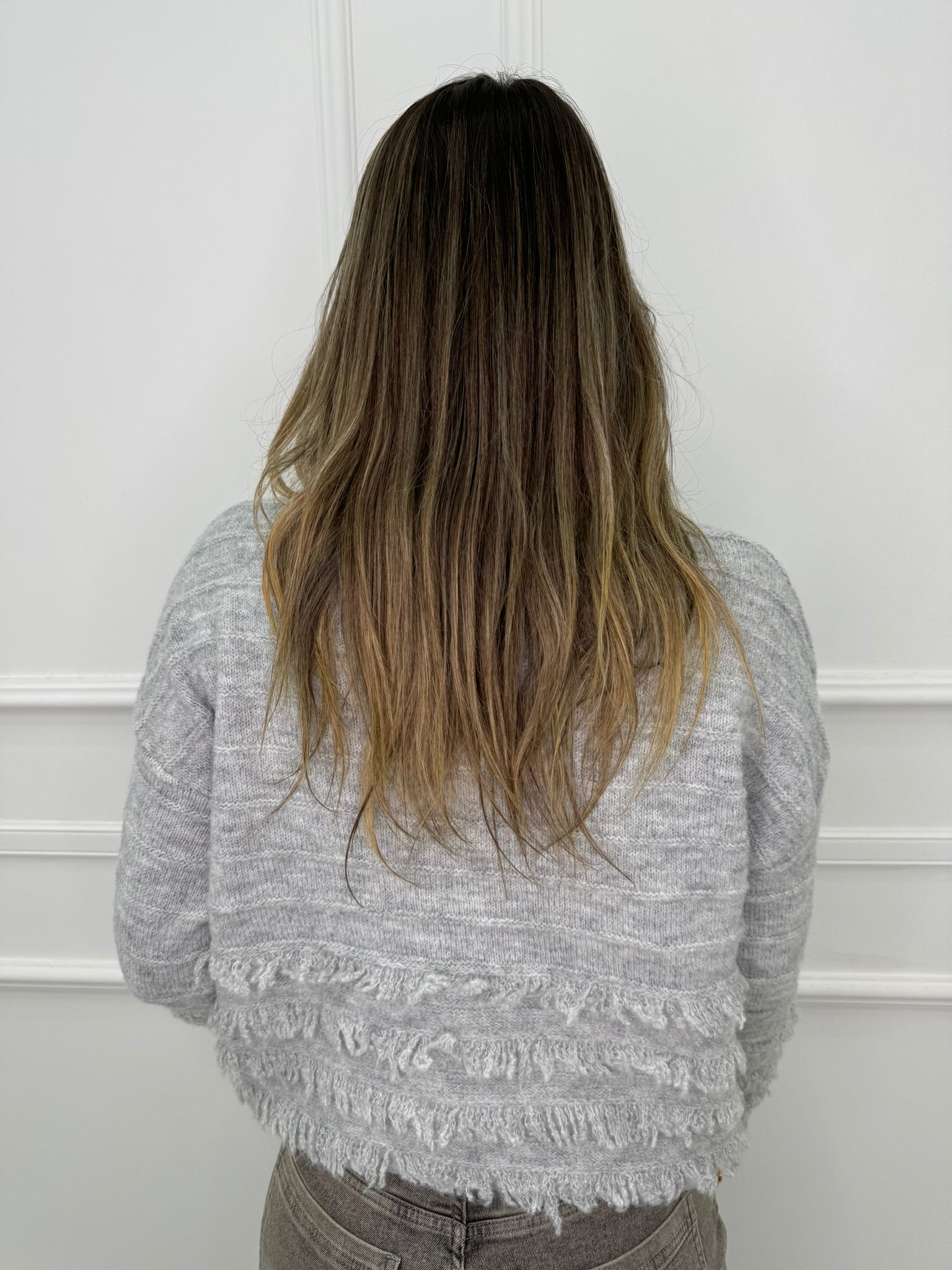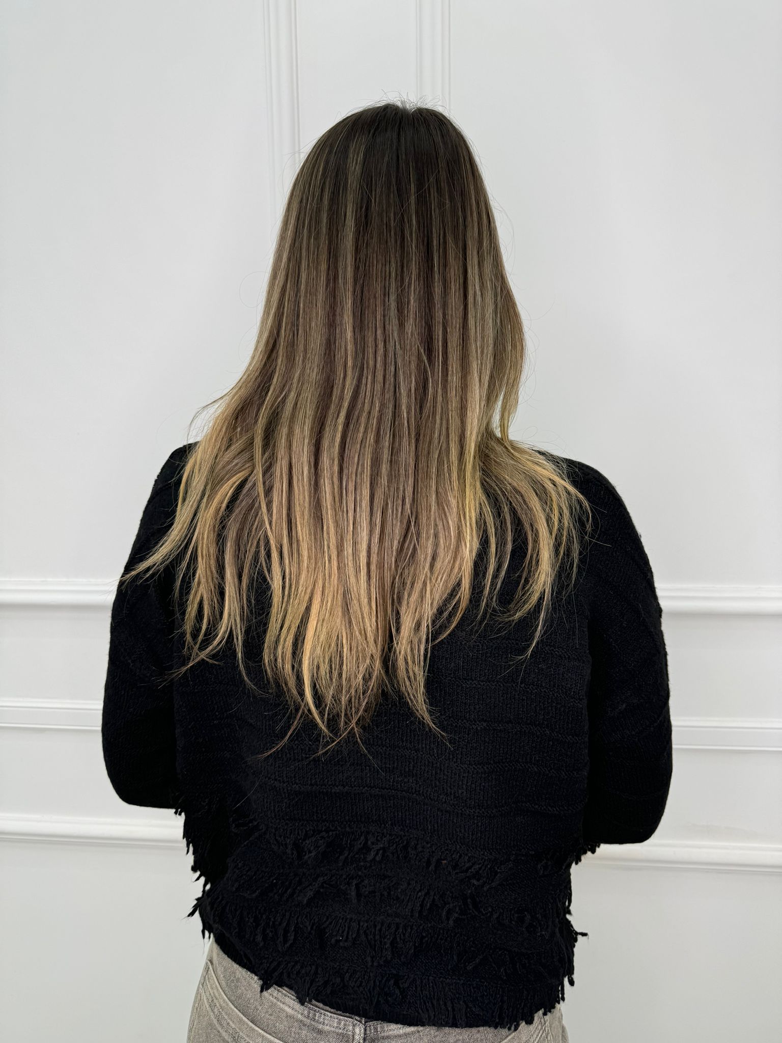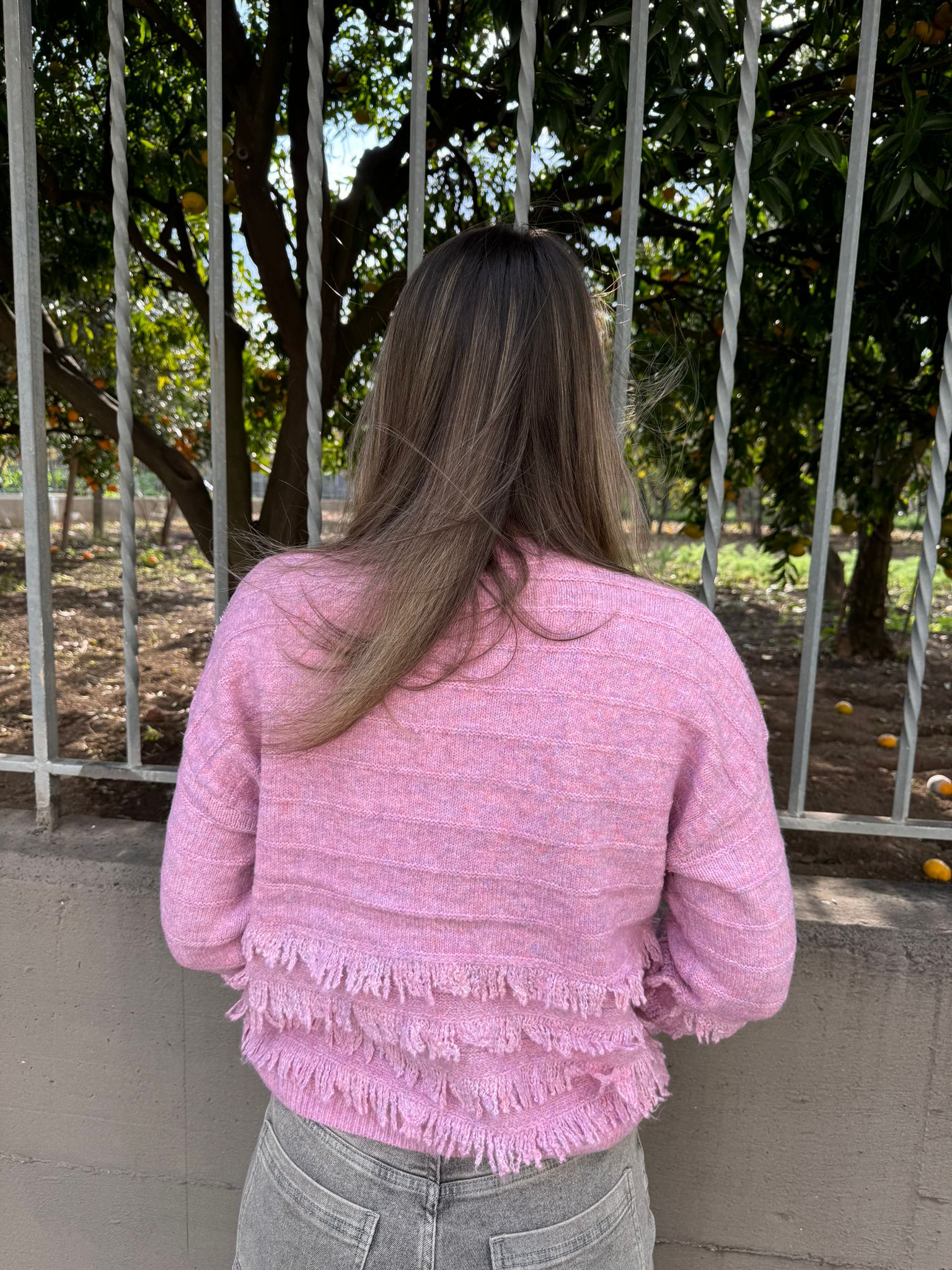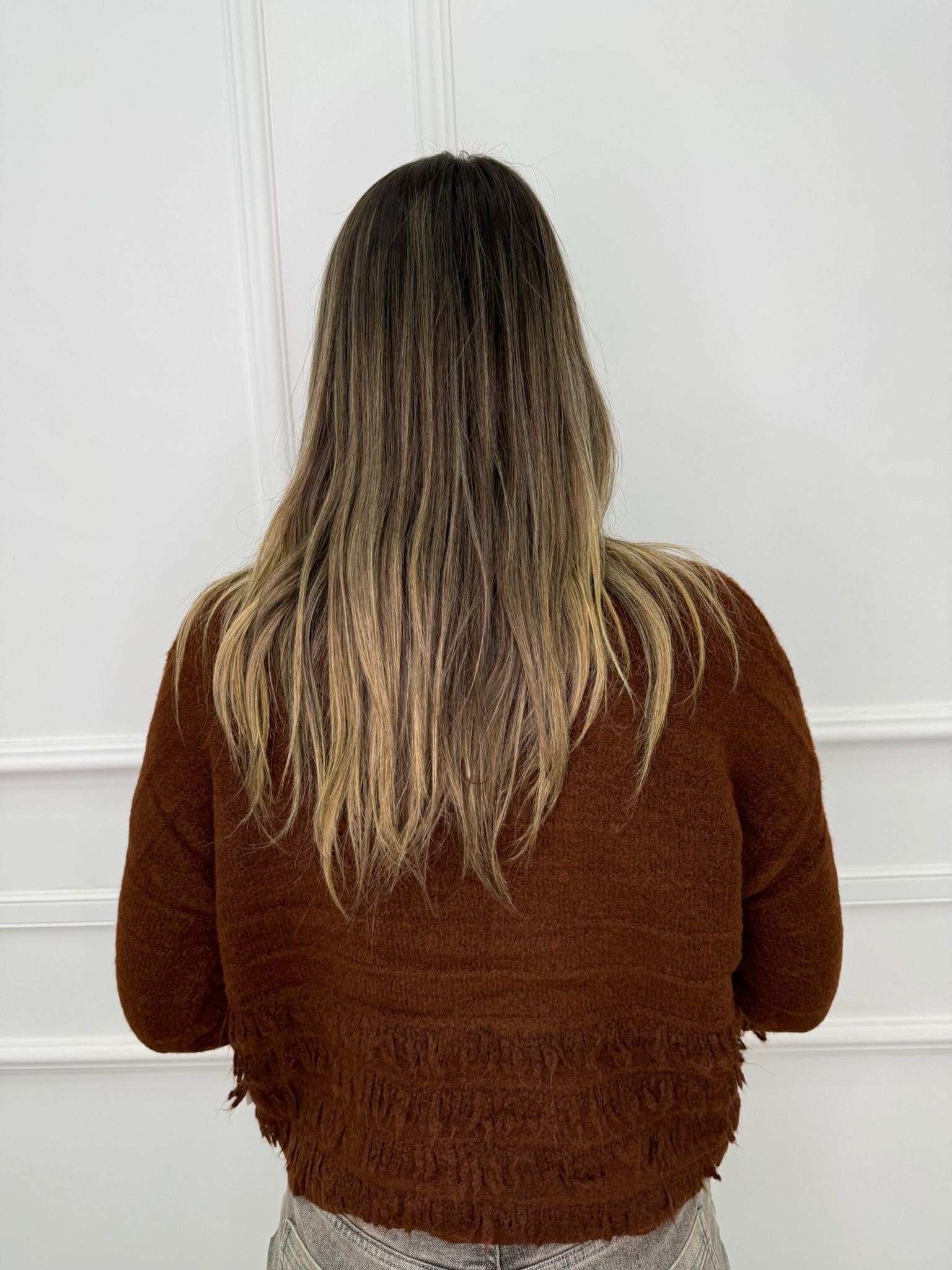 Maglione scollo a V con frange e swarovski