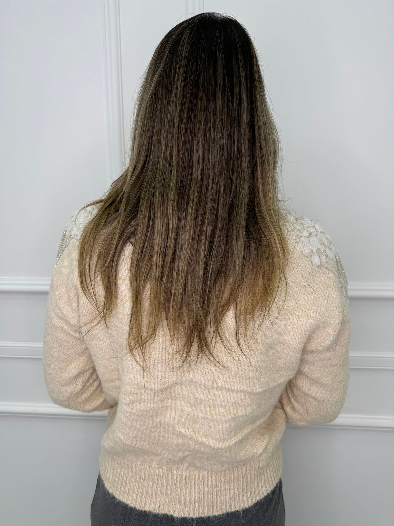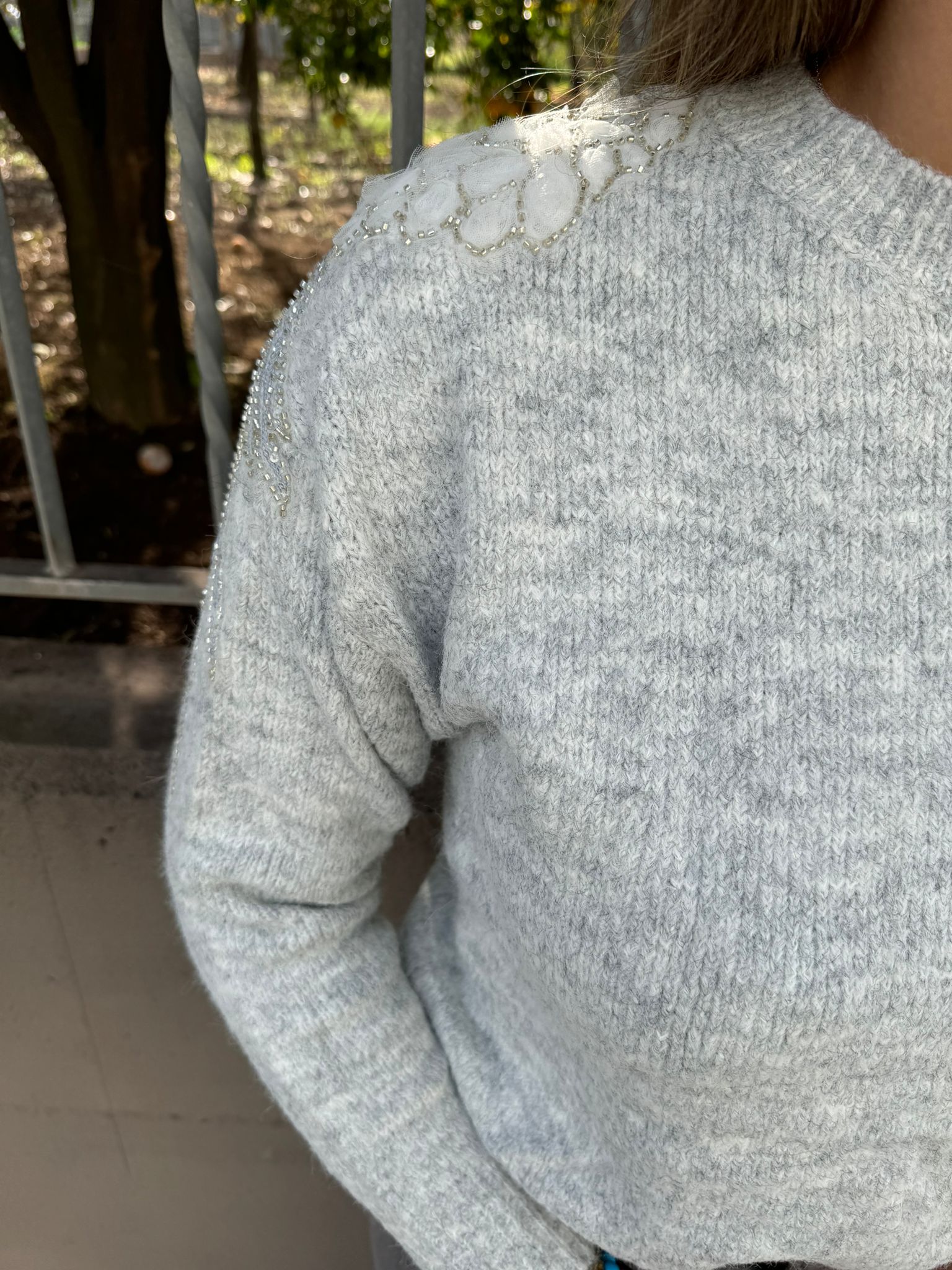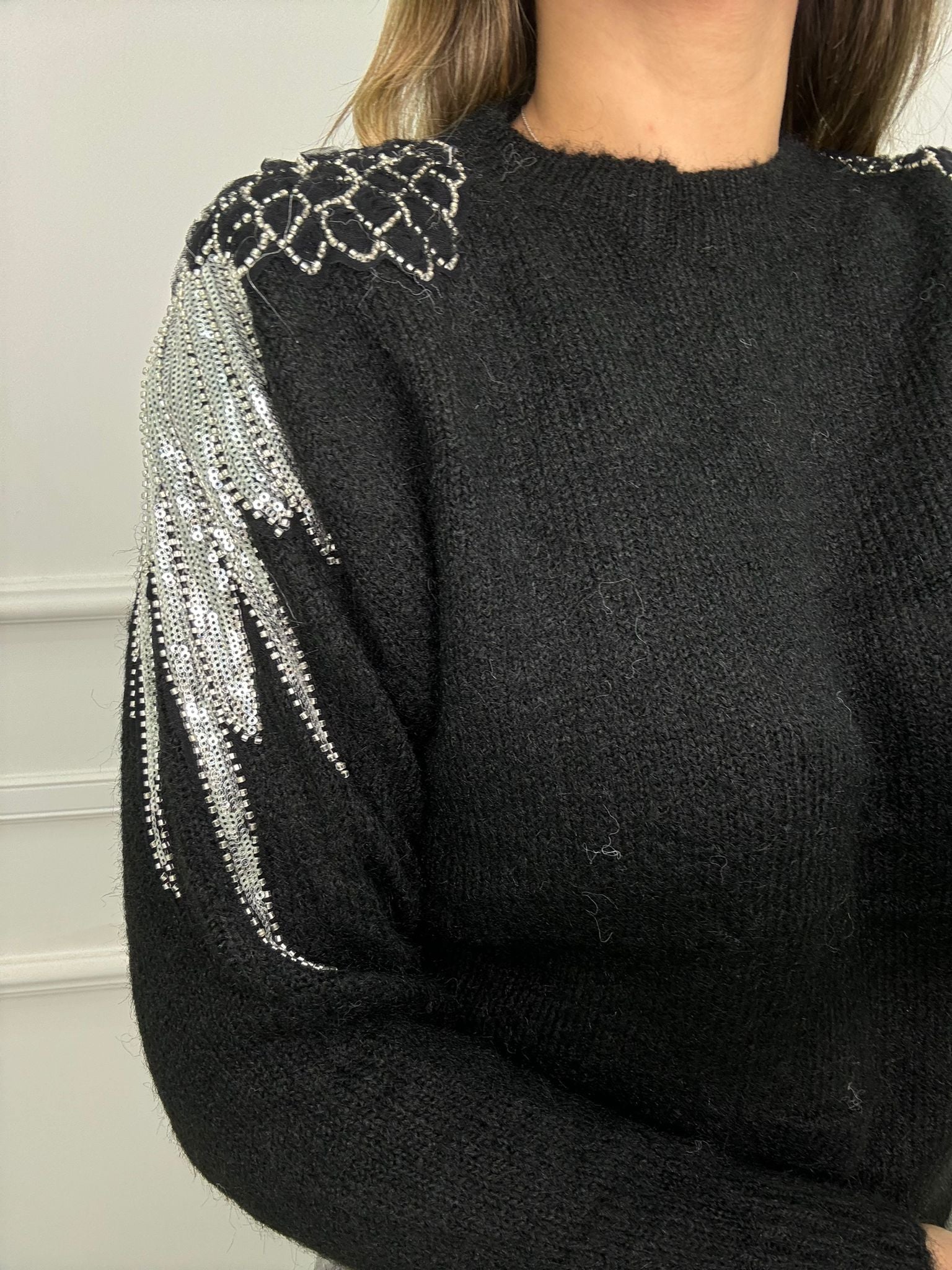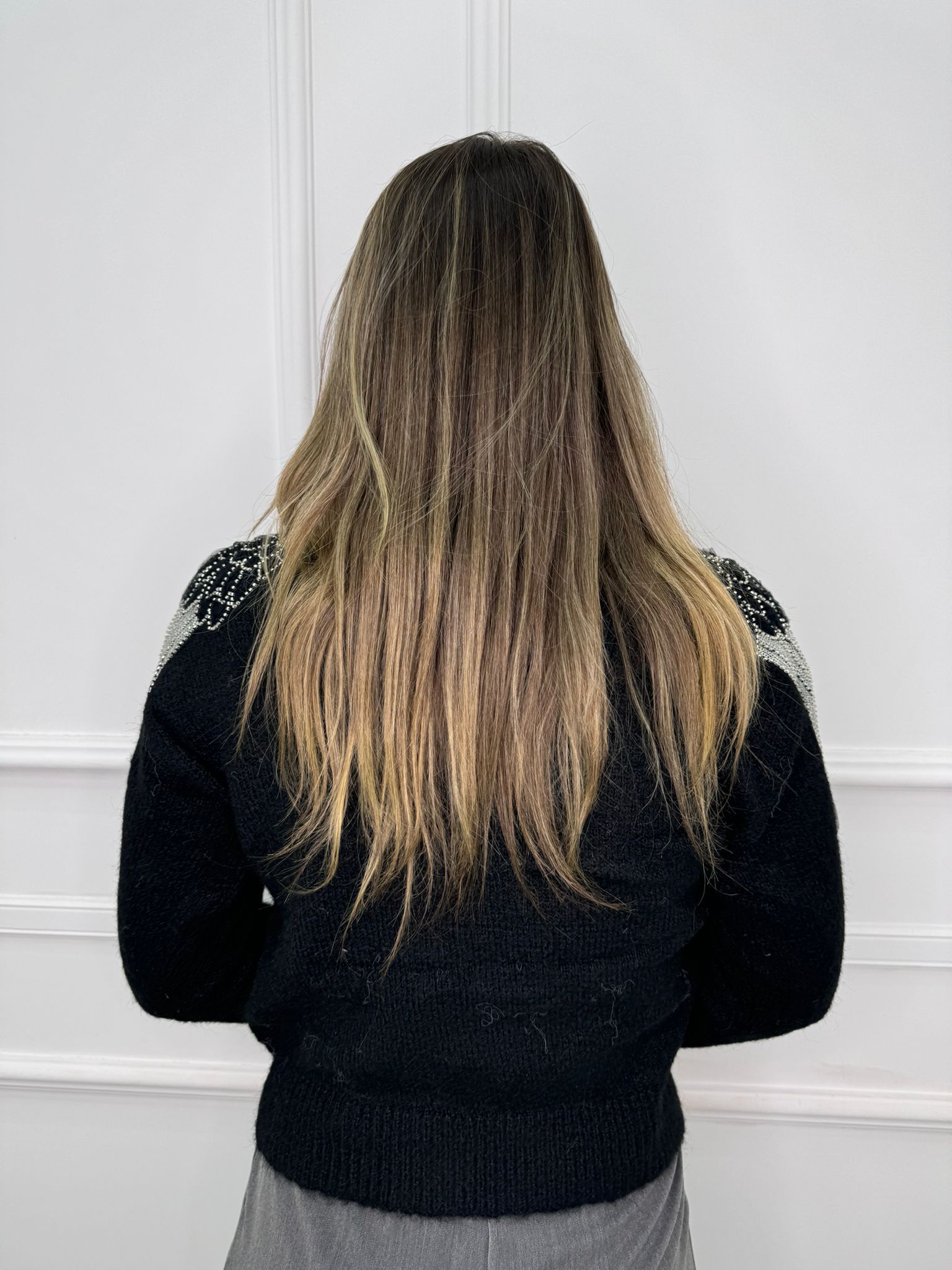 Maglione tinta unita con particolarità alle spalle