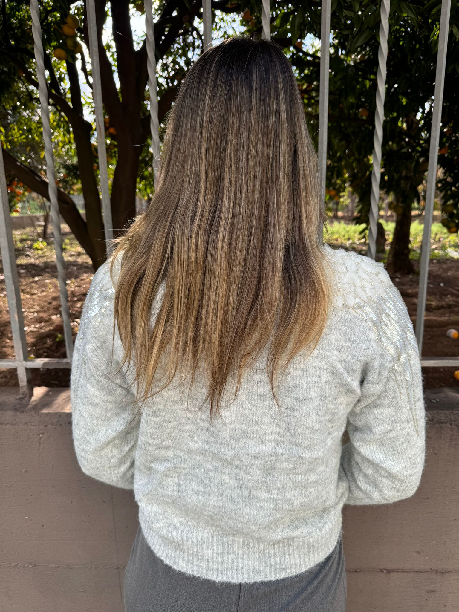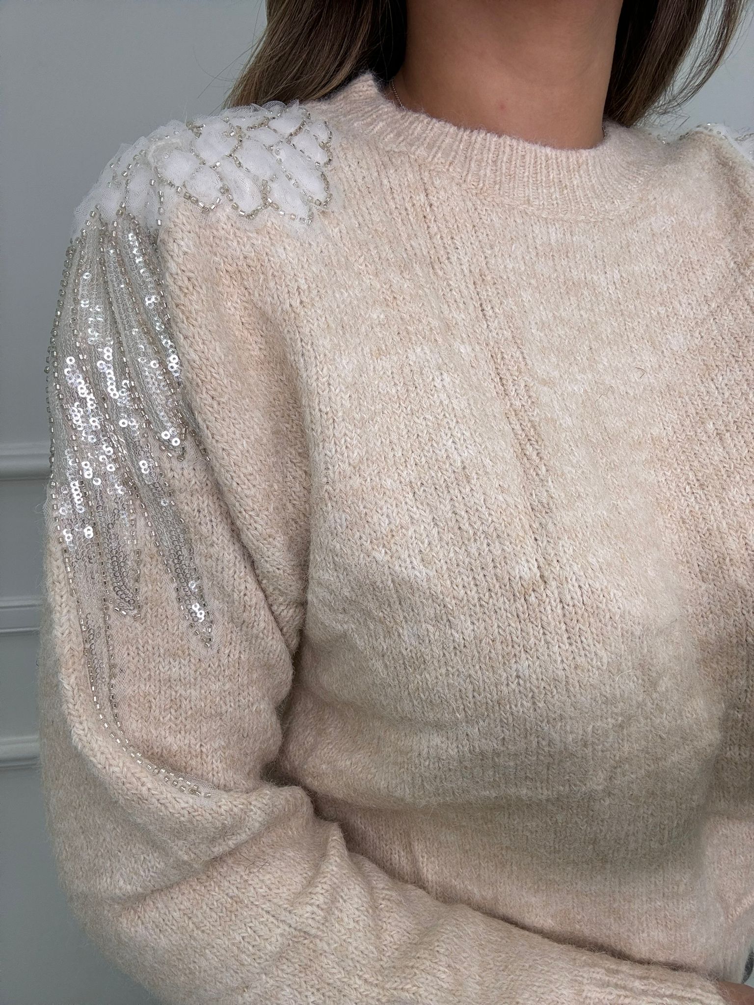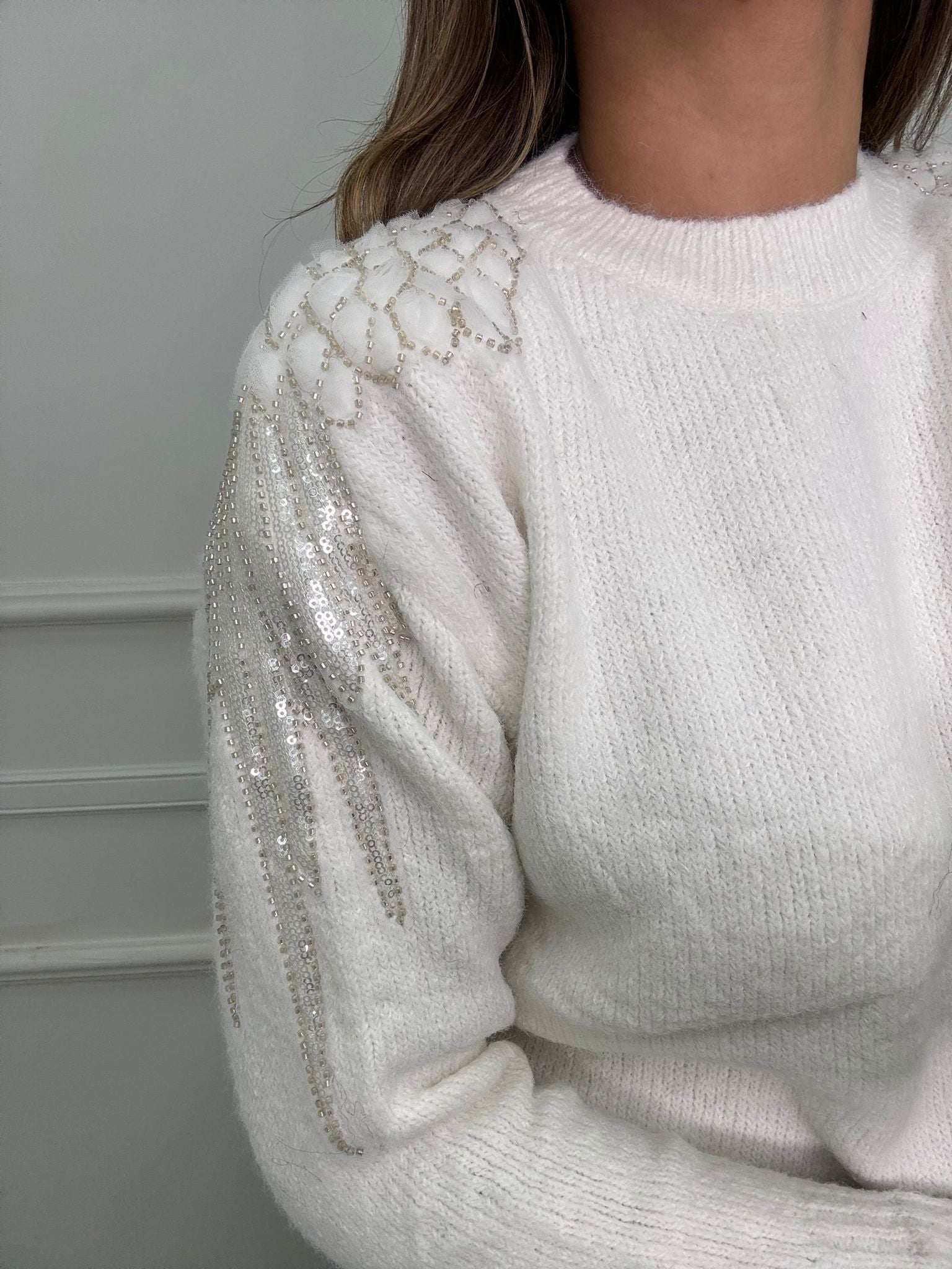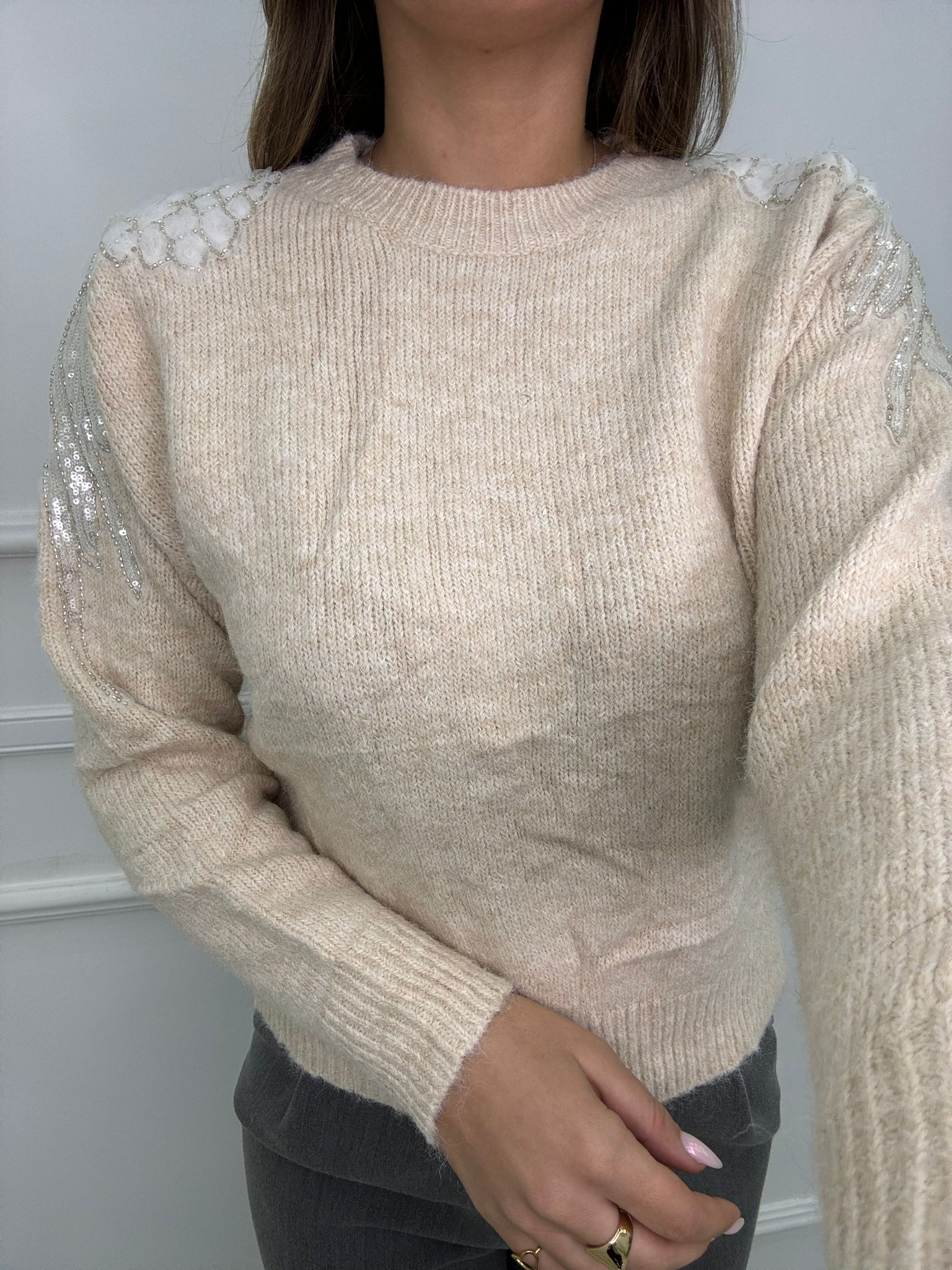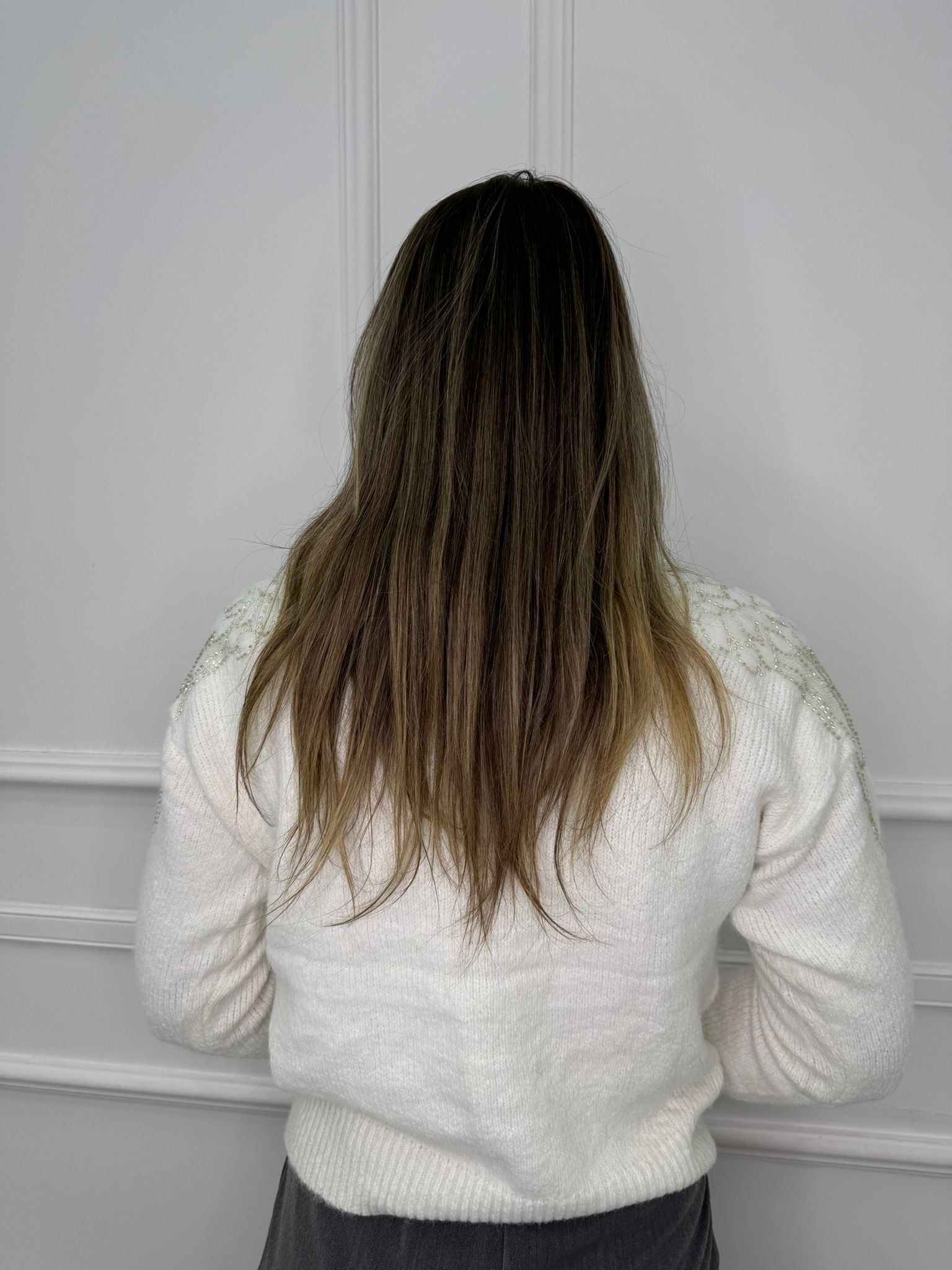 Maglione tinta unita con particolarità alle spalle