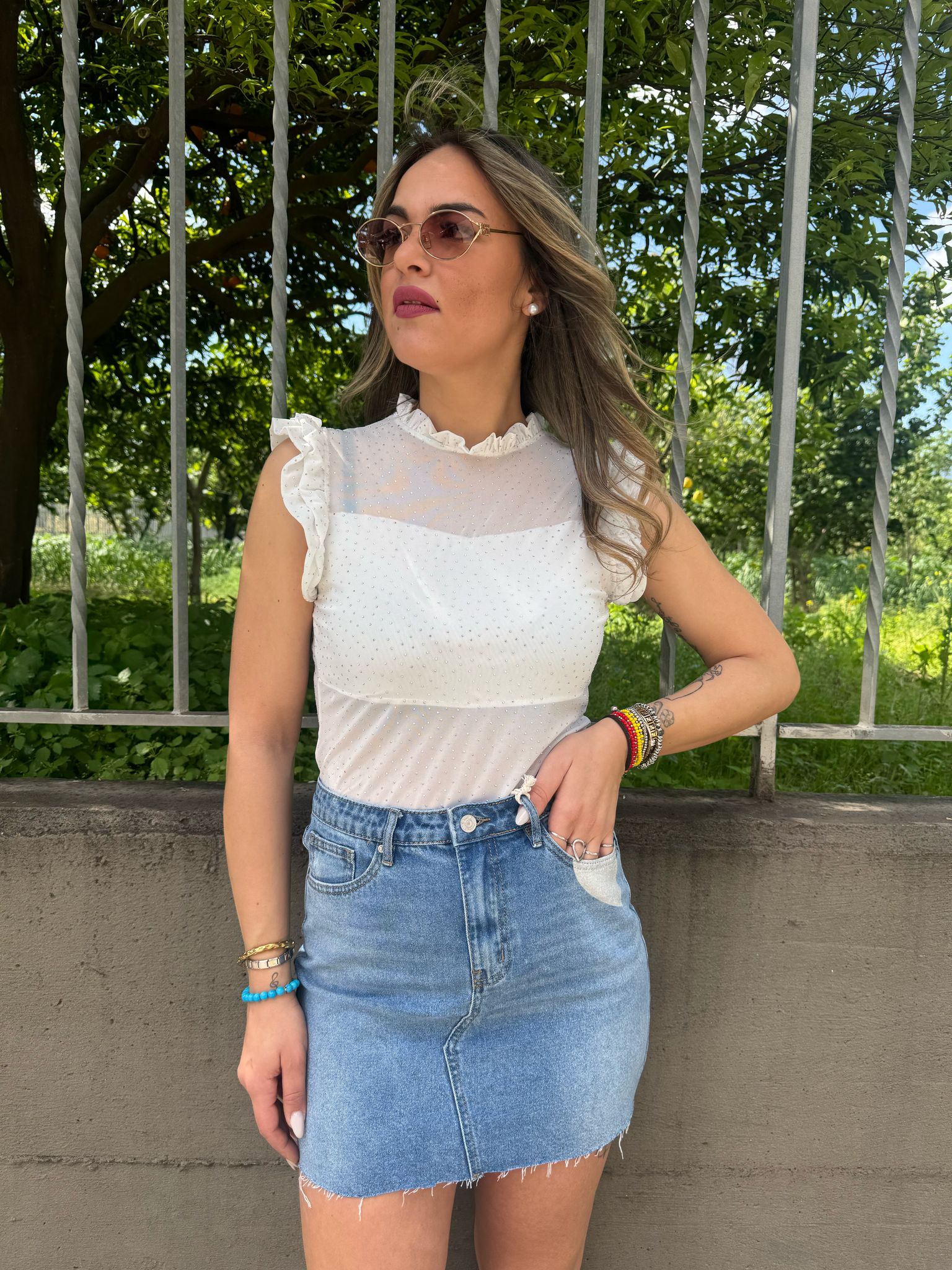 - La modella è una taglia 44, alta 1,79m e indossa la taglia "M"