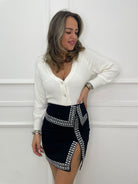- La modella è una taglia 44, alta 1,79m e indossa la taglia "M"