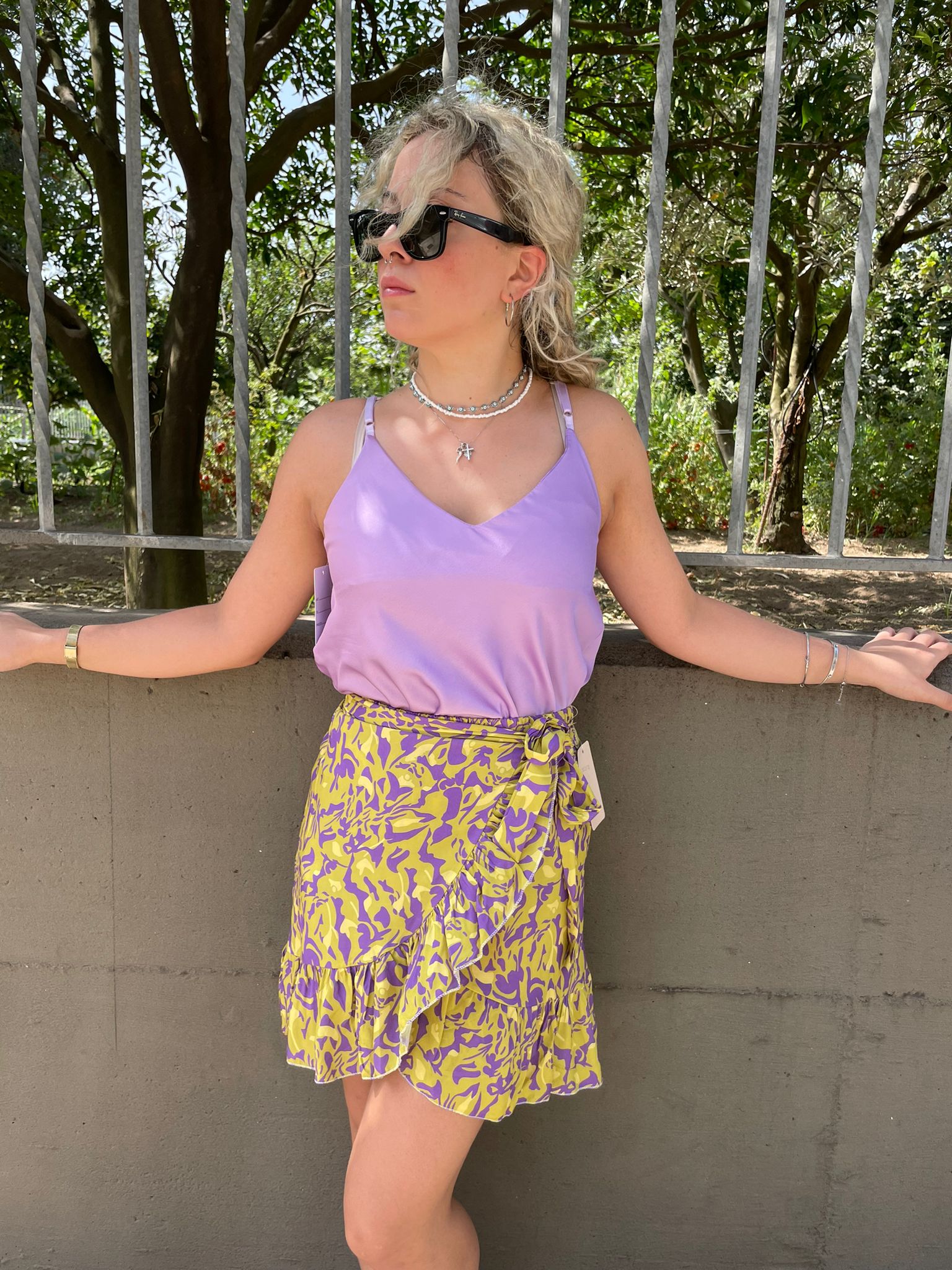 Mini gonna finto portafoglio fantasia astratta