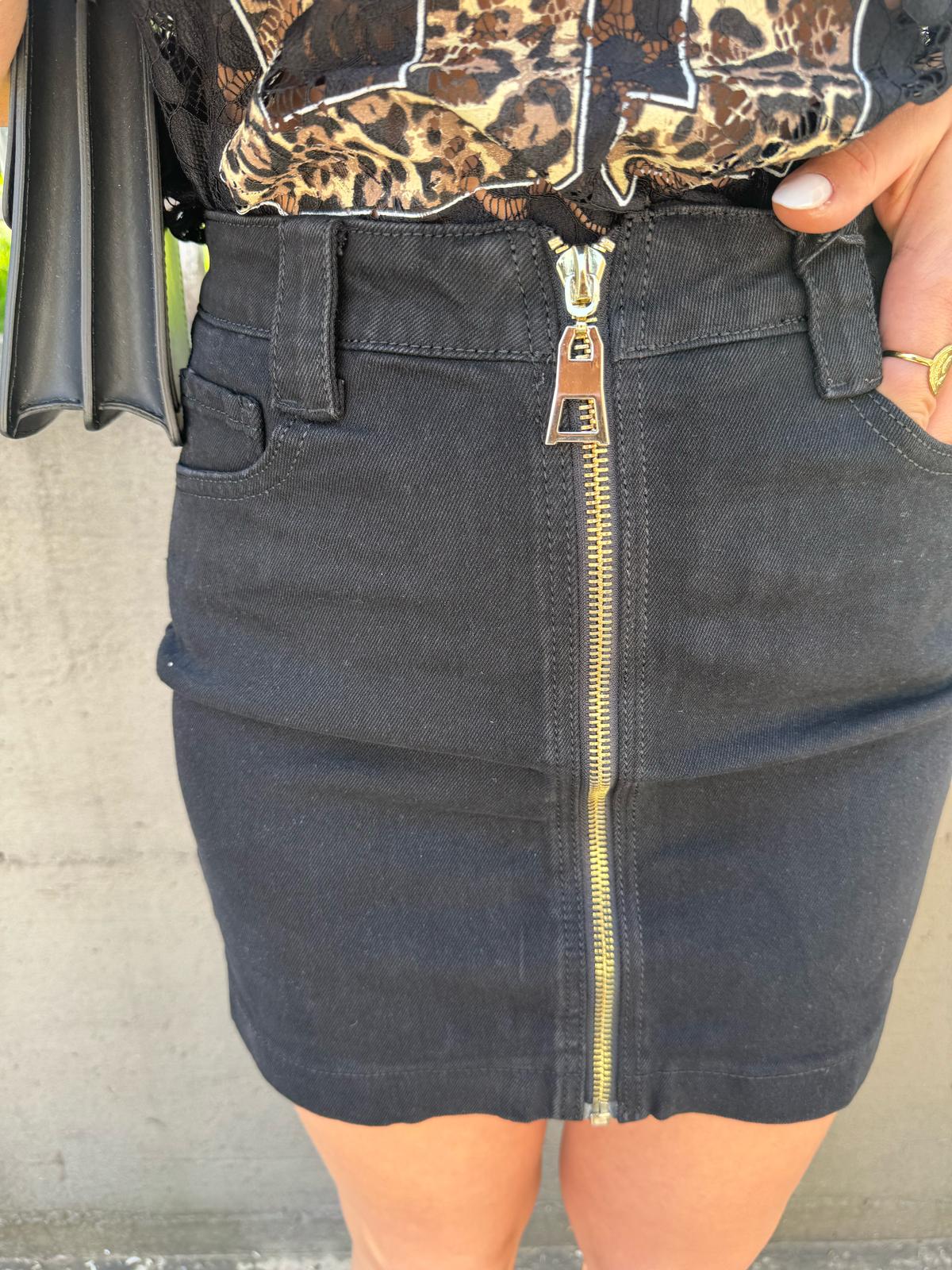 Mini gonna nera di jeans con zip