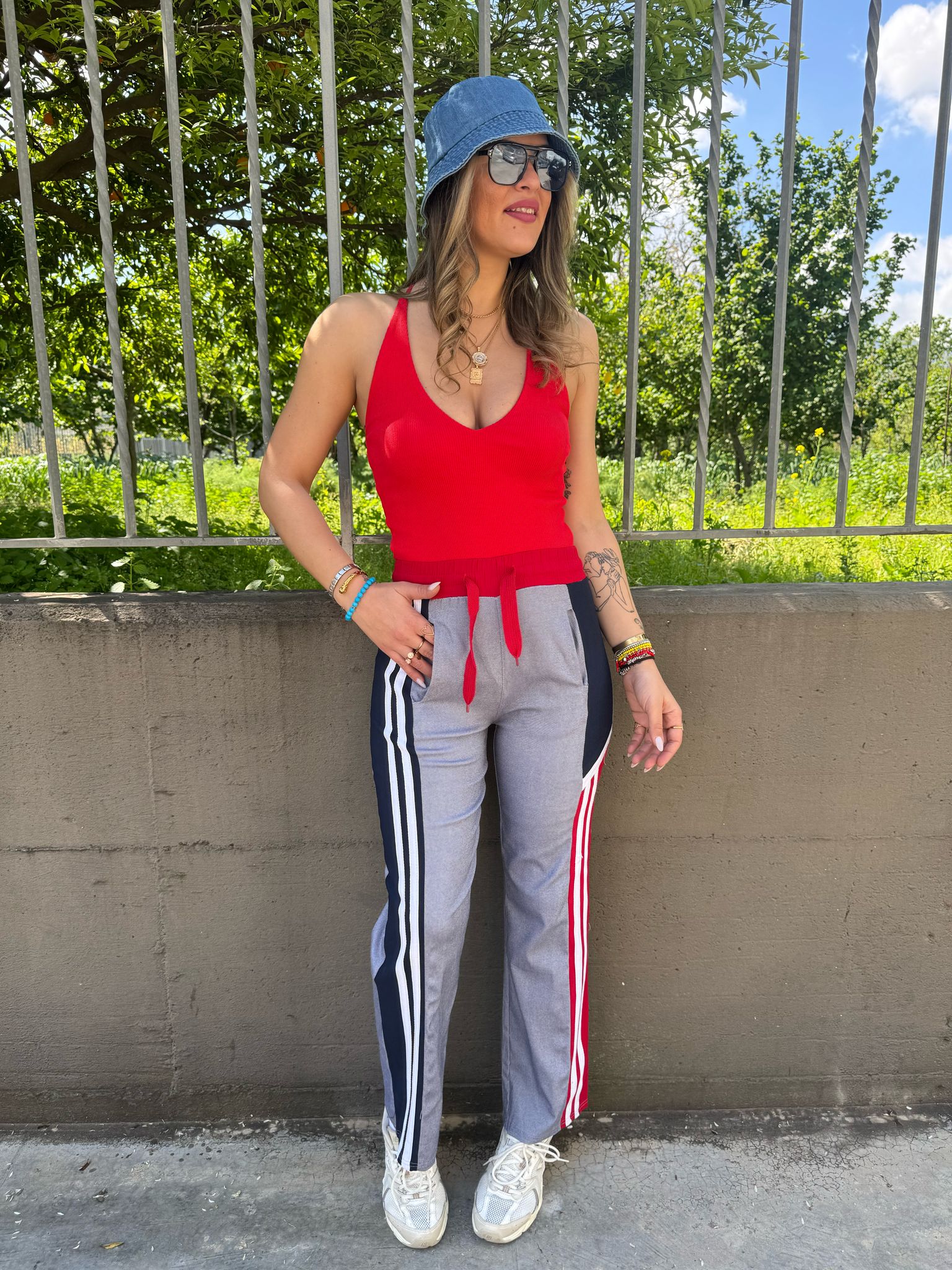 - La modella è una taglia 44, alta 1,79m e indossa la taglia "M/L"