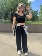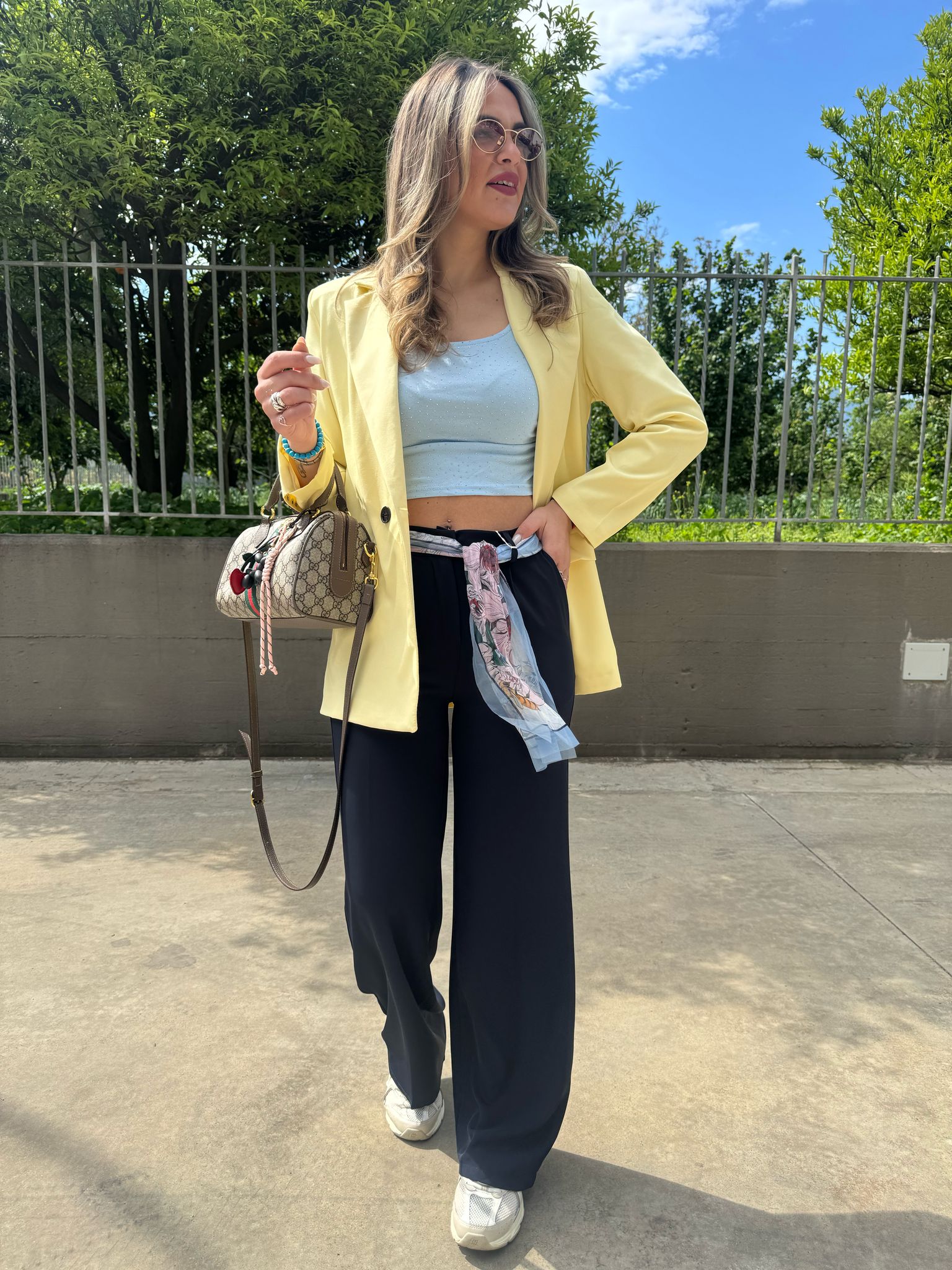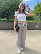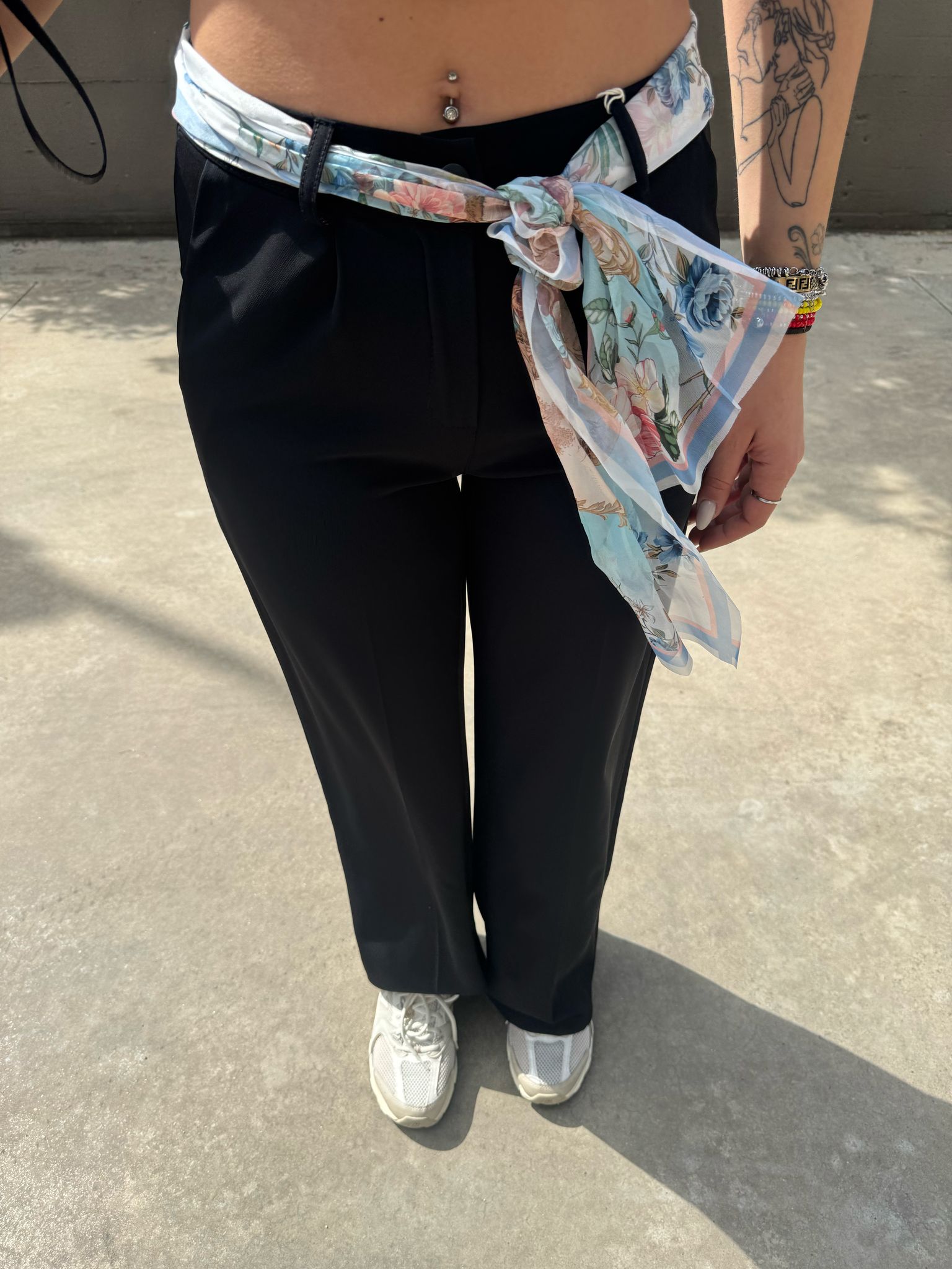 Pantalone palazzo con foulard in vita