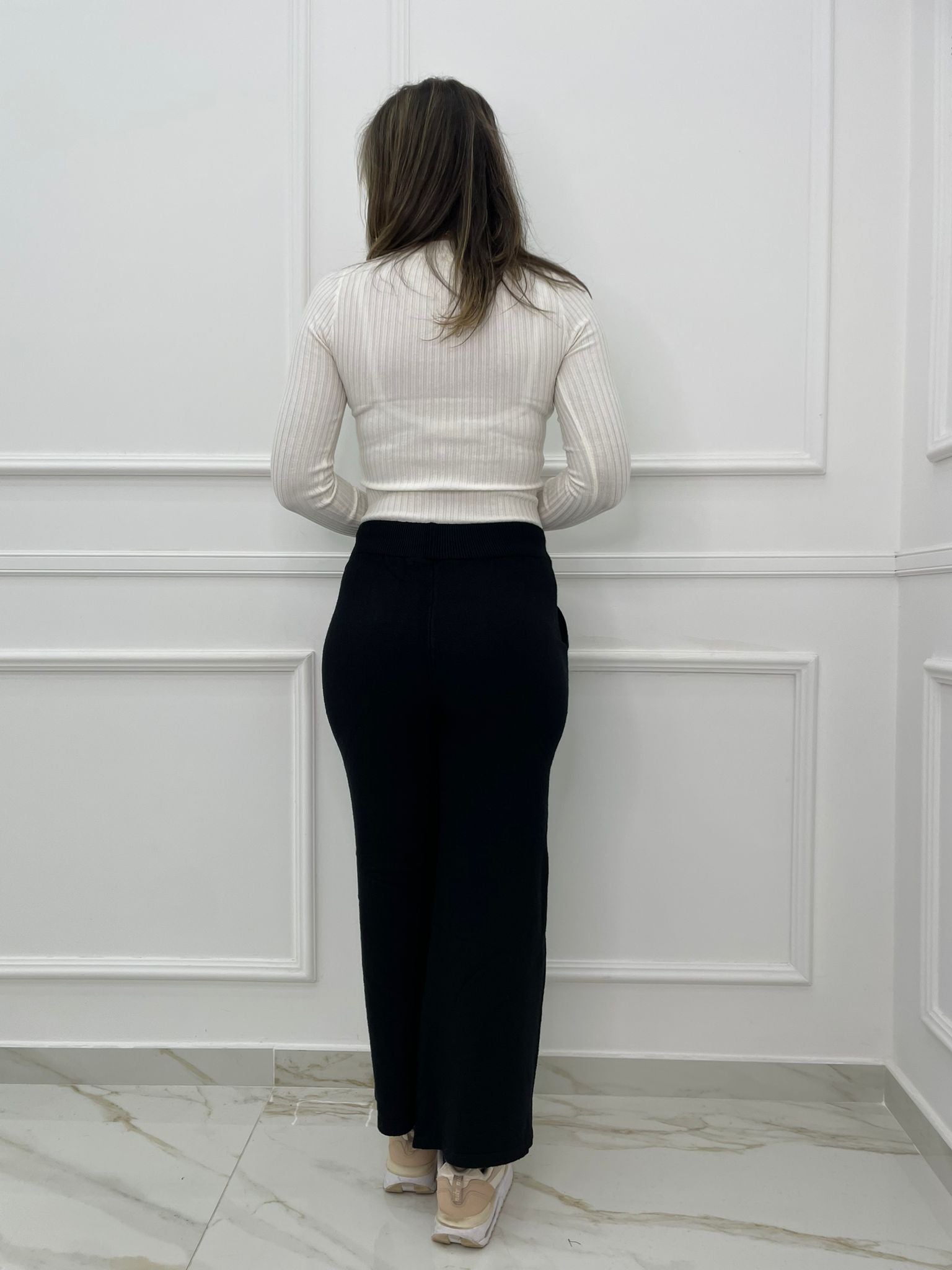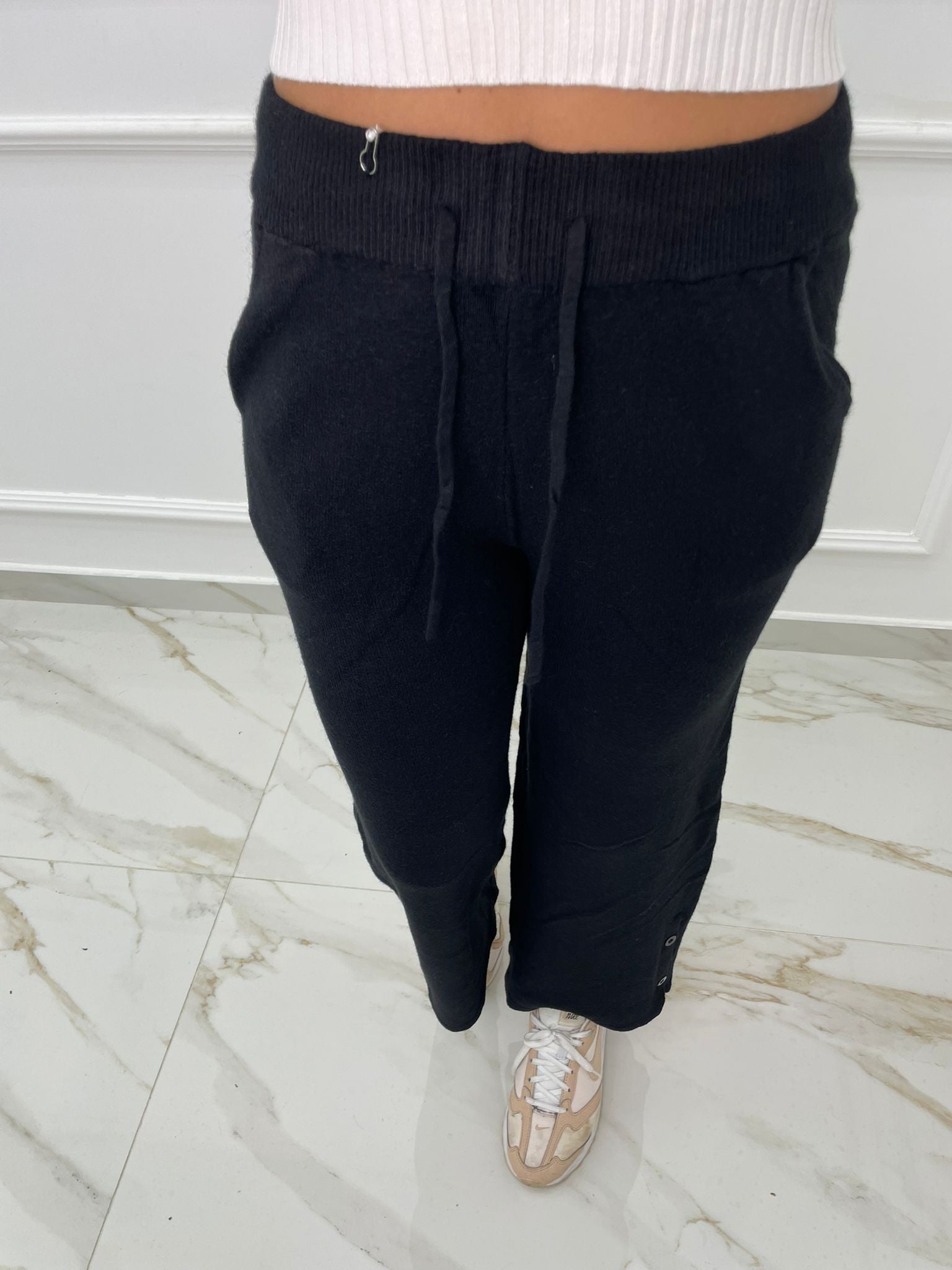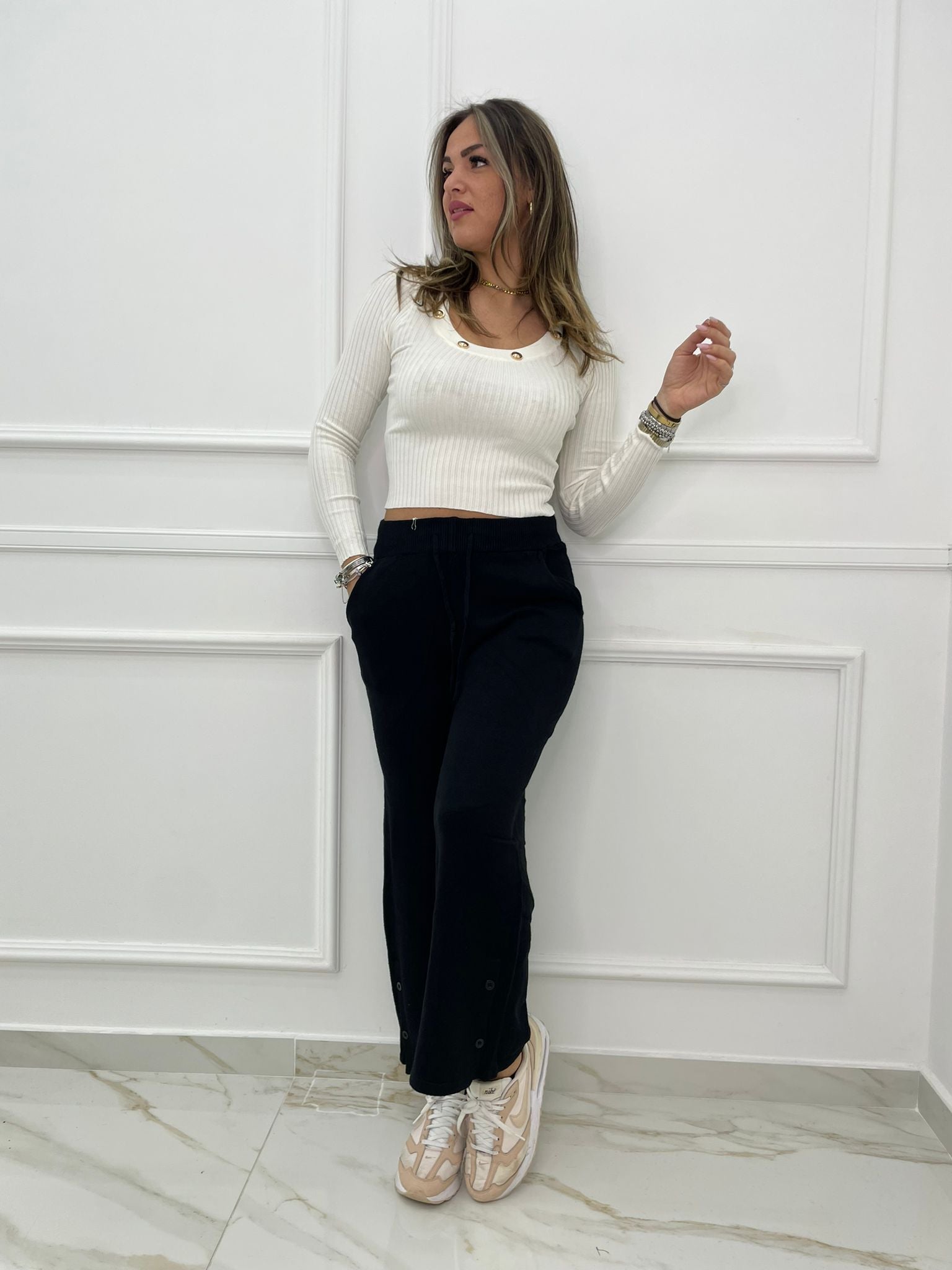 Pantalone palazzo in simil lana con bottoncini alle caviglie