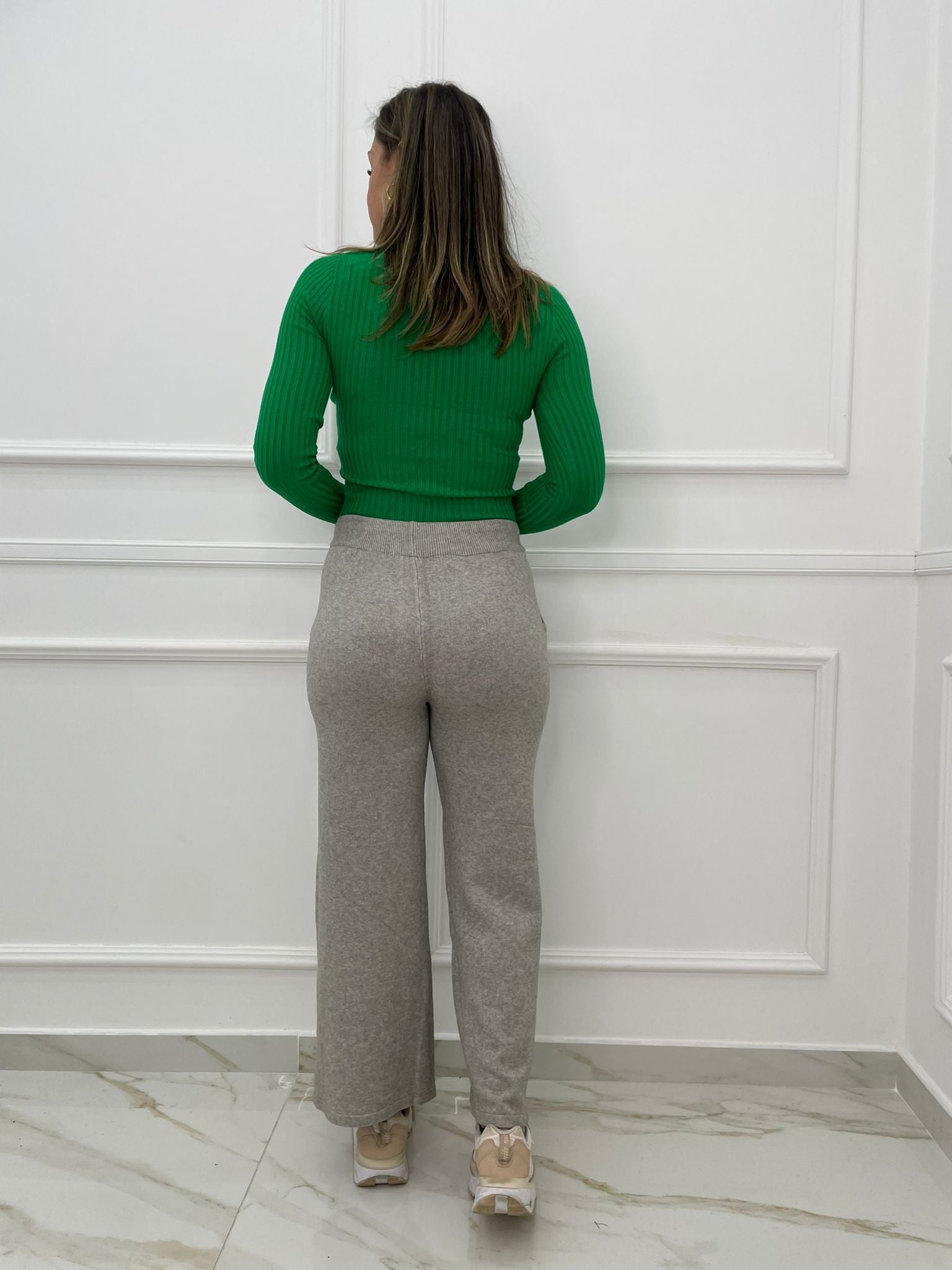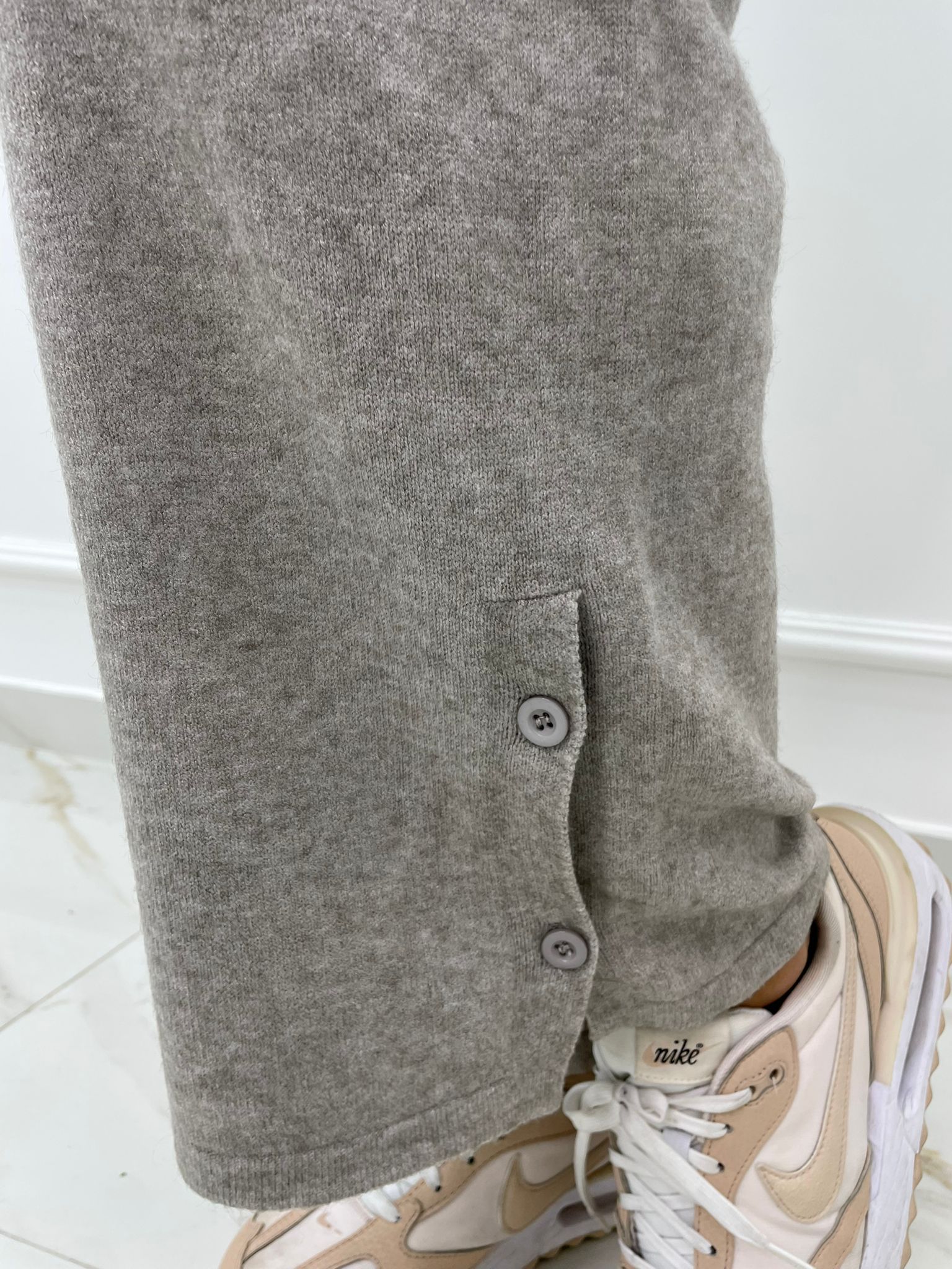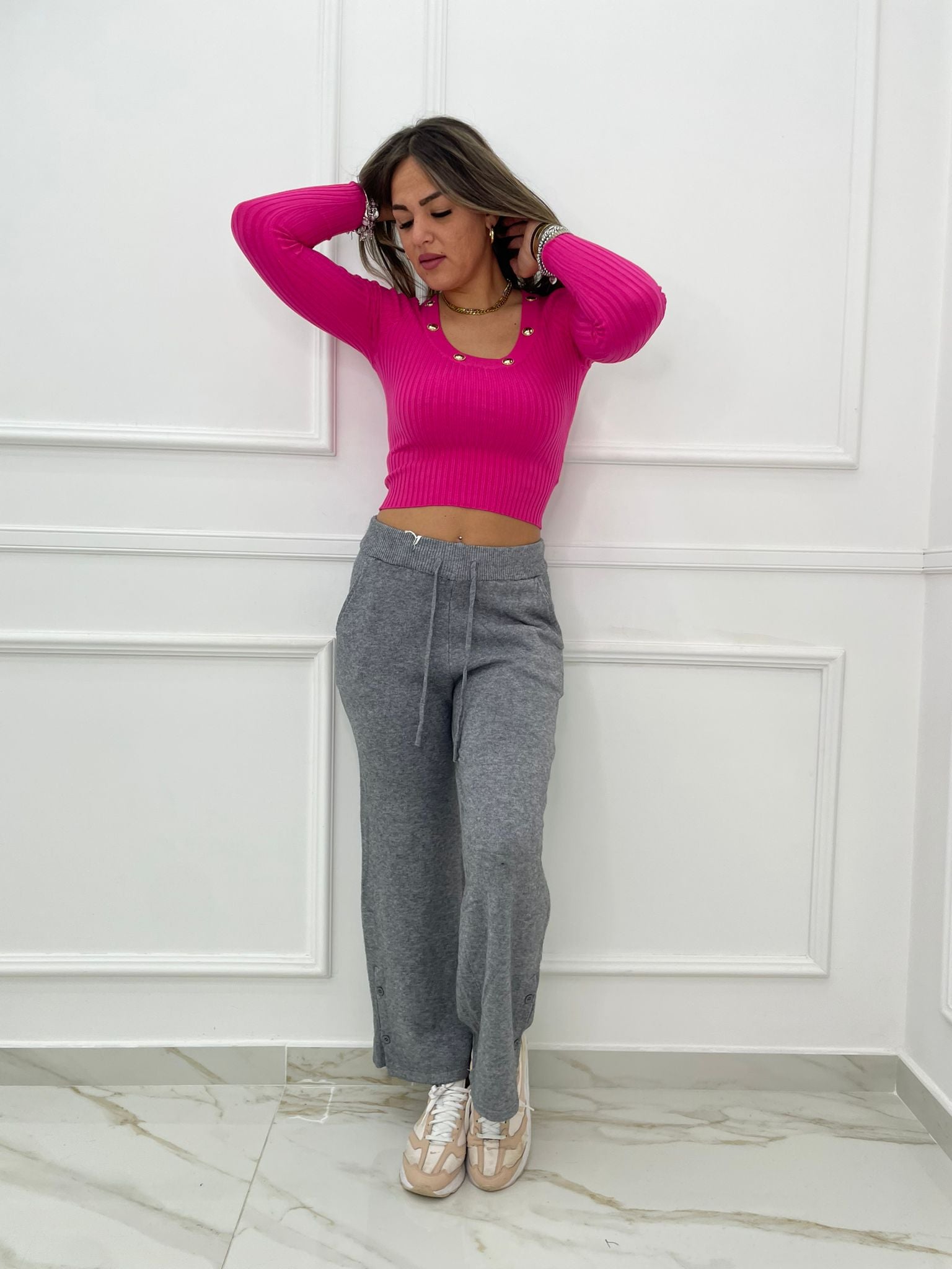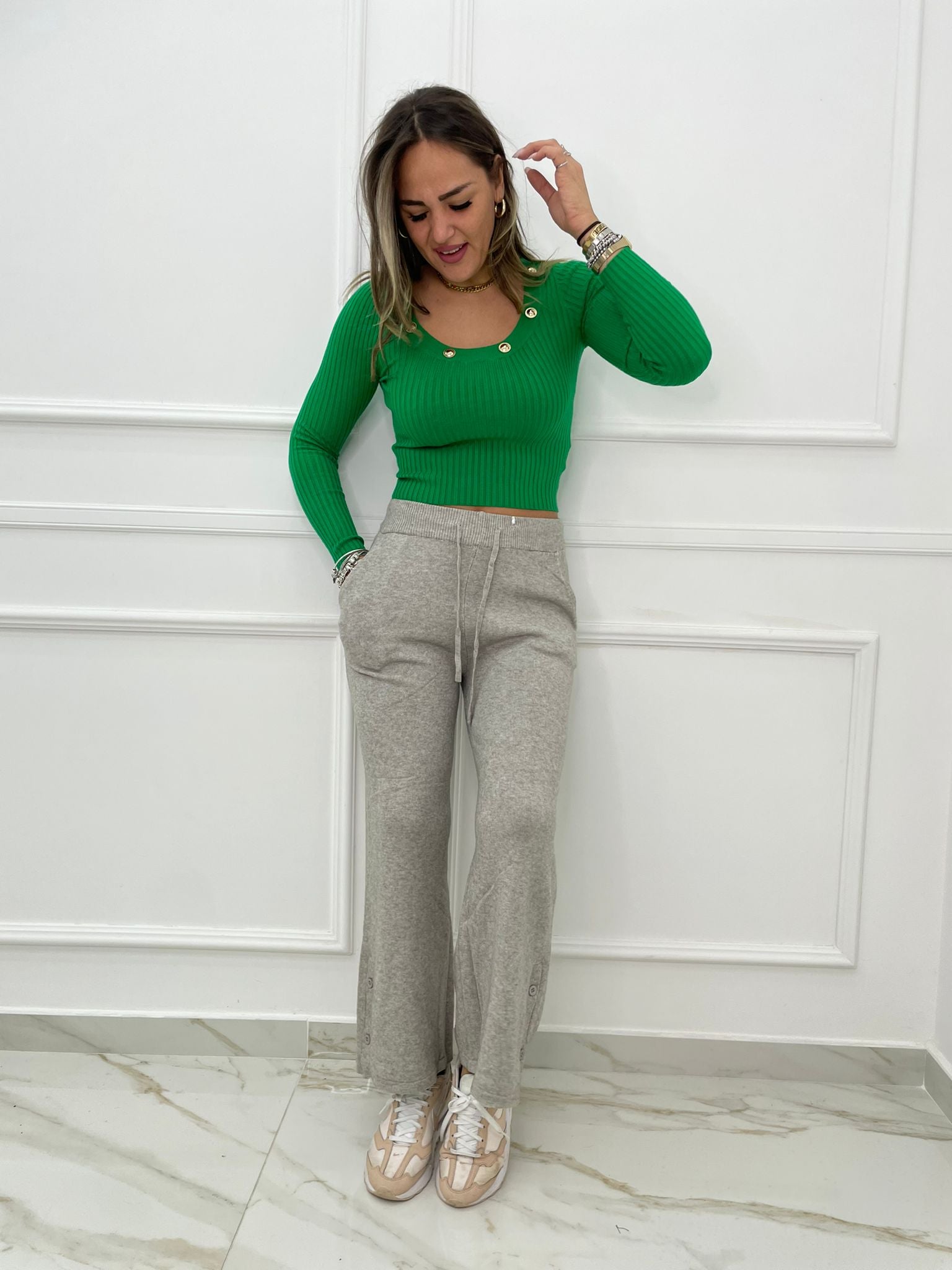 Pantalone palazzo in simil lana con bottoncini alle caviglie