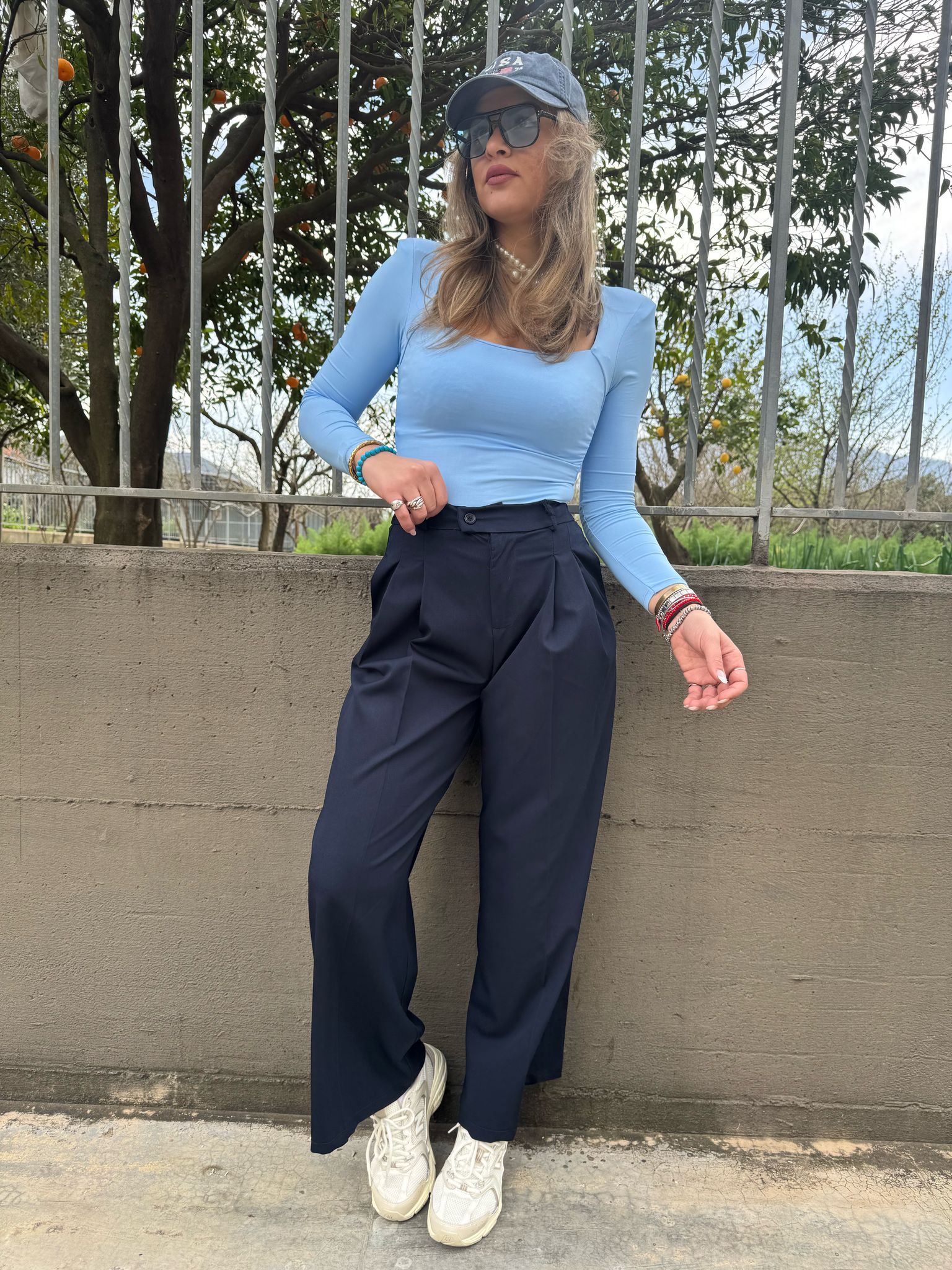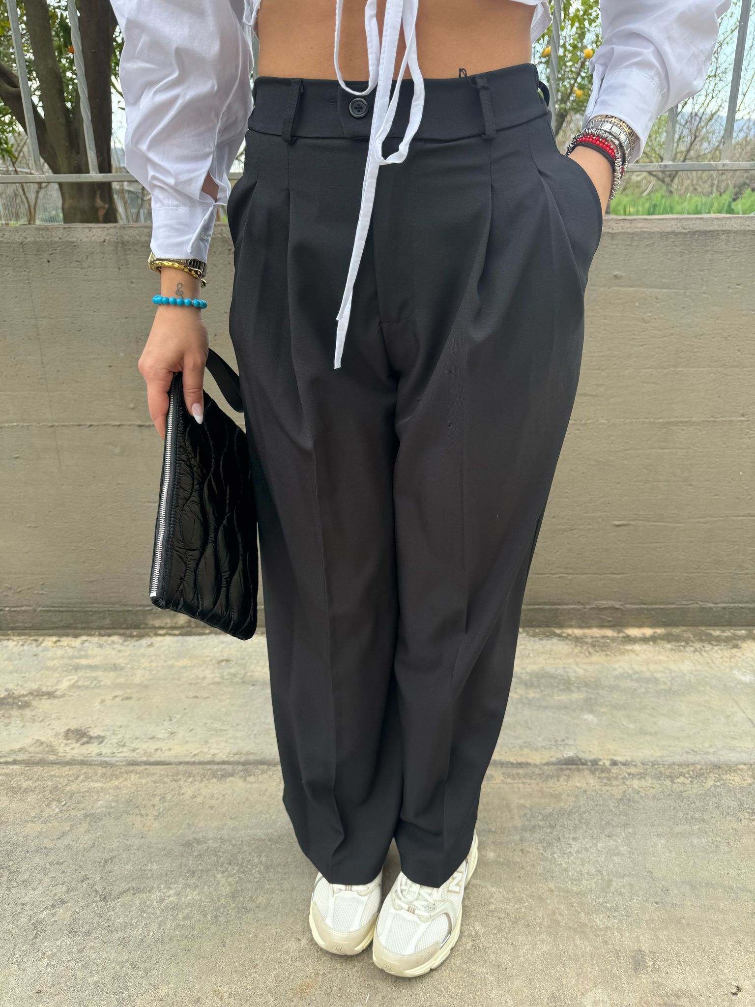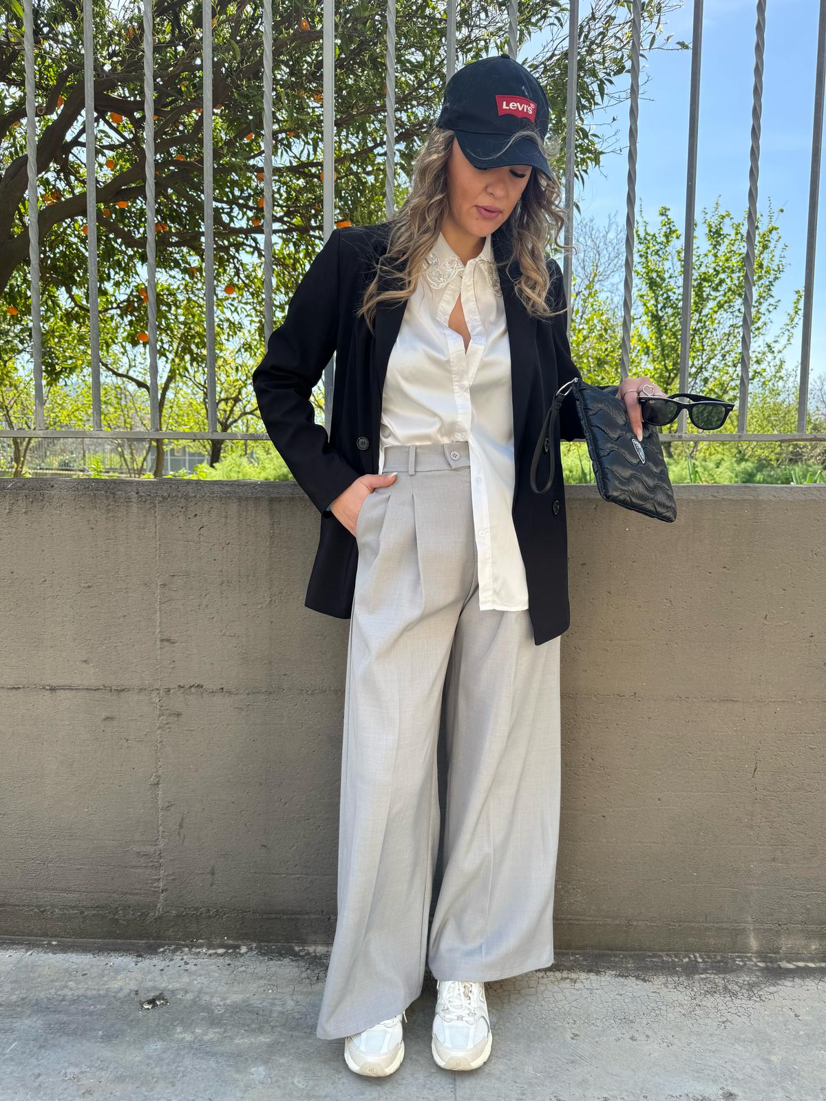 Pantalone palazzo tinta unita con pinces