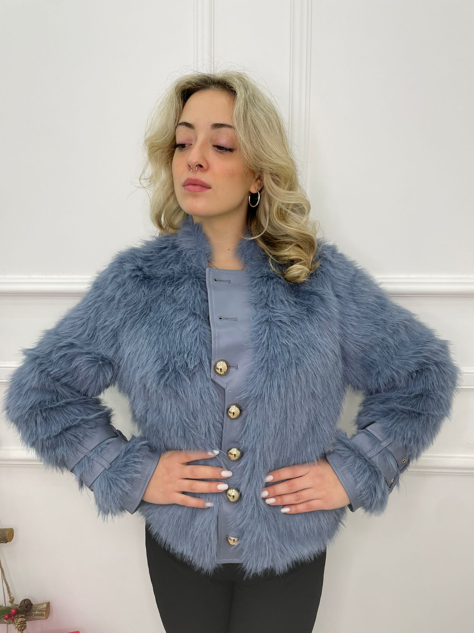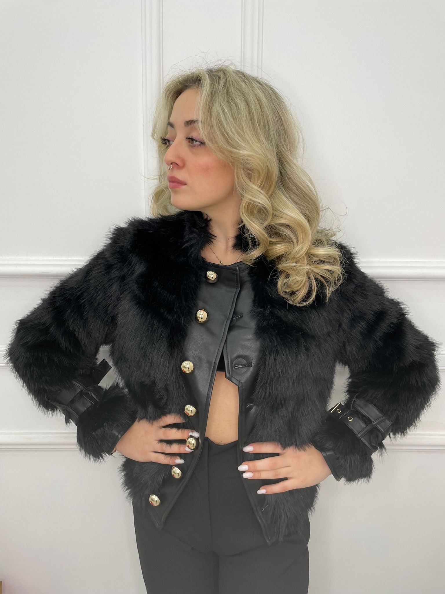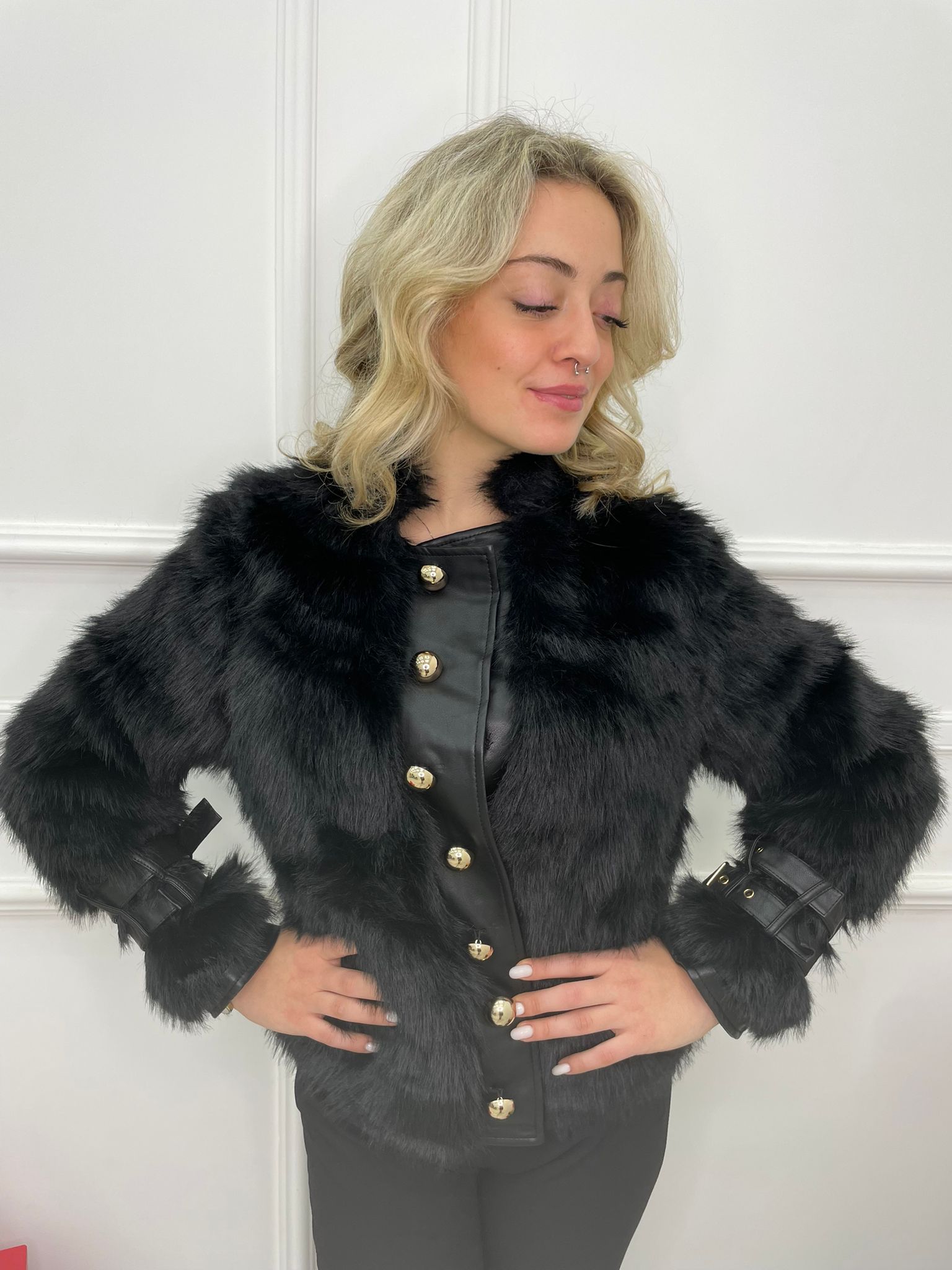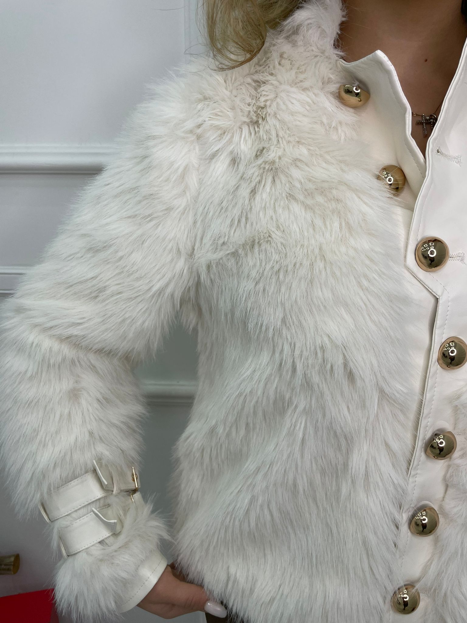 Pelliccia eco con bottoni grandi oro