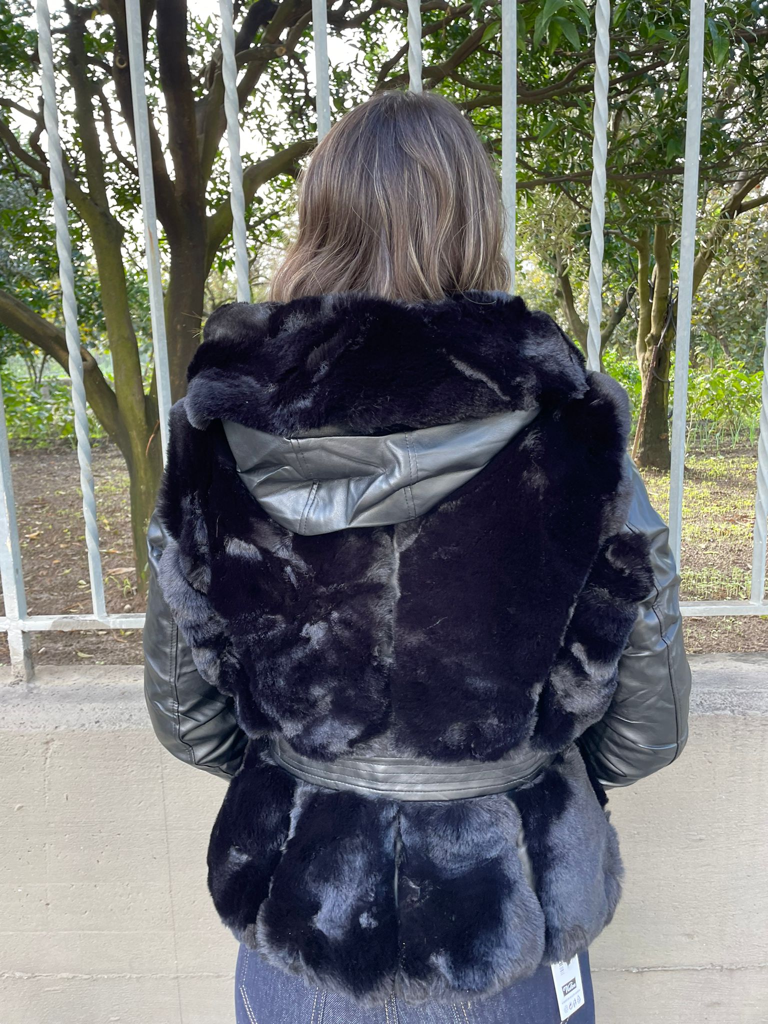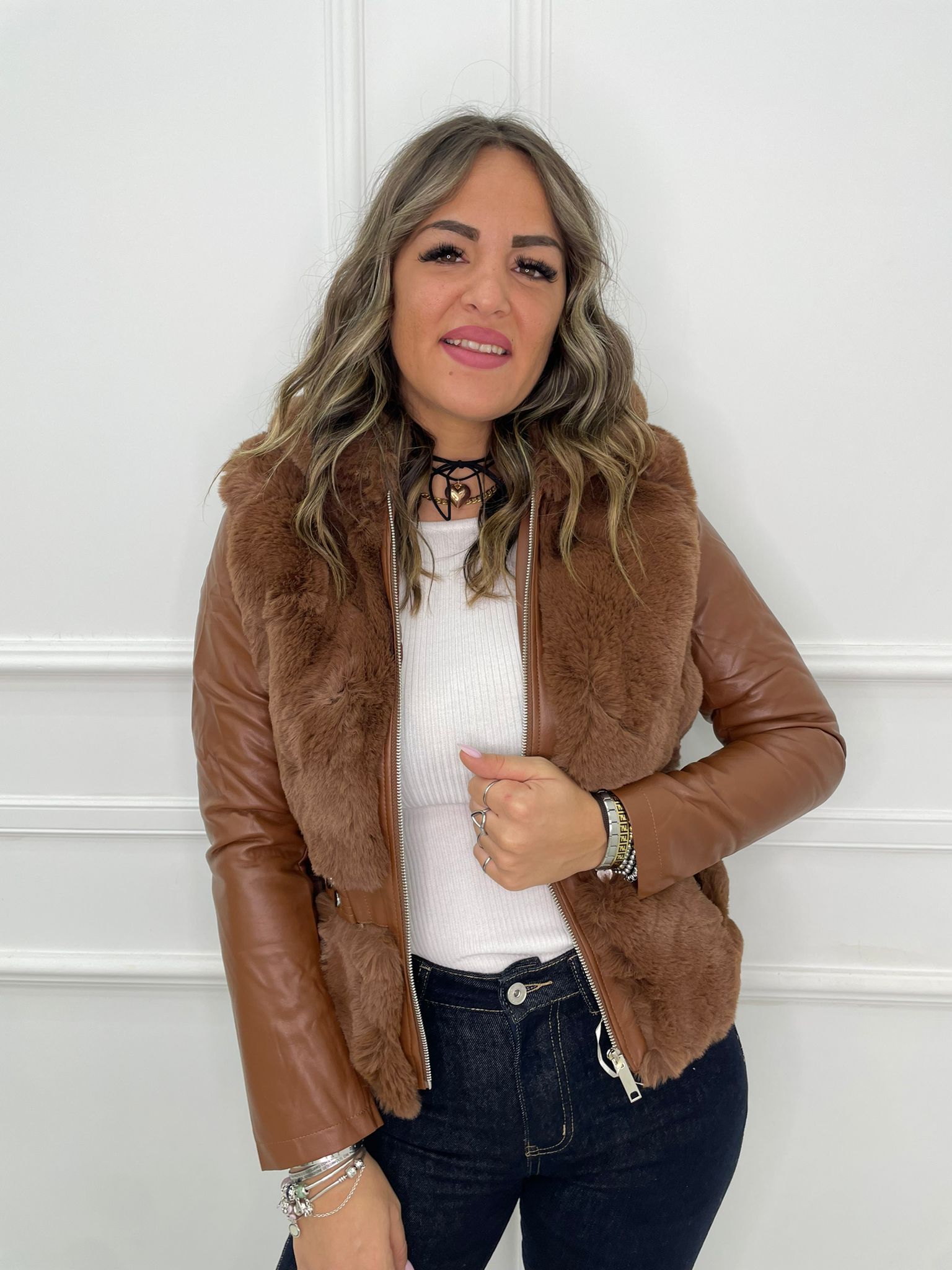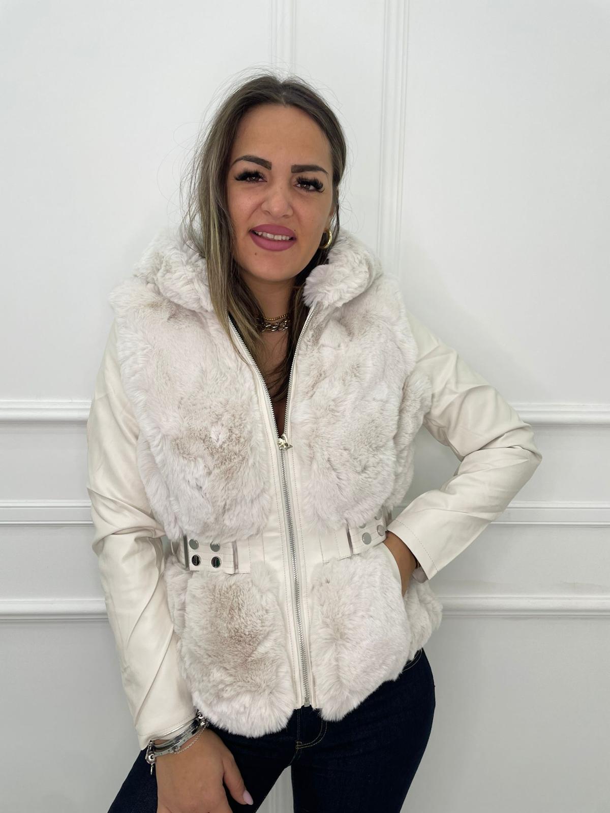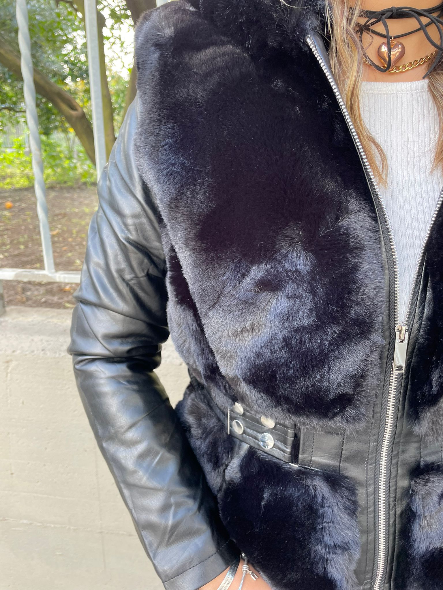 Pelliccia eco con maniche eco pelle e fibbie laterali