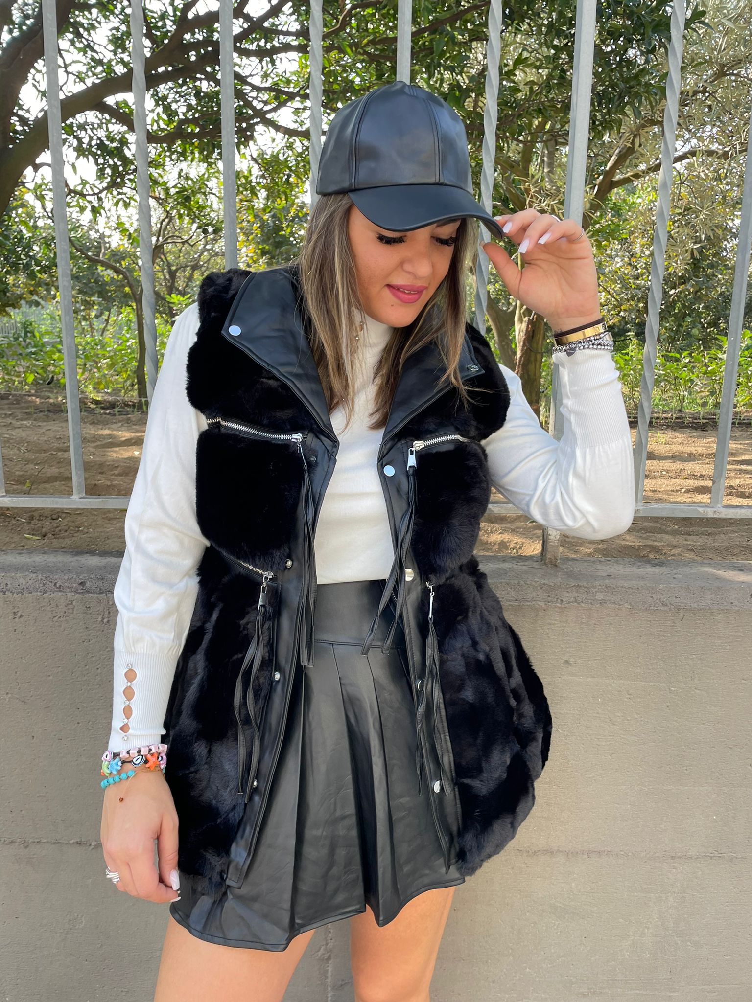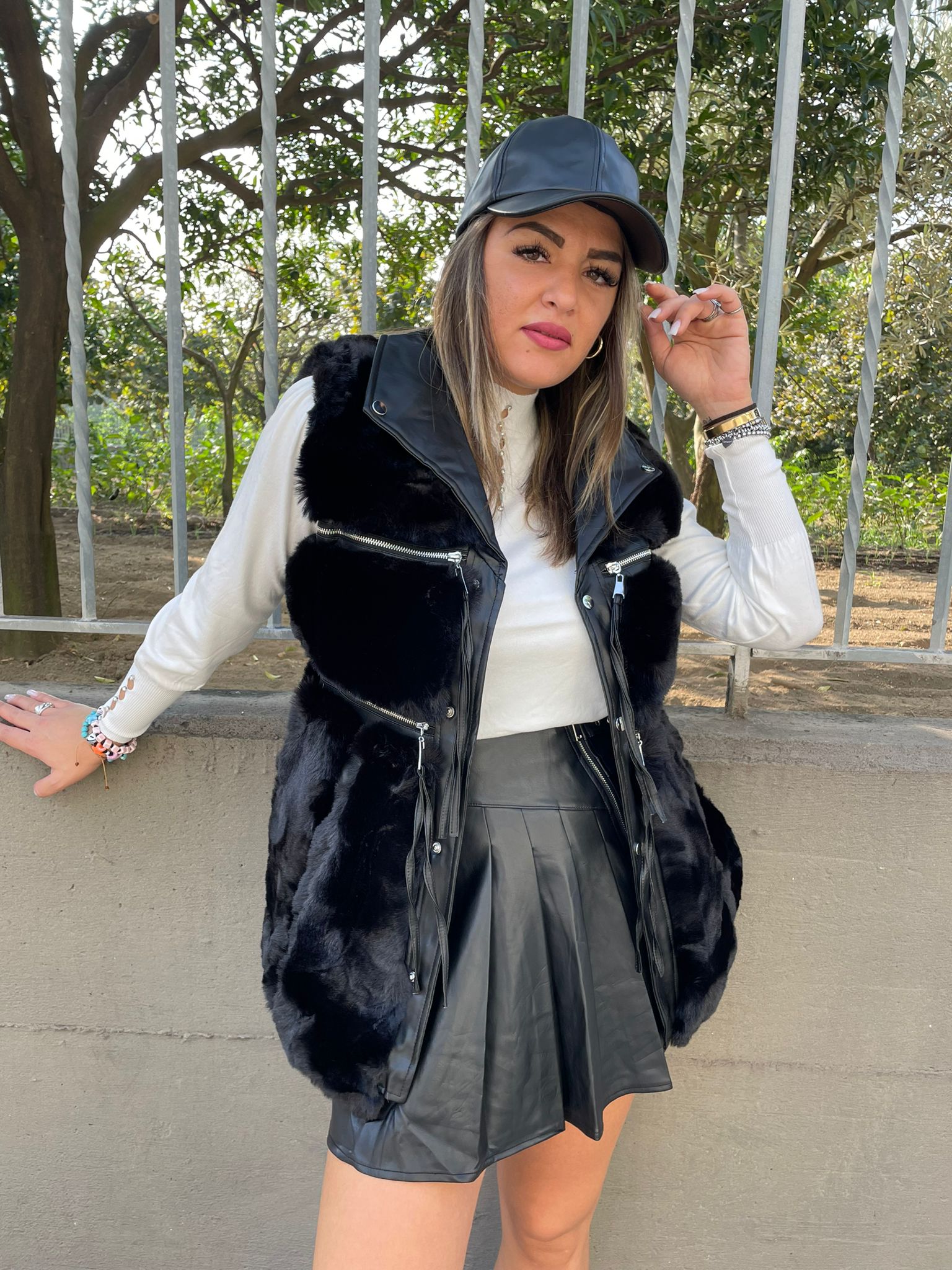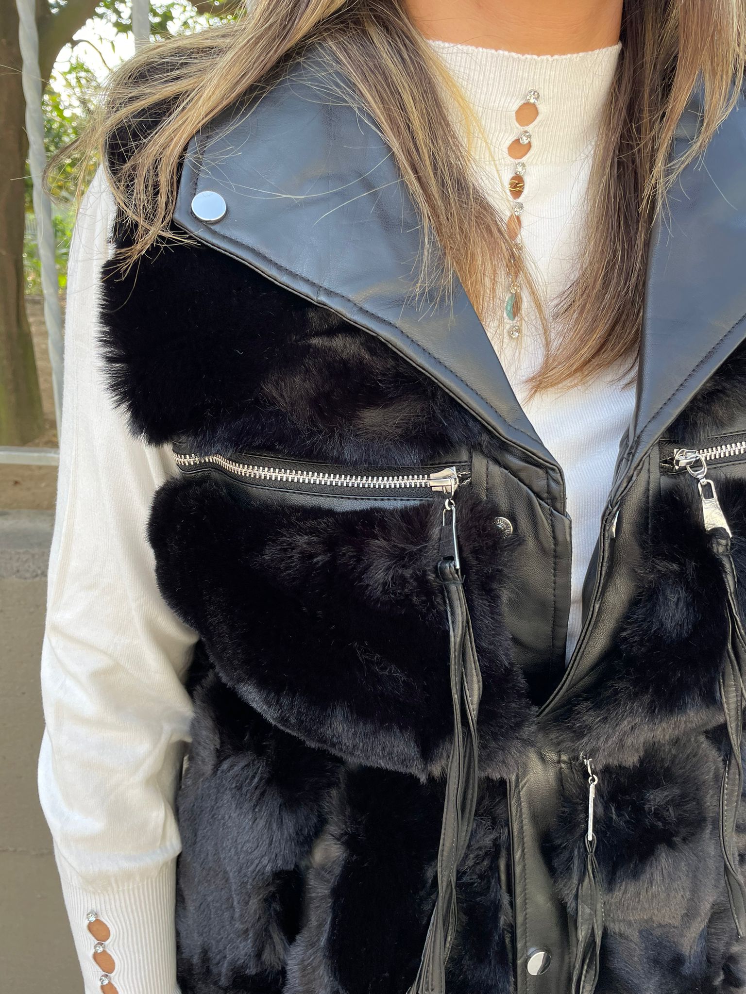 Pelliccia eco nera smanicata