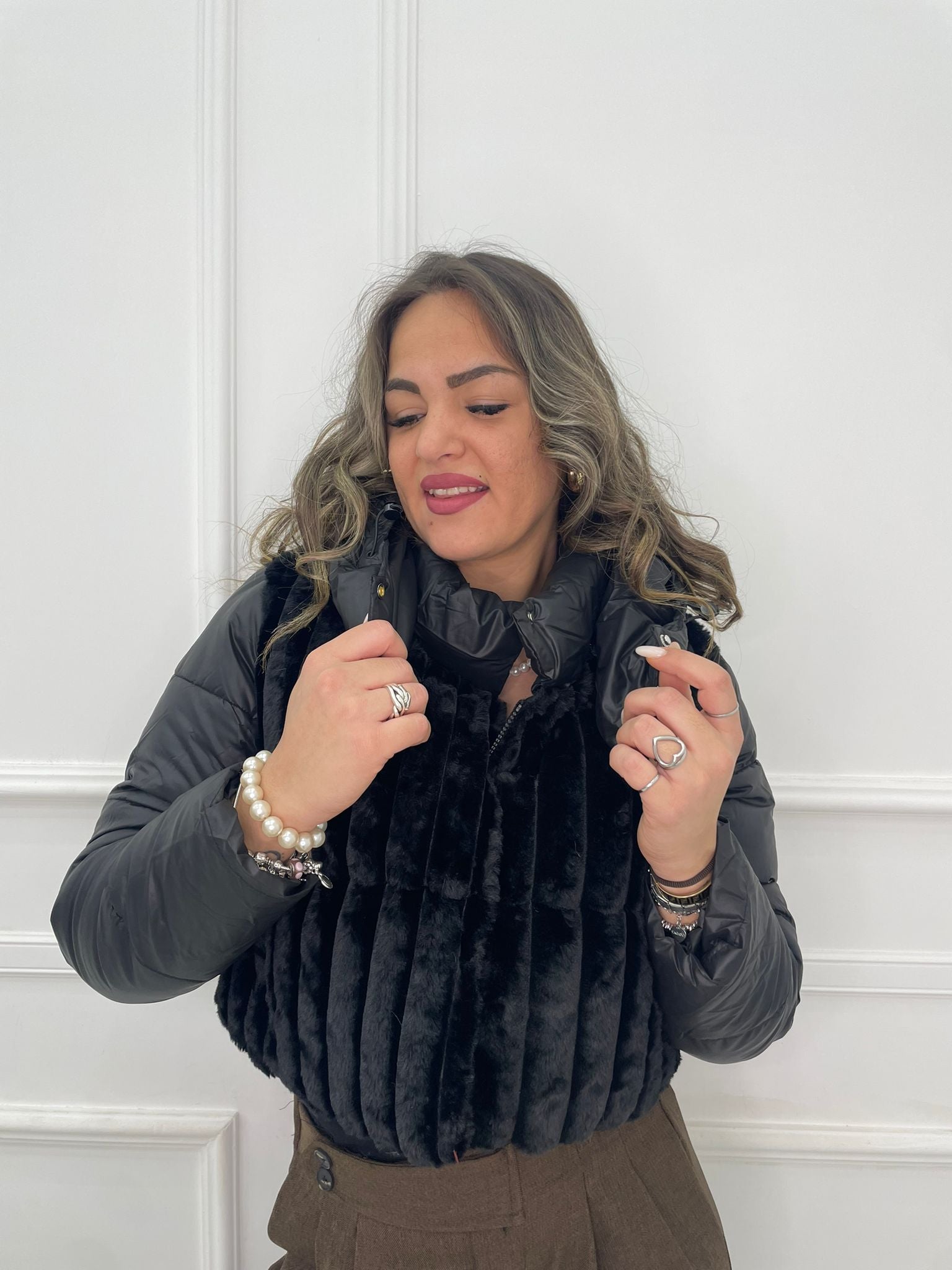- La modella è una taglia 44, alta 1,79m e indossa la taglia "M/L"