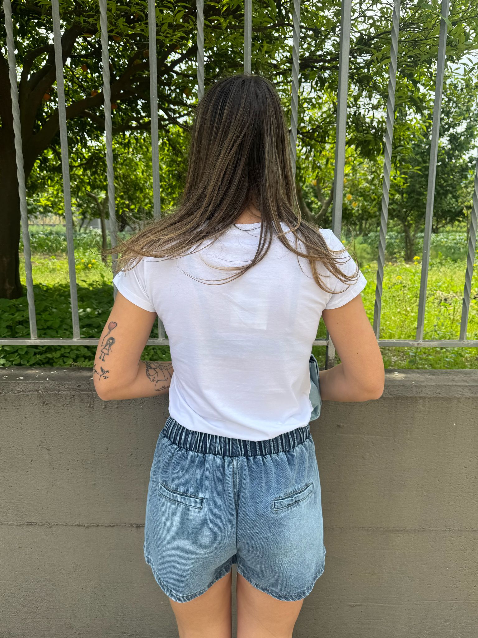Shorts di jeans a farfalla con elastico in vita