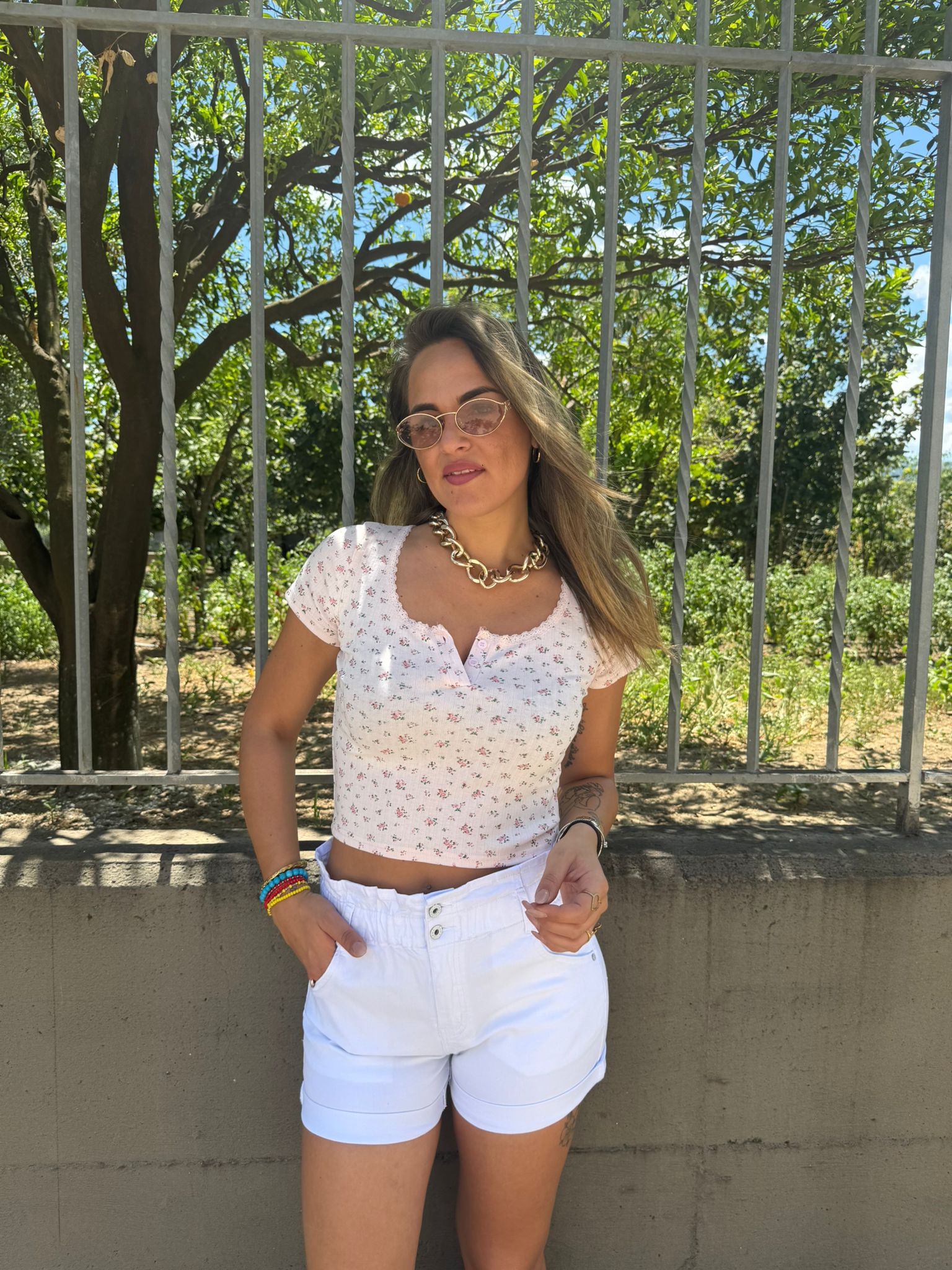 Shorts di jeans bianco modello caramella