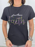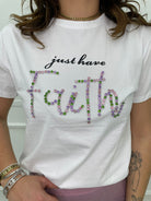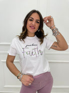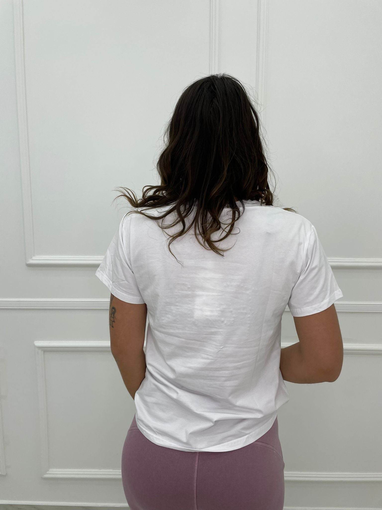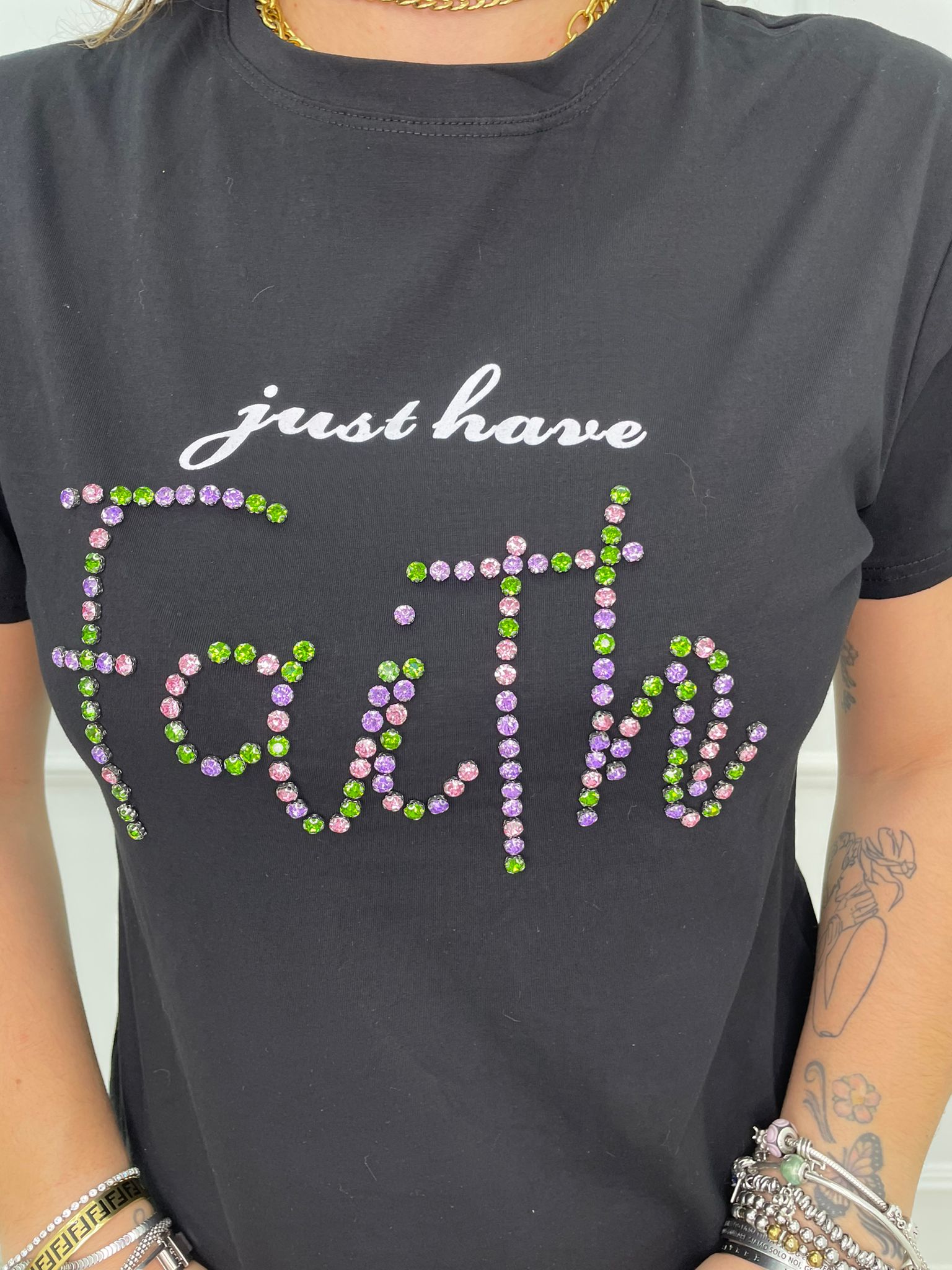 T-shirt con scritta swarovski colorati