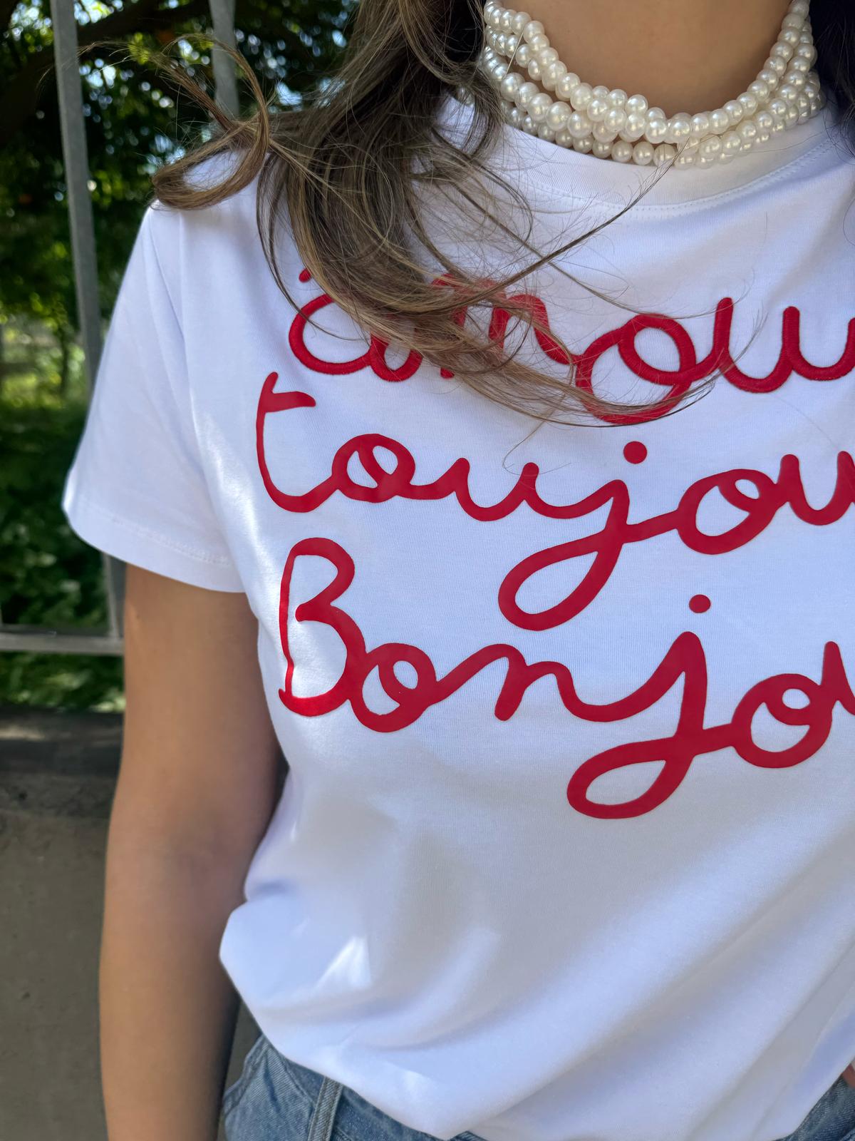T-shirt tinta unita "Amour bonjour"