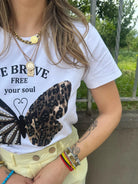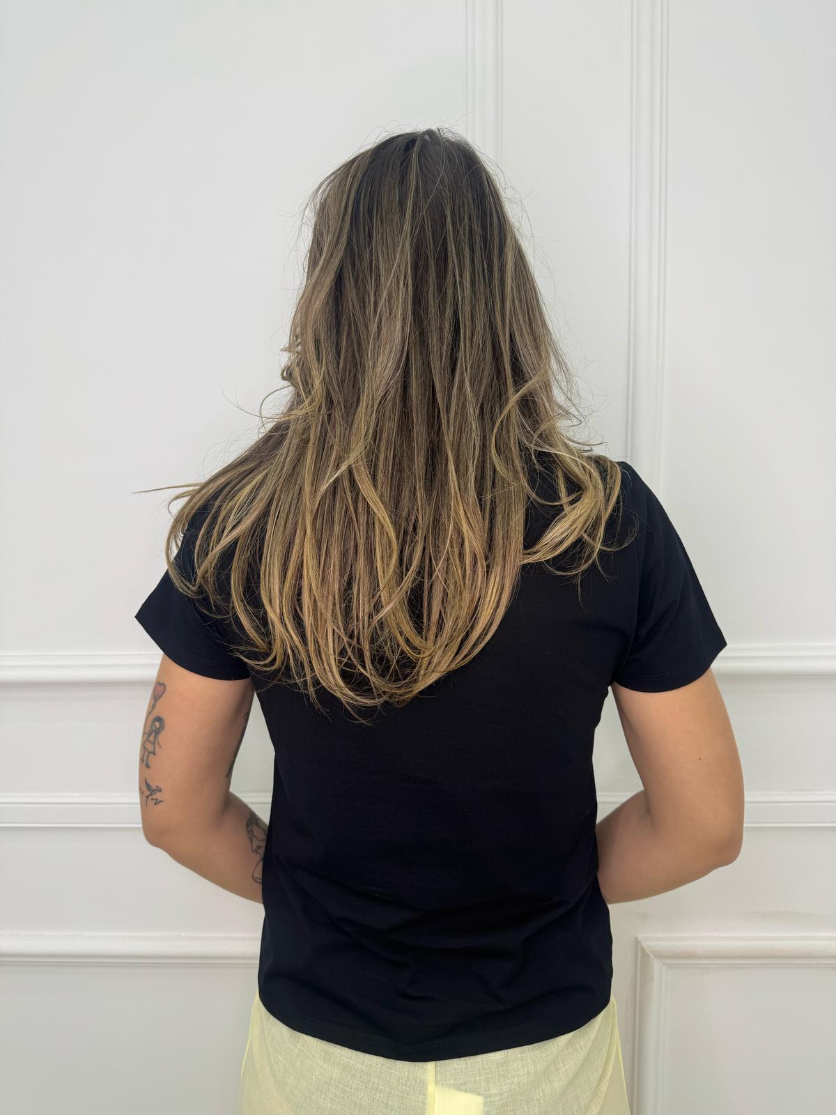 T-shirt tinta unita con farfalla