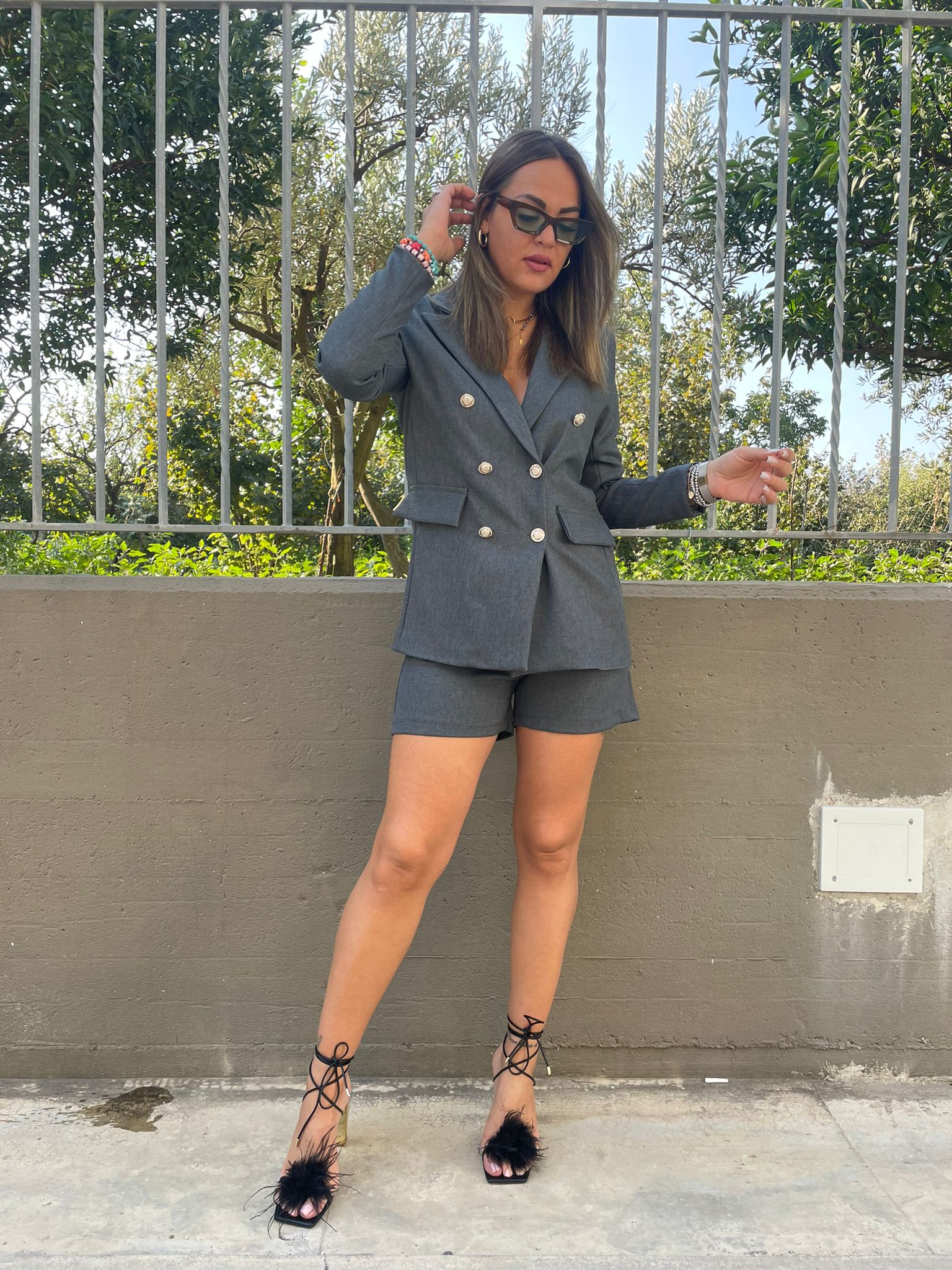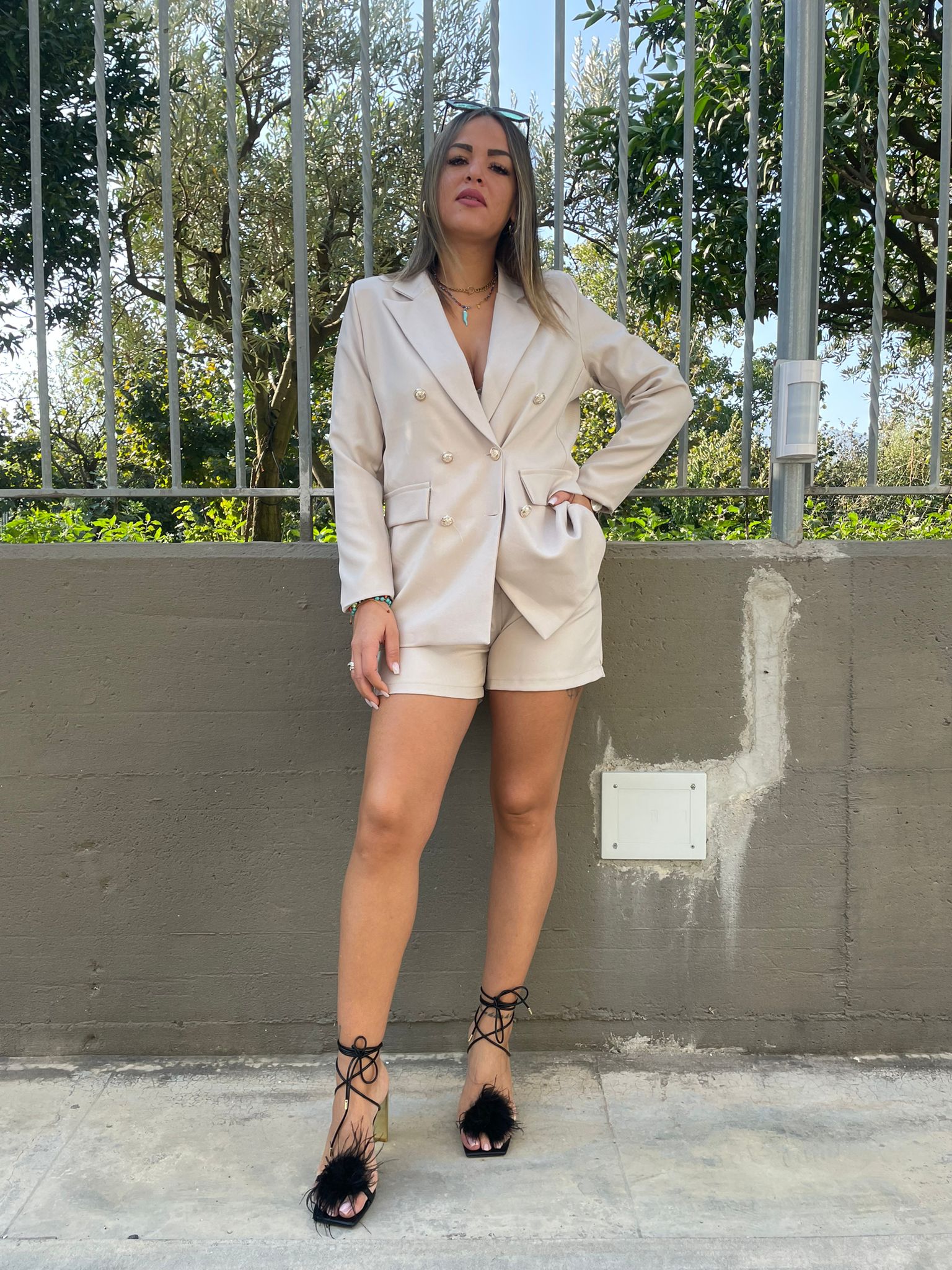 Tailleur con bermuda e giacca doppio petto