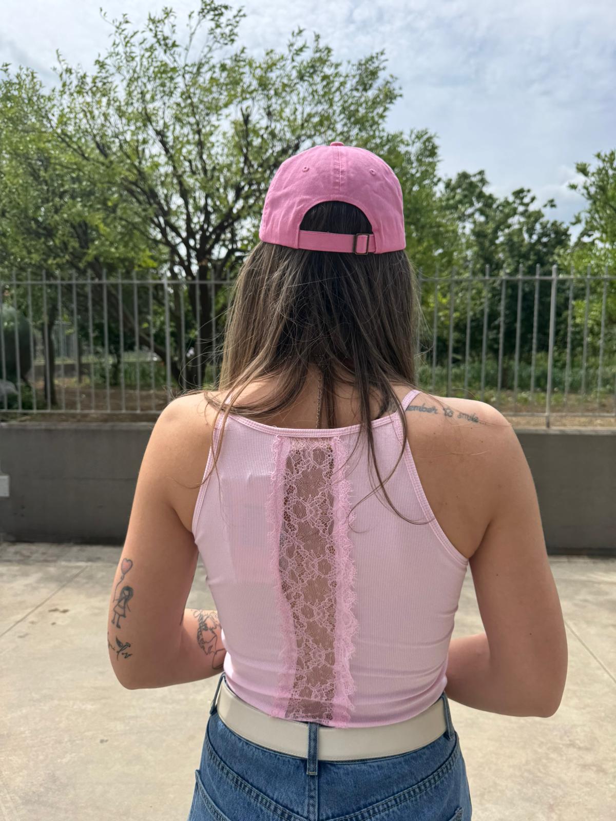 Top a costine con merletto dietro