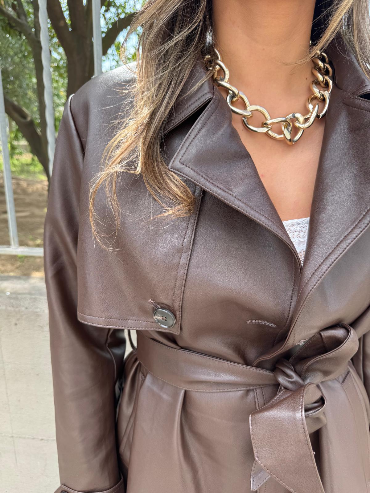 Trench in eco pelle con cintura in vita